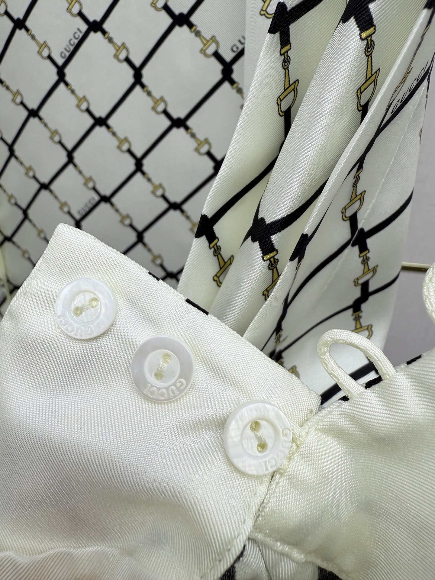 더블 G 자카드 실크 블라우스 반스커트 세트