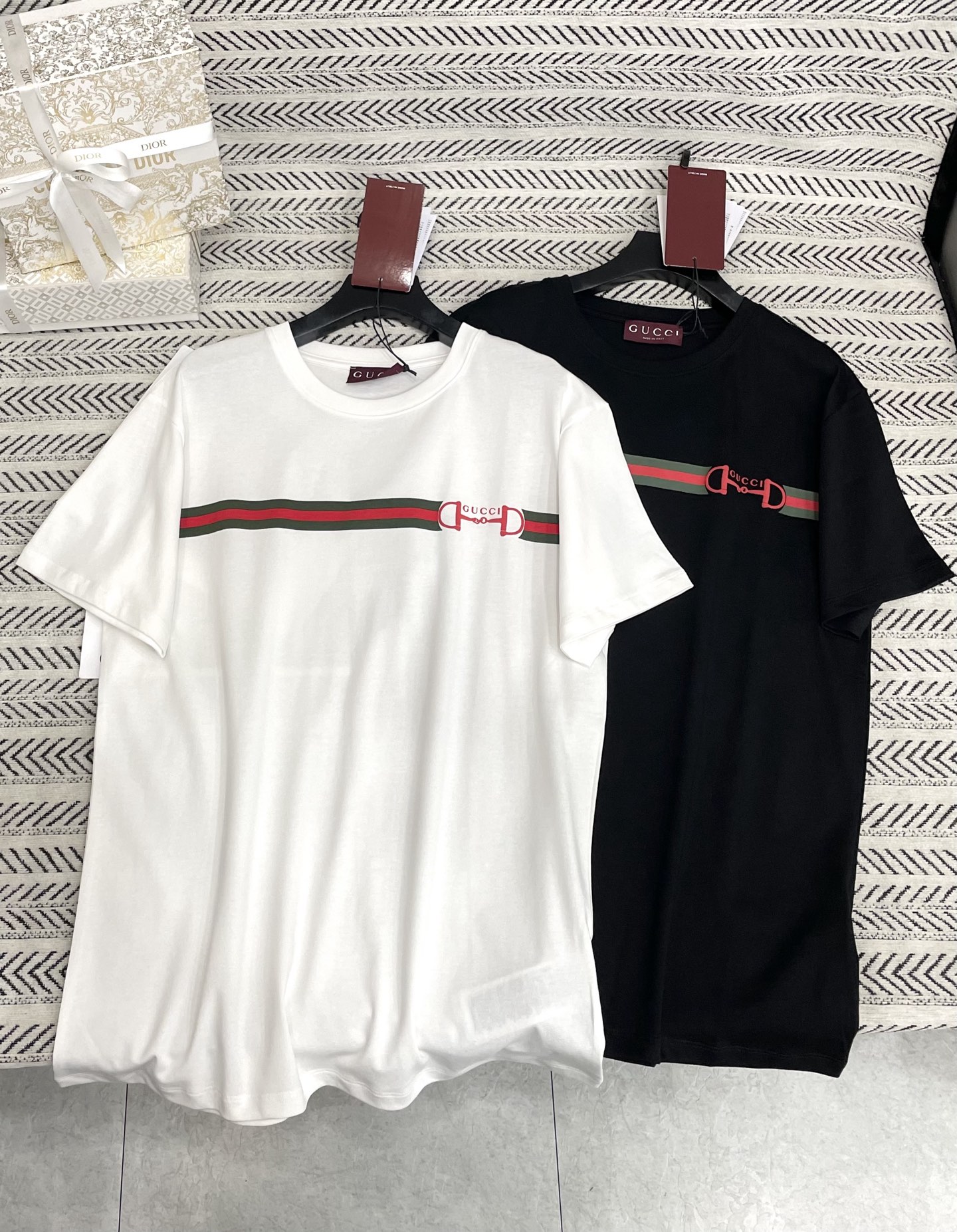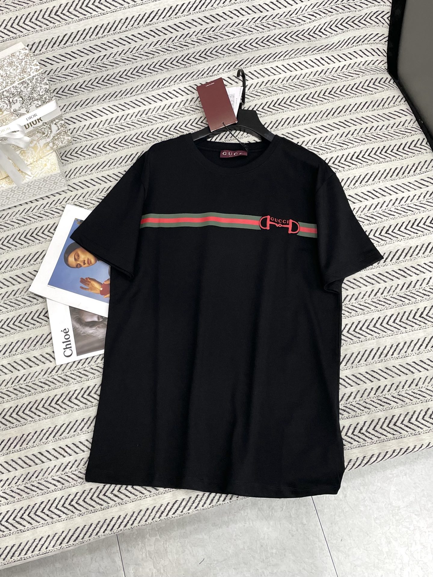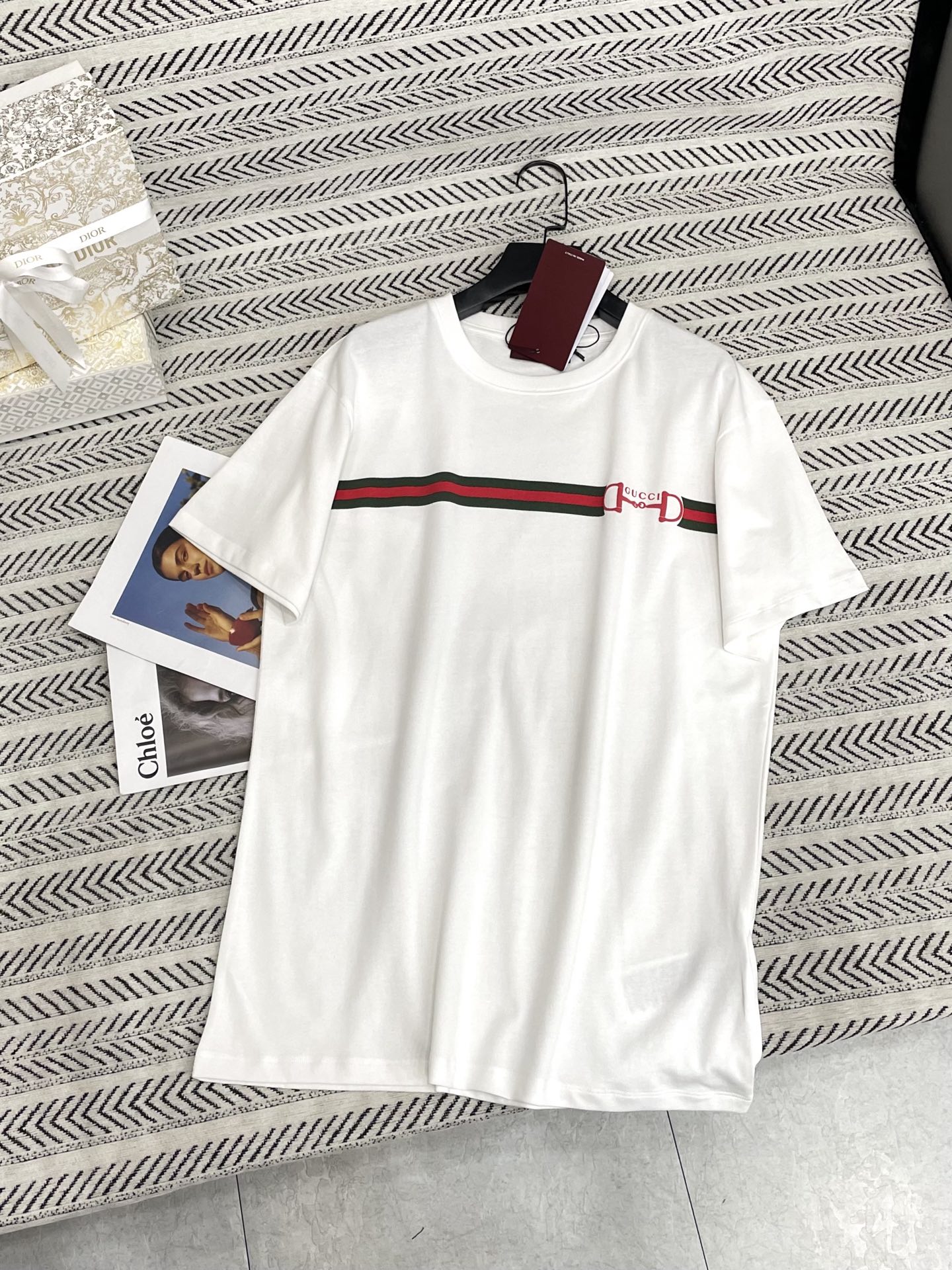 더블 G 체인 프린트 알파벳 패턴 티셔츠