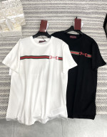 체인 자수 알파벳 레드 스트라이프 인쇄 패턴 티셔츠