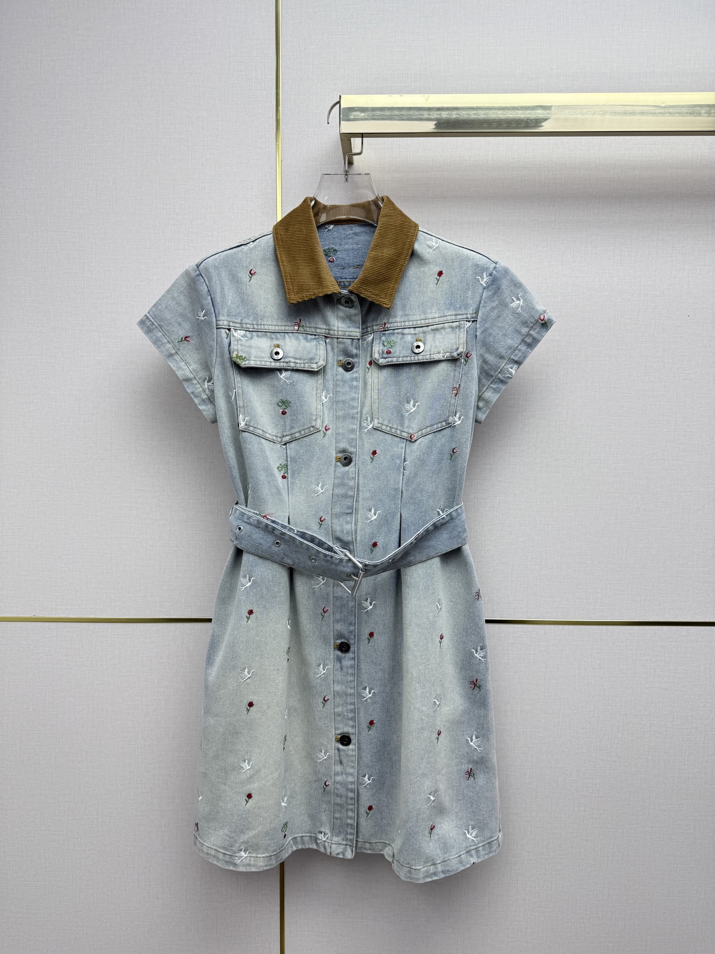 벨벳 칼라 반팔 원피스