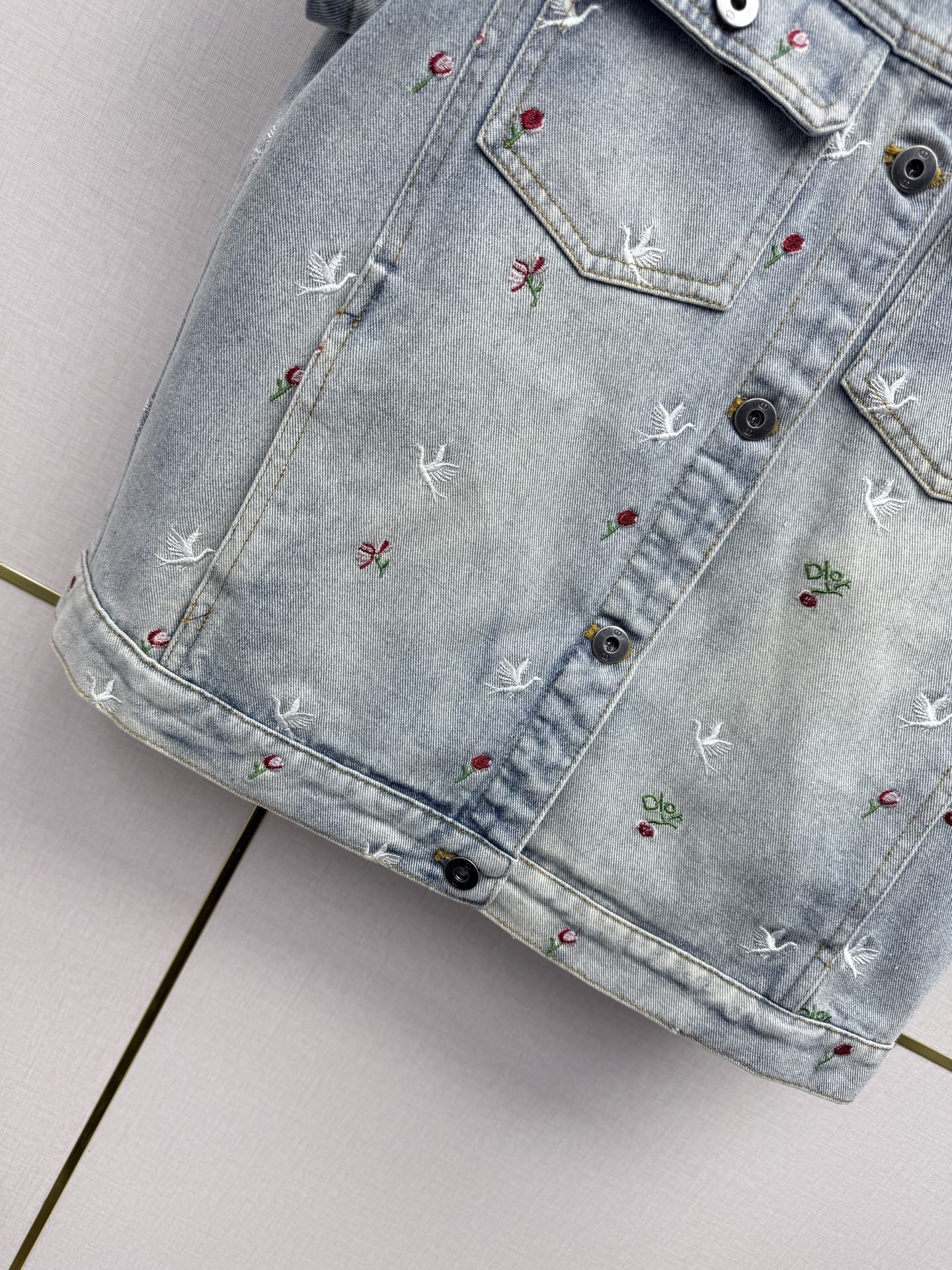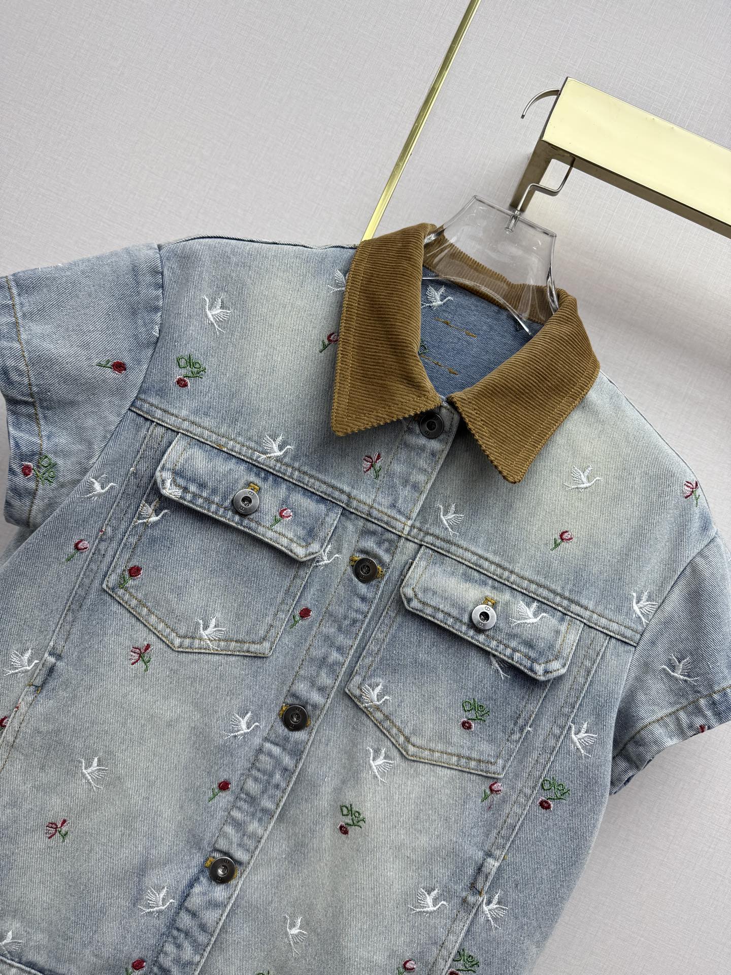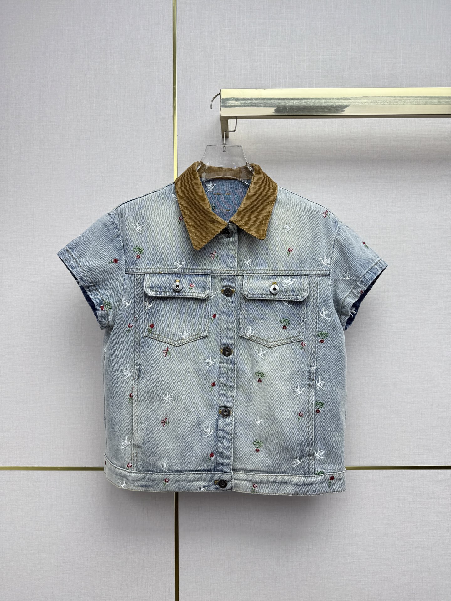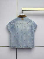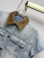 벨벳 칼라 숏슬리브 데님 재킷