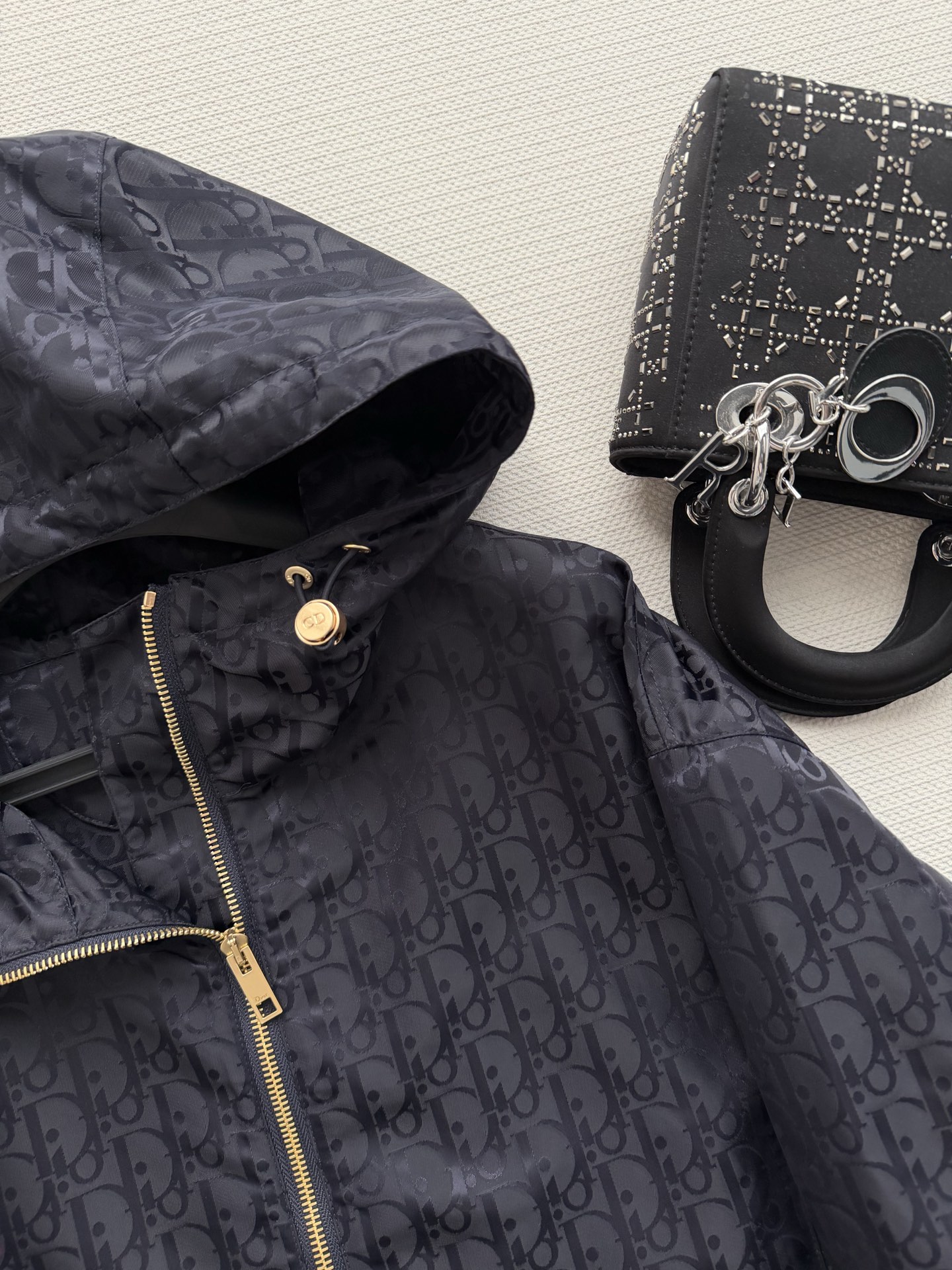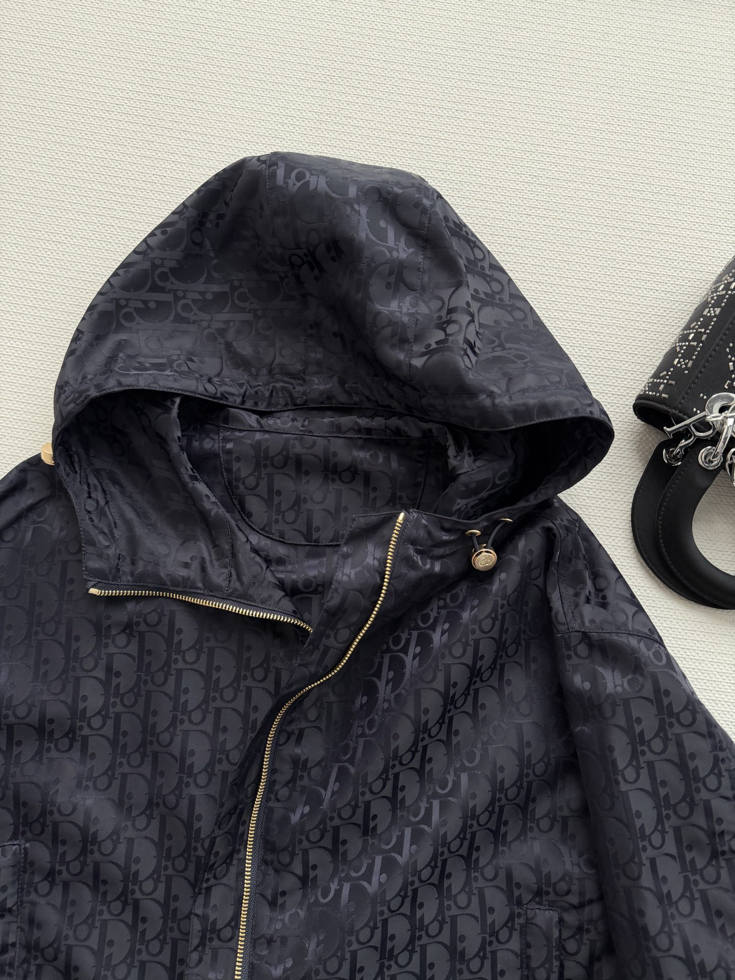 후드 자카드 트렌치코트