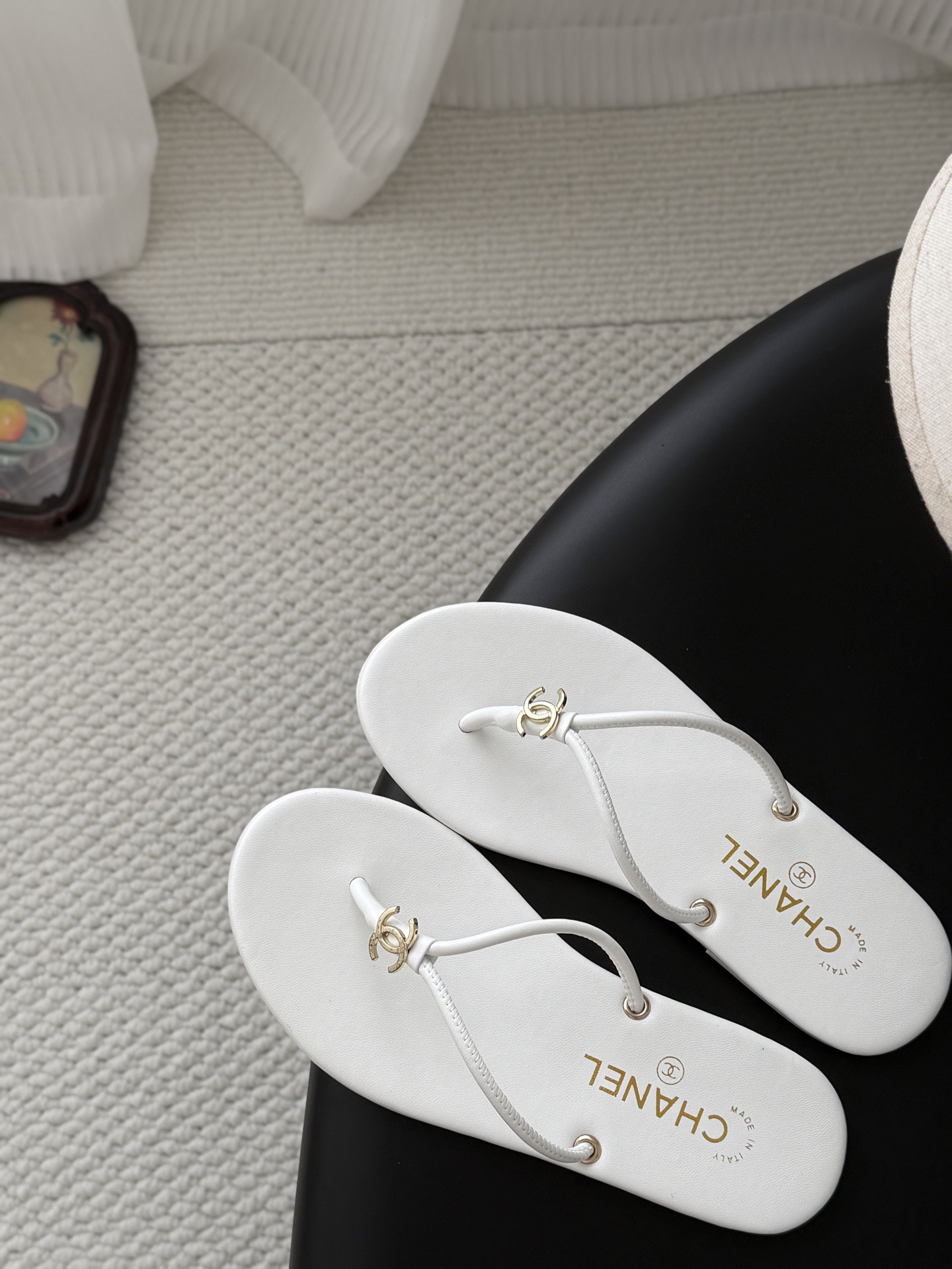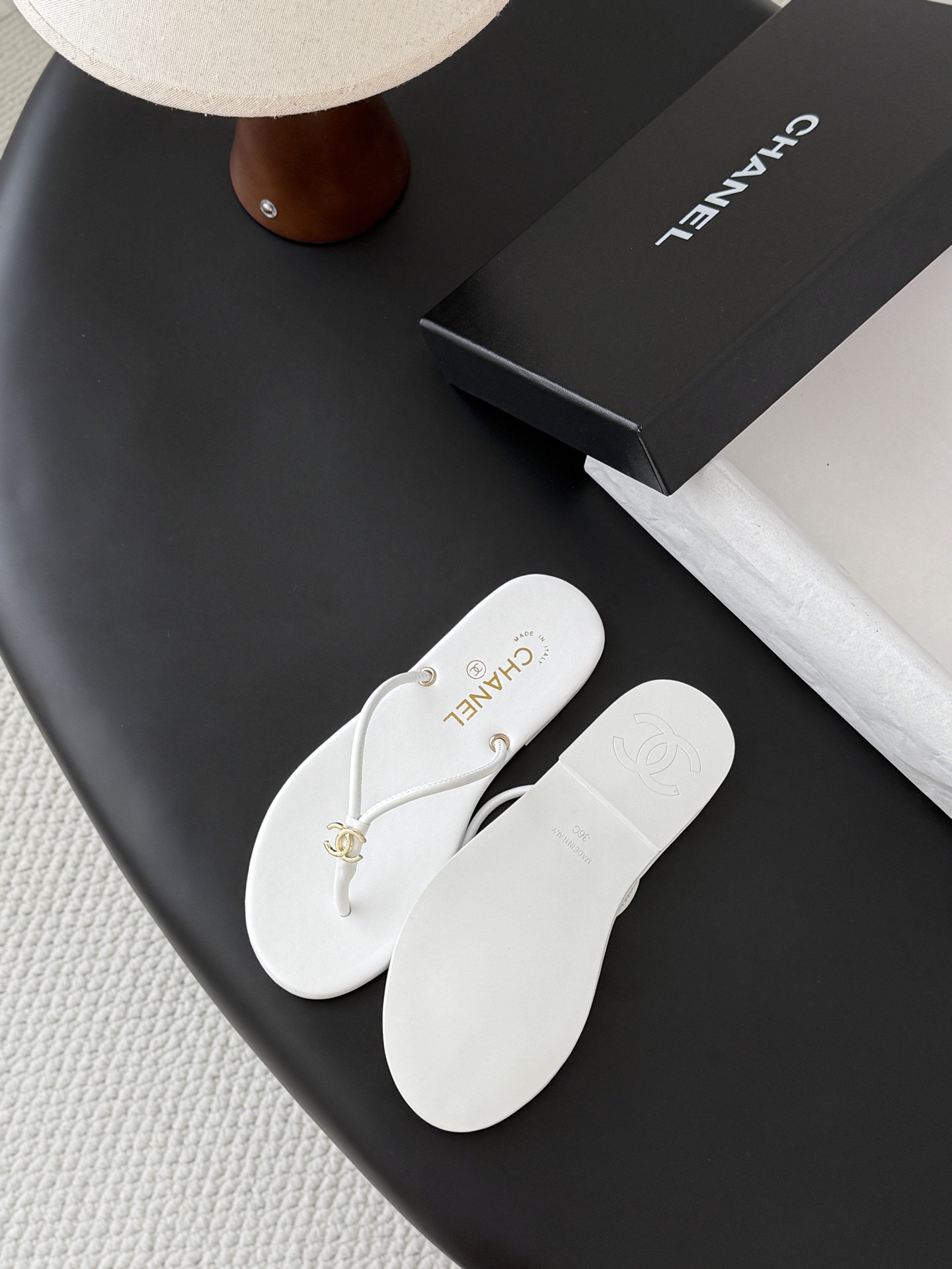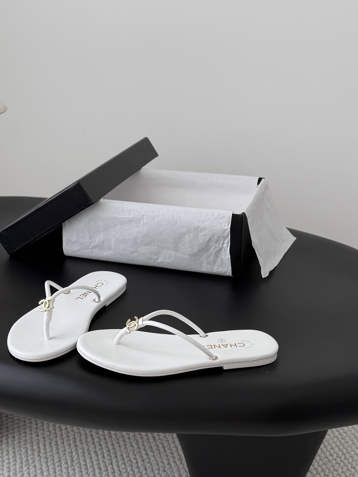 샤넬 로고 플립플랍 샌들