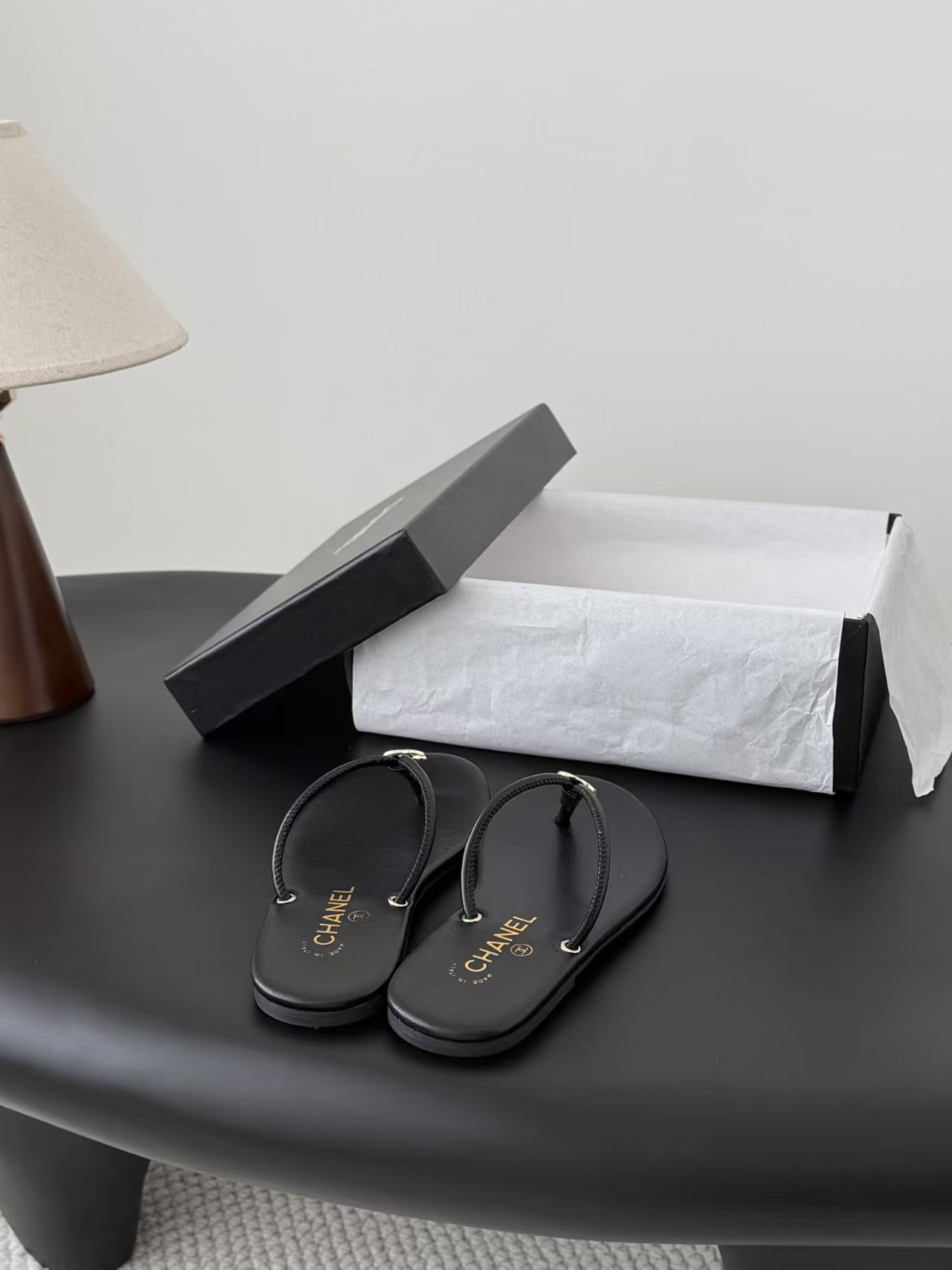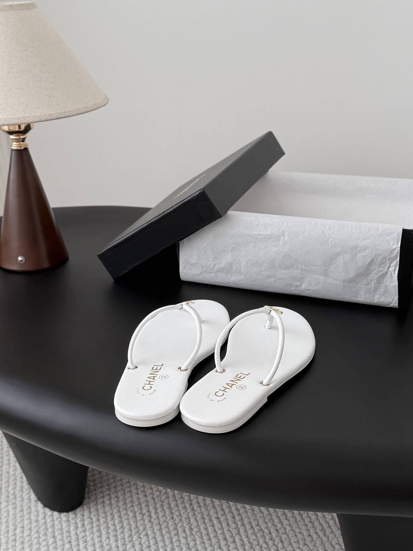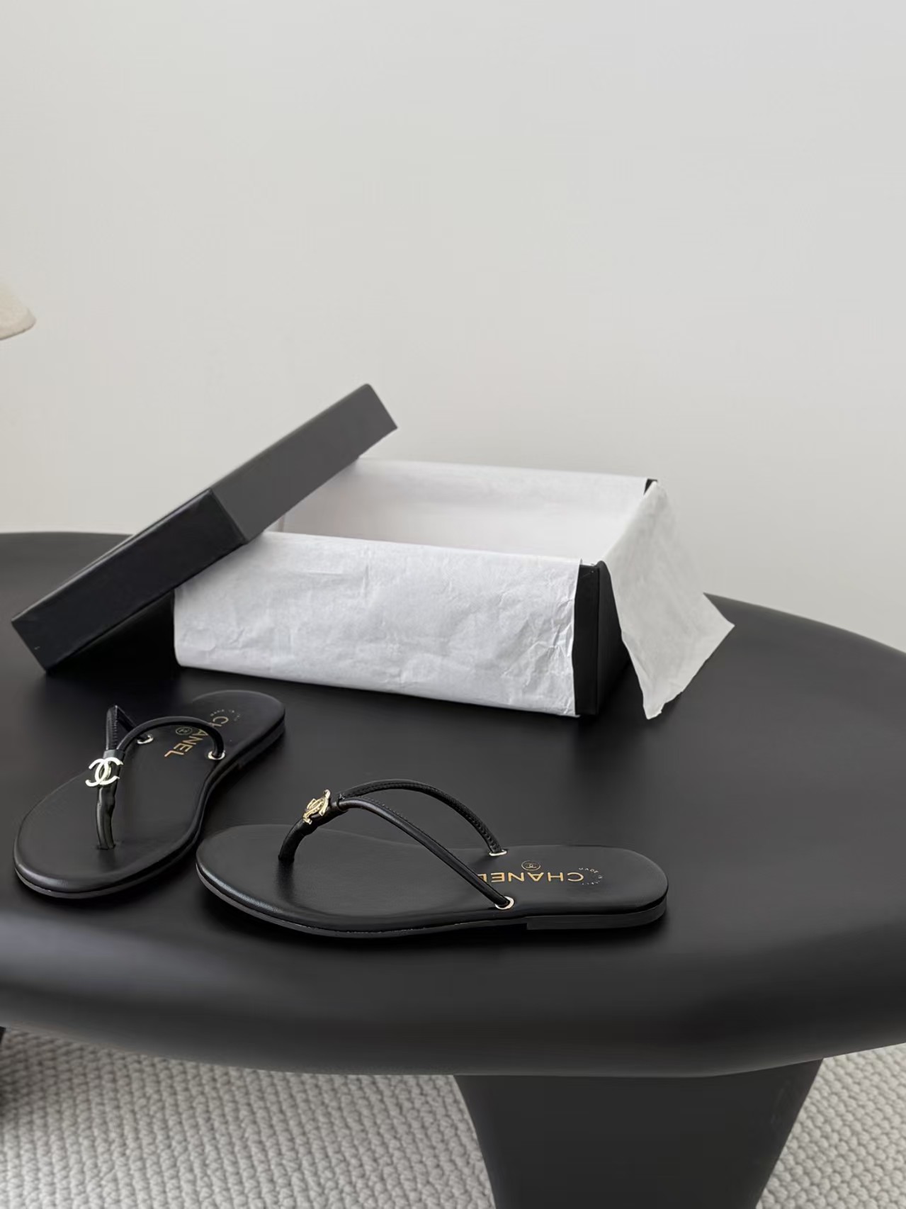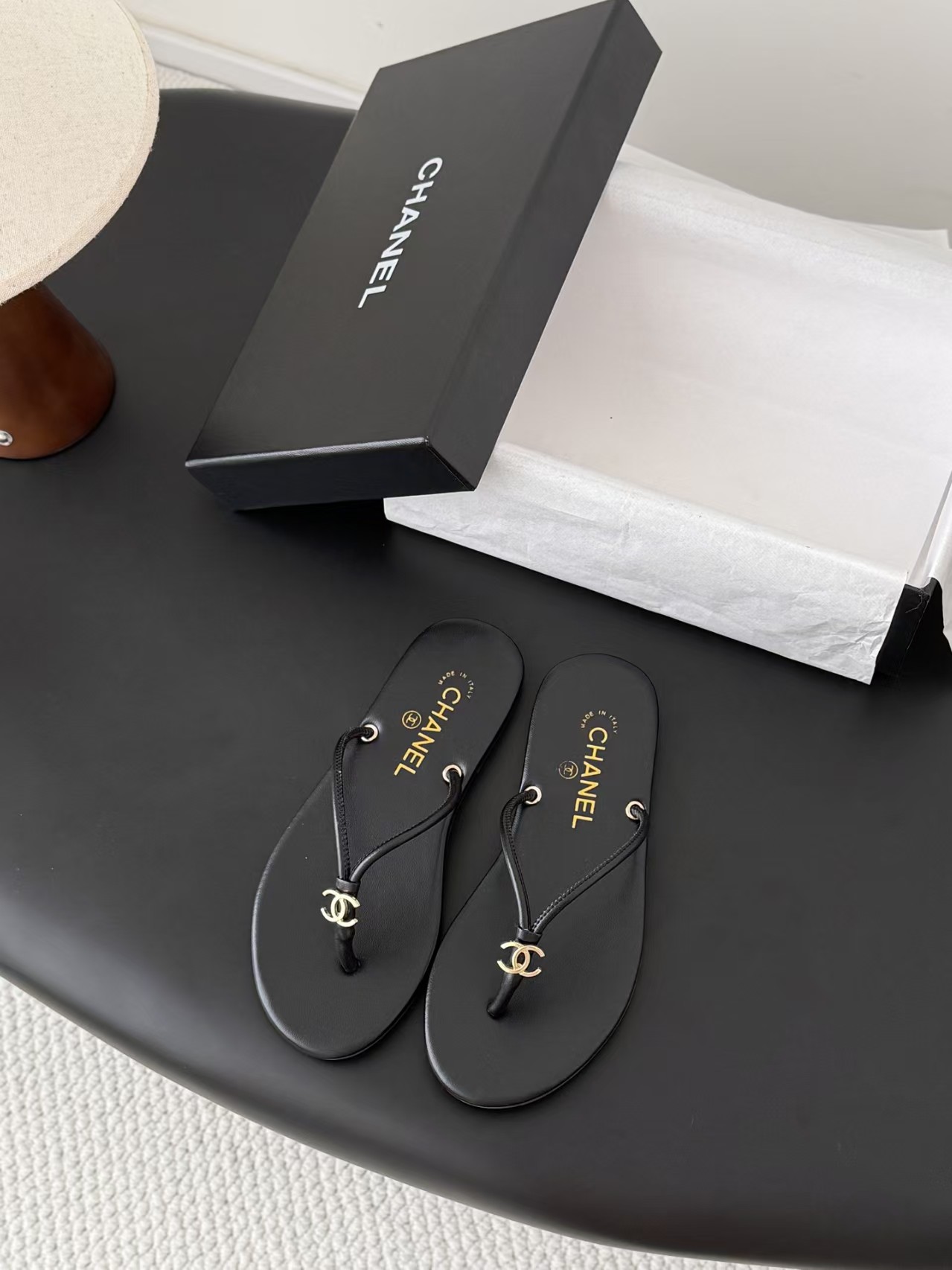 샤넬 로고 플립플랍 샌들