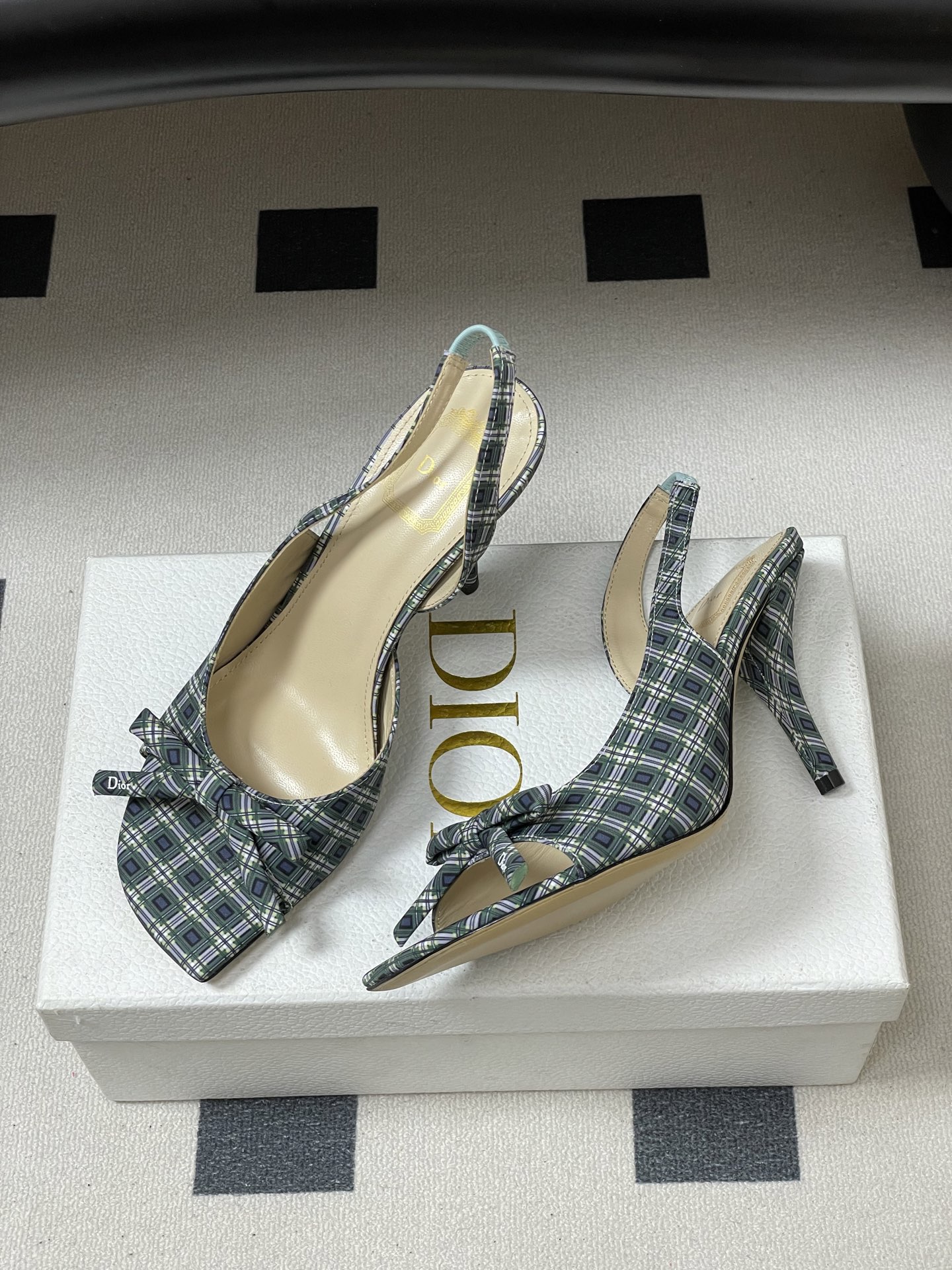 CD 로고 리본 오픈토 피시테일 백오픈 하이힐 샌들 > 여성신발
