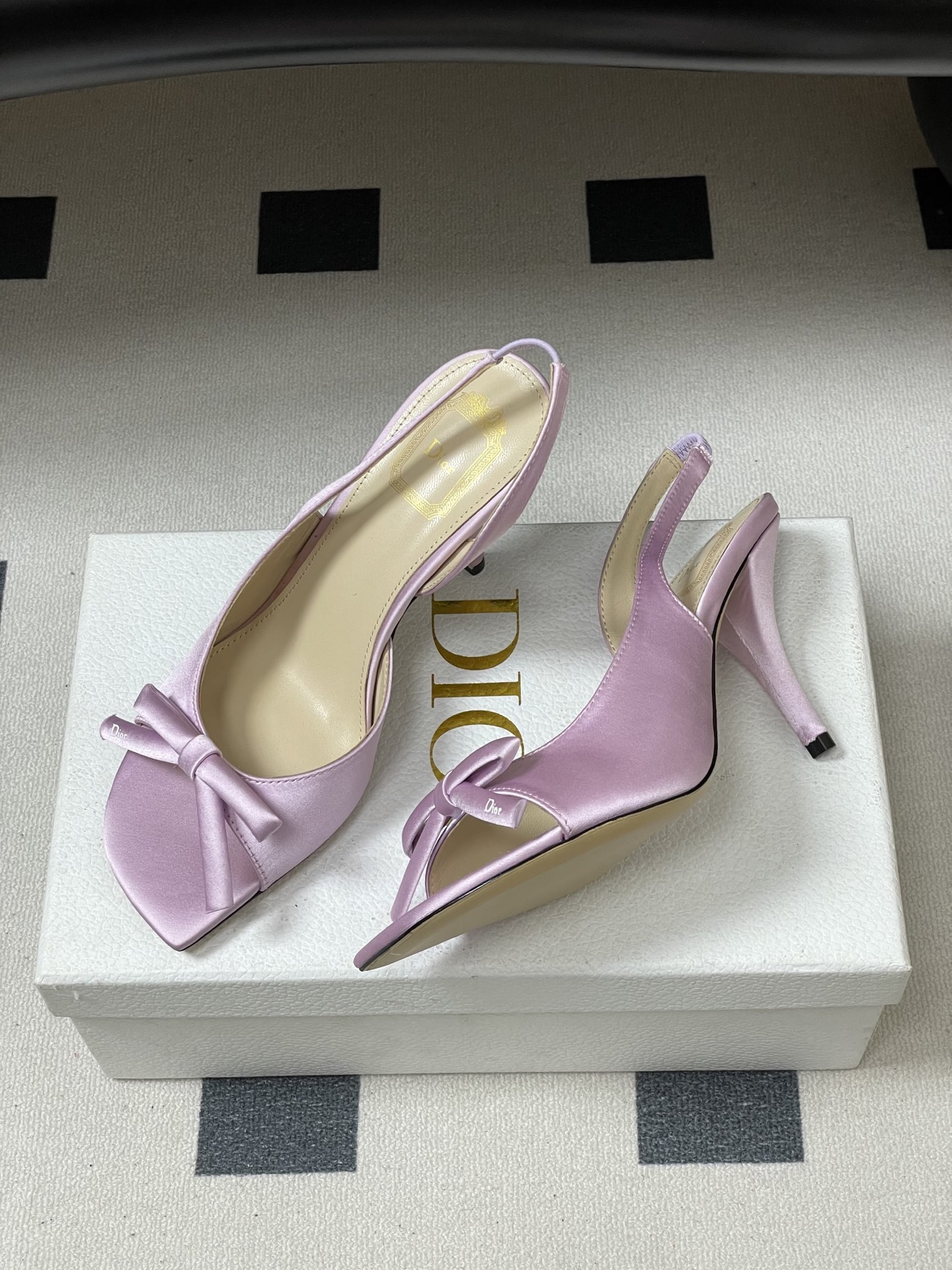CD 로고 리본 오픈토 피시테일 백오픈 하이힐 샌들 > 여성신발