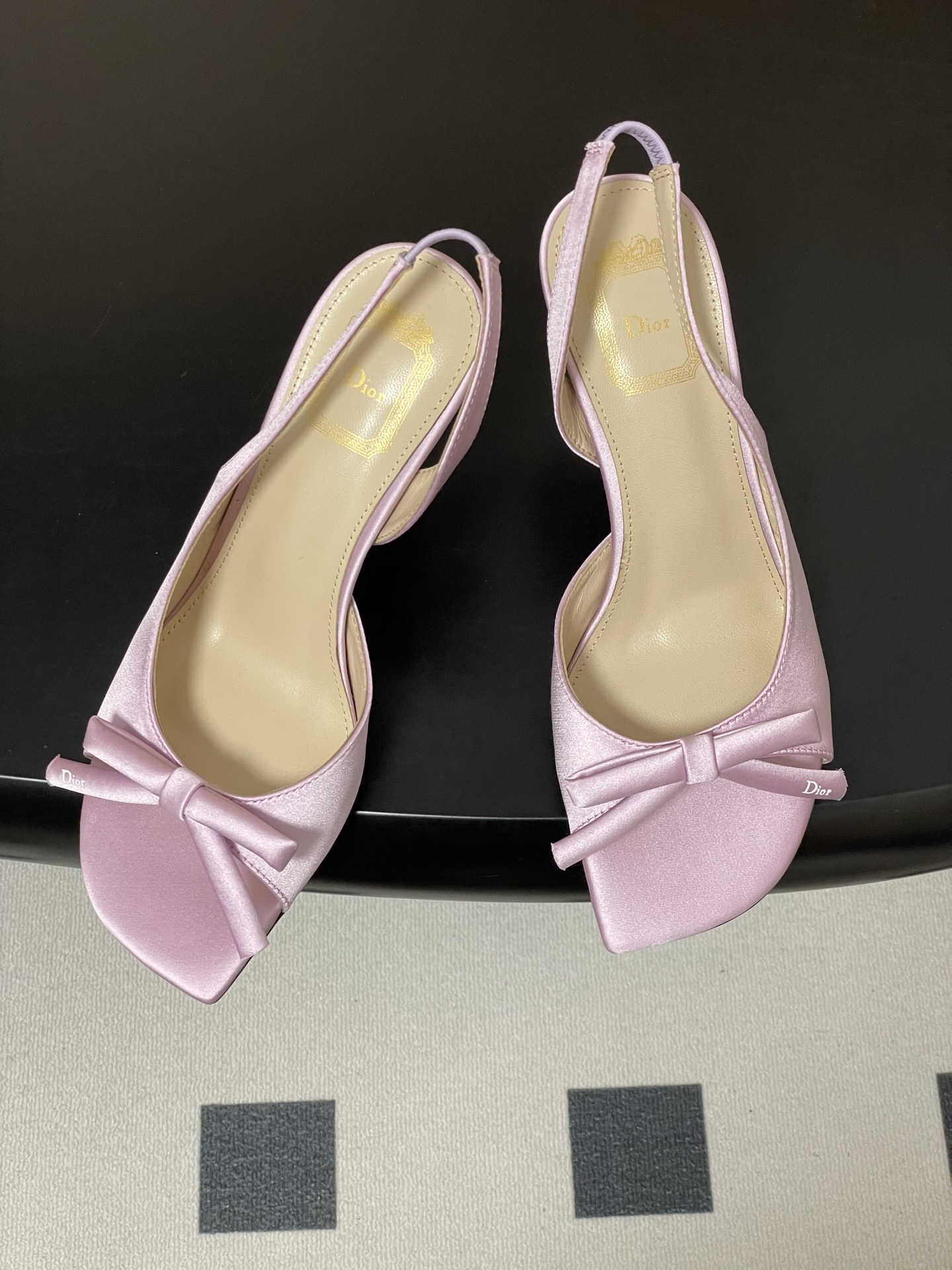 CD 로고 리본 오픈토 피시테일 백오픈 하이힐 샌들