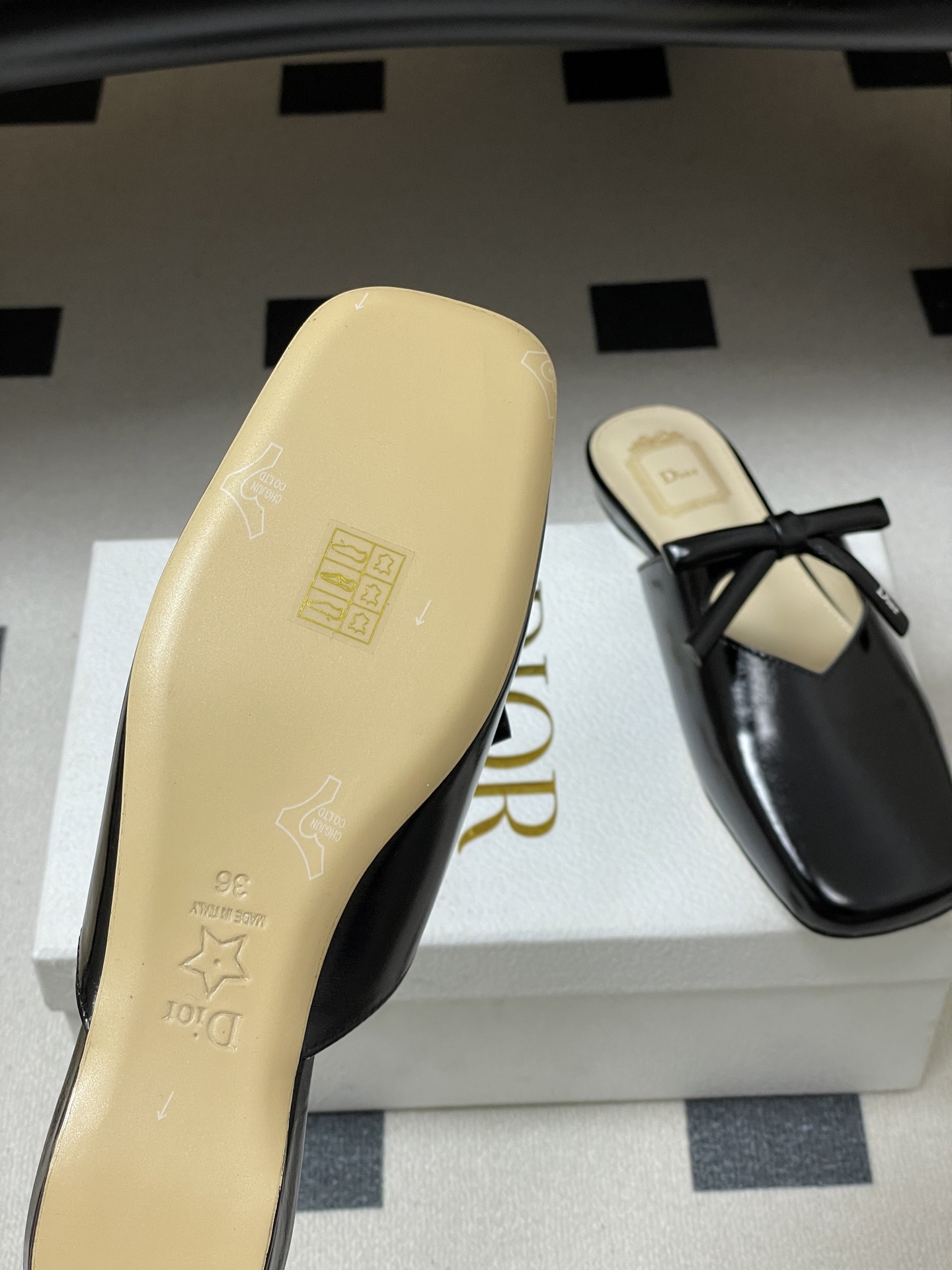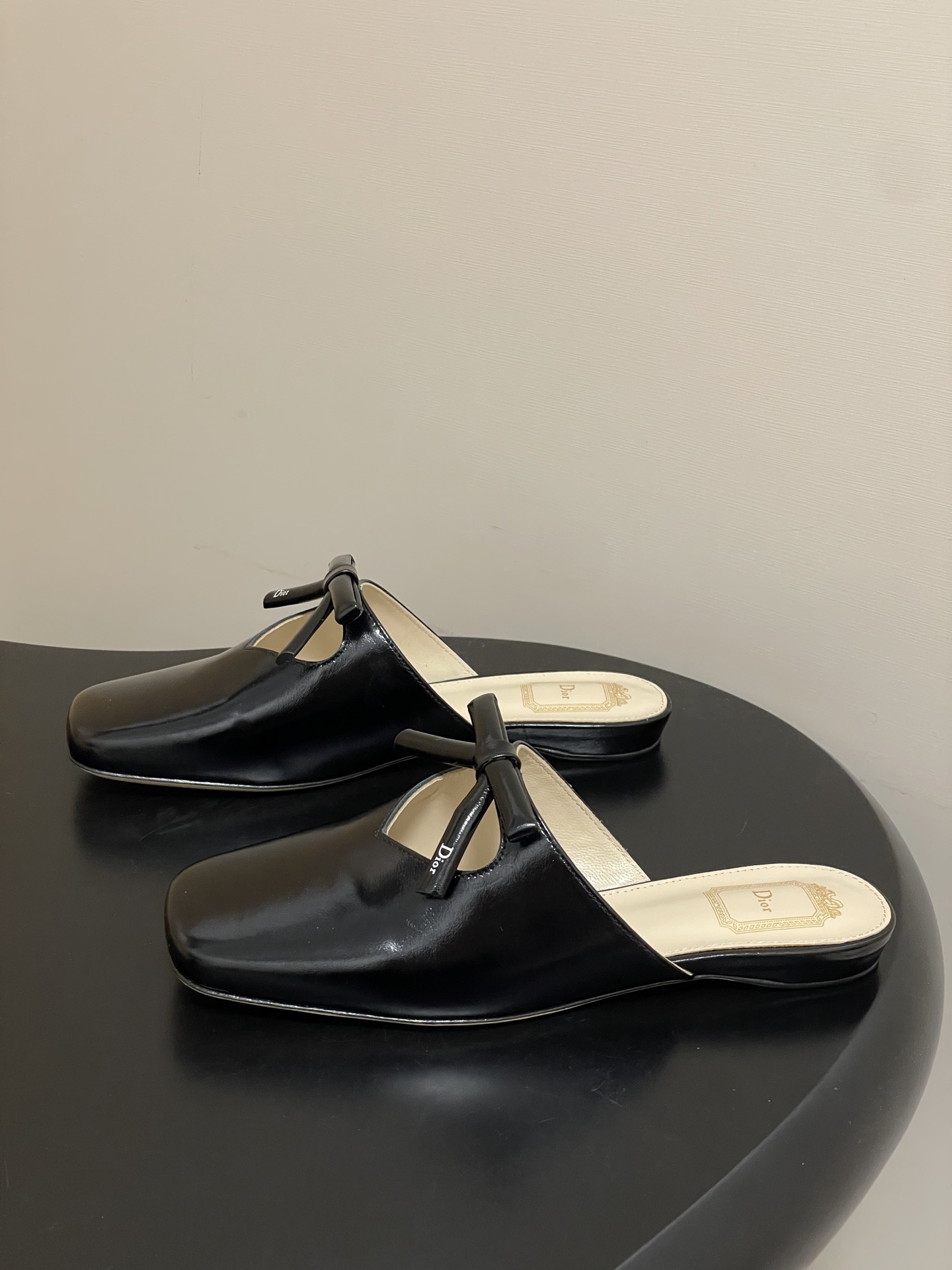 CD 로고 나비결 플랫 토캡 뮬 슬리퍼