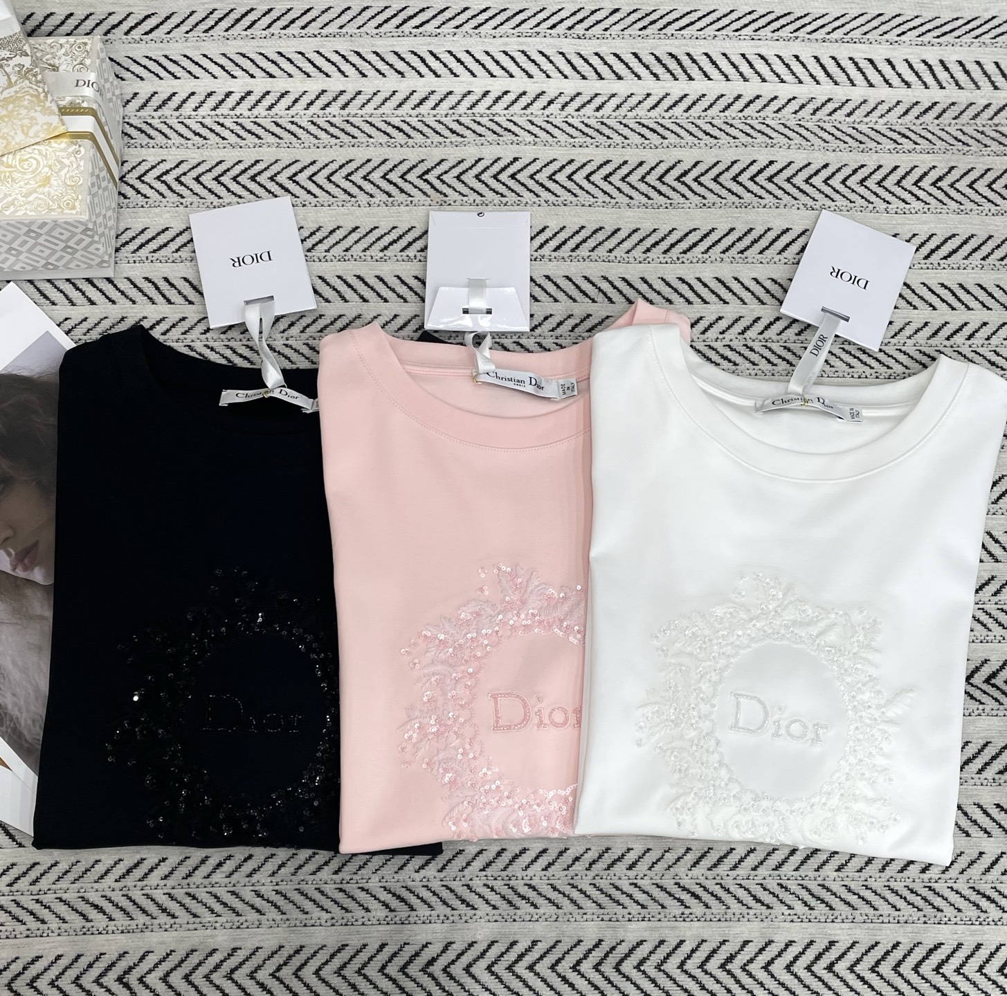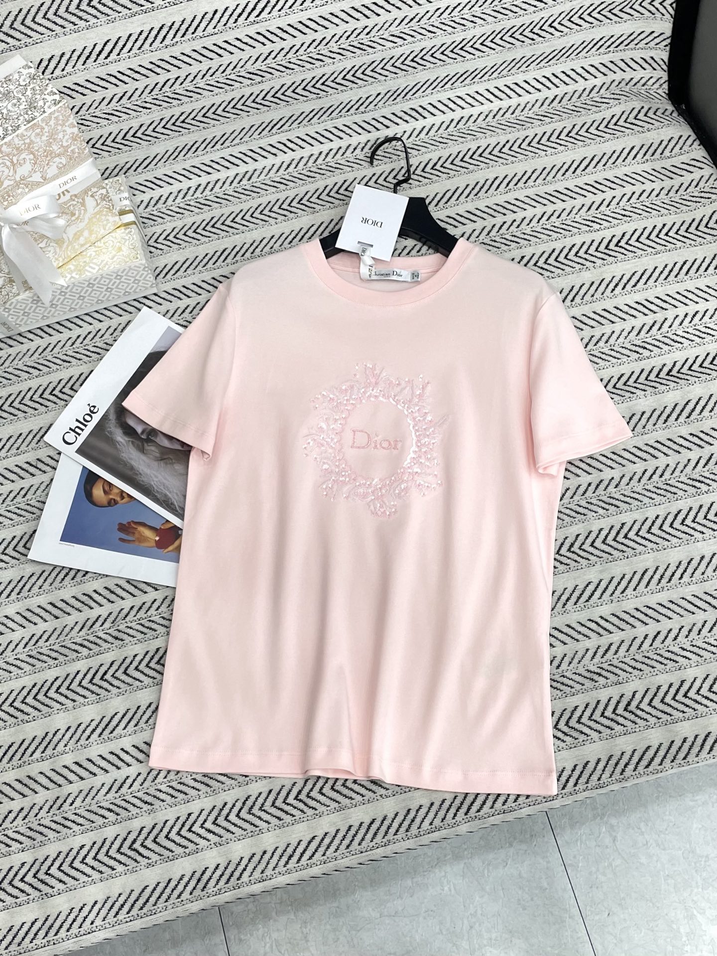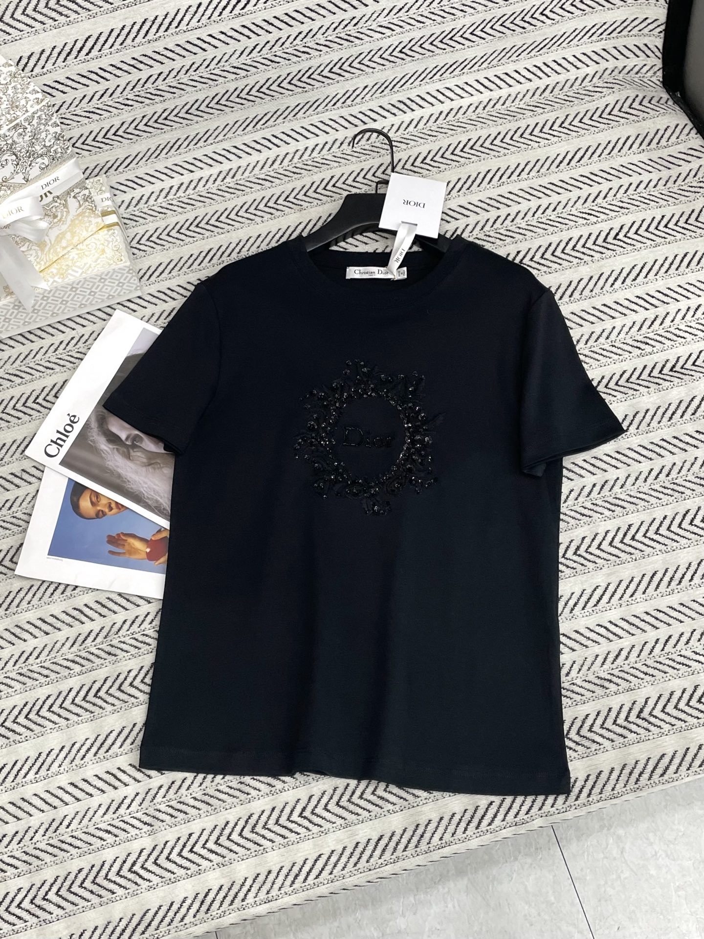 나비 자수 CD 알파벳 티셔츠