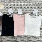자수 구슬 알파벳 패턴 티셔츠