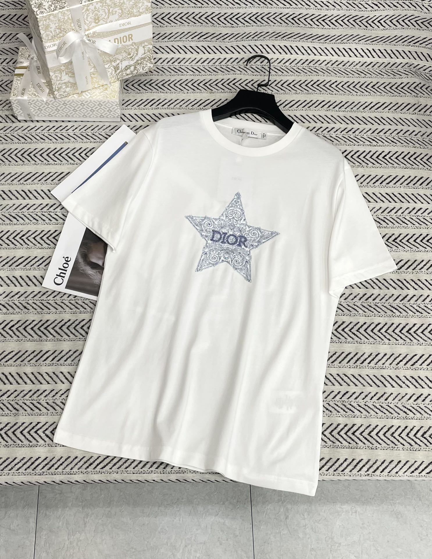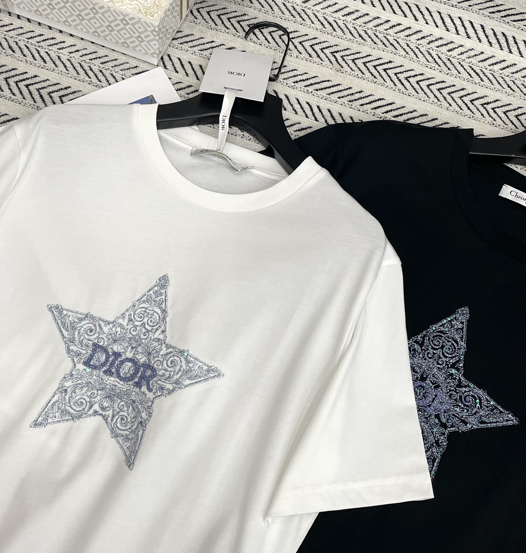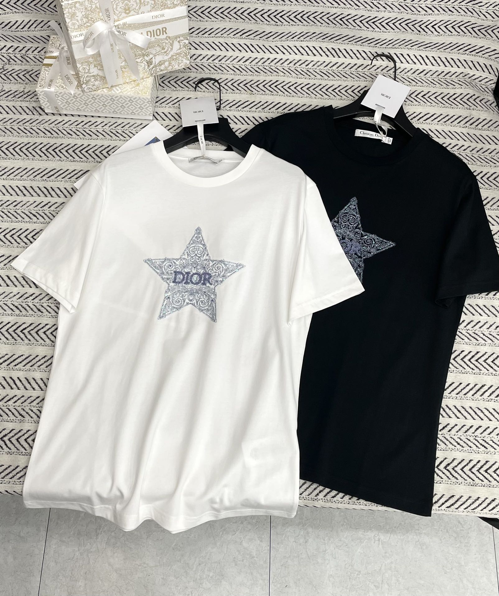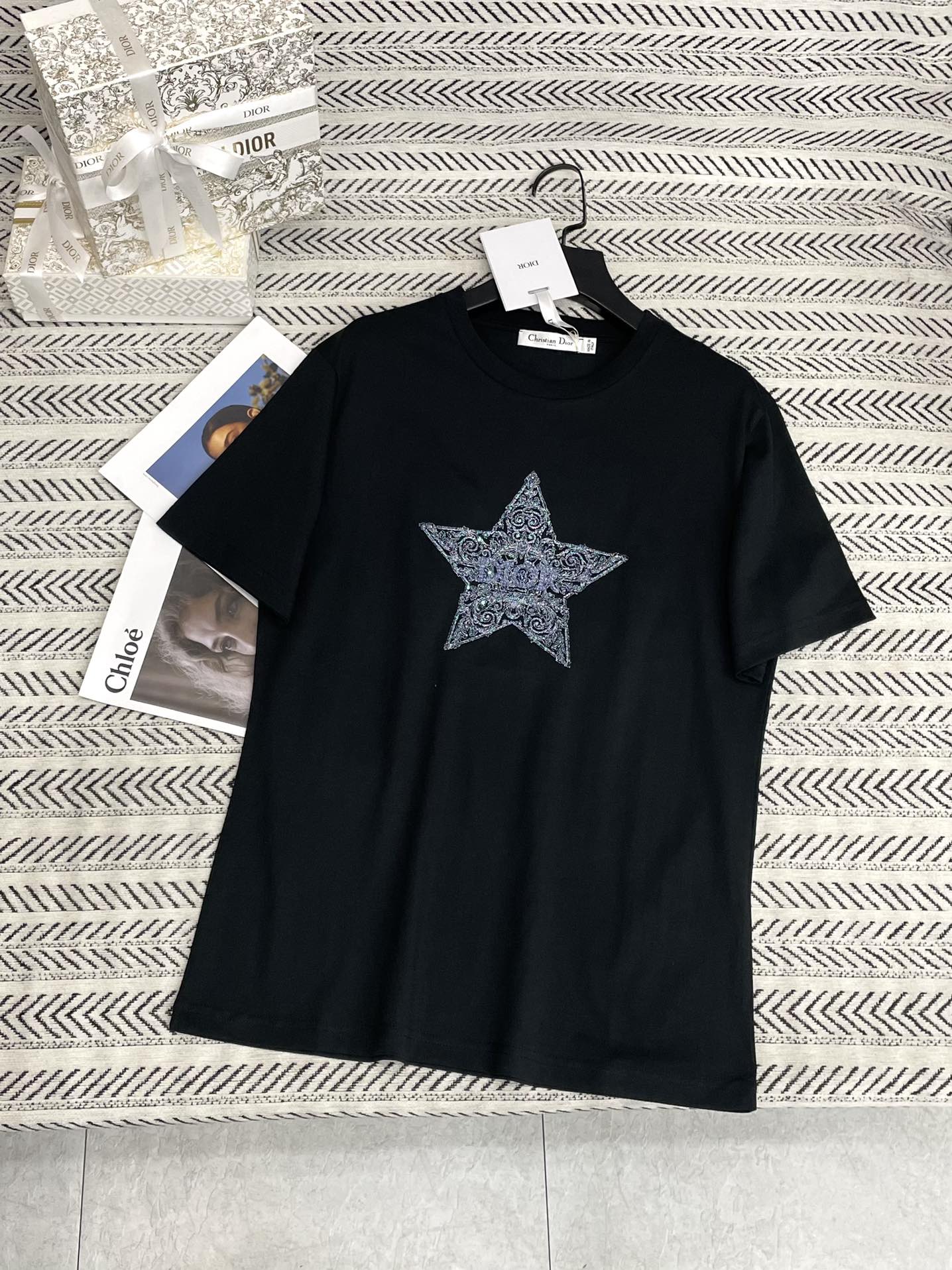 금실 자수 오각성 비즈 알파벳 티셔츠