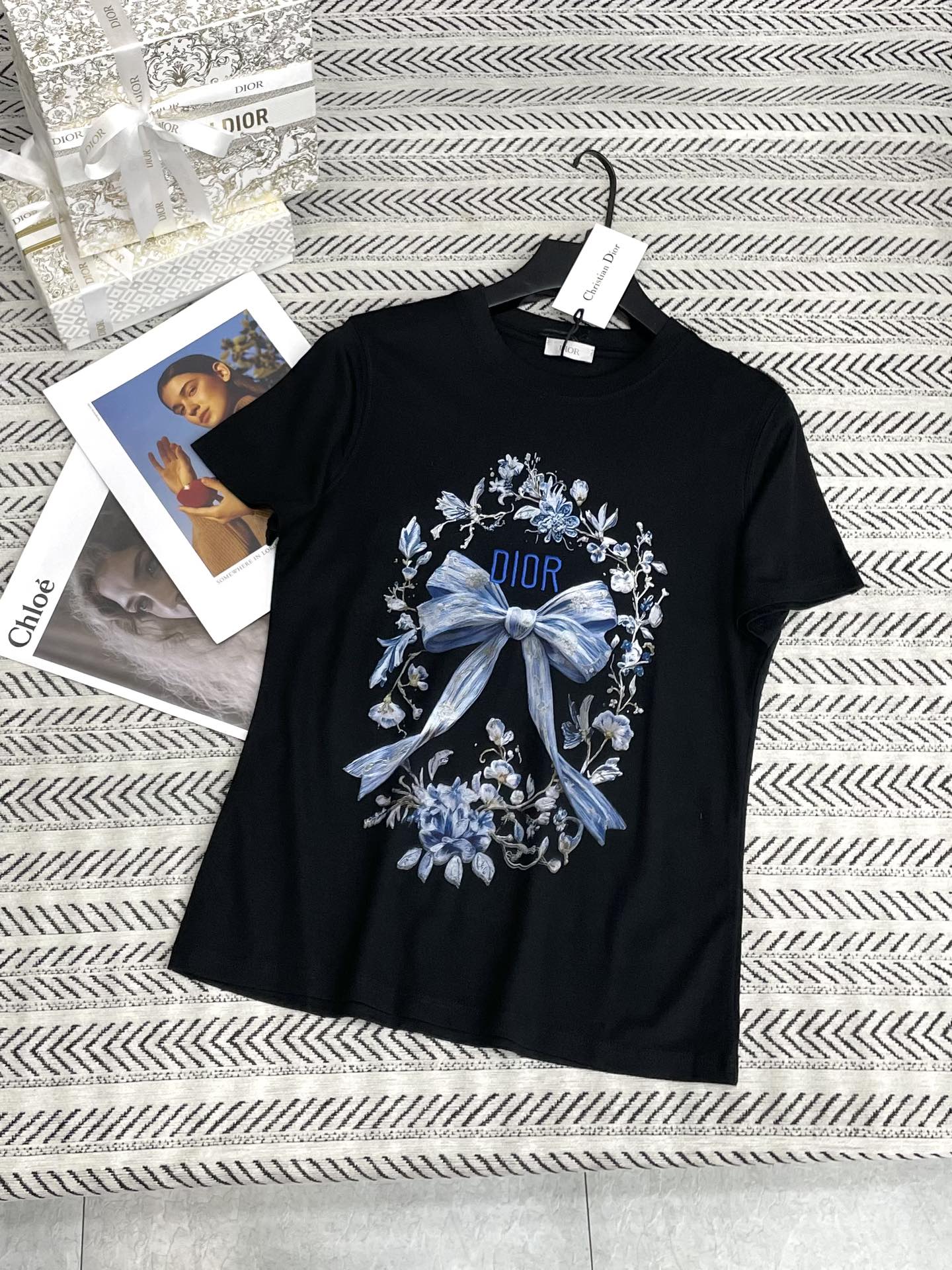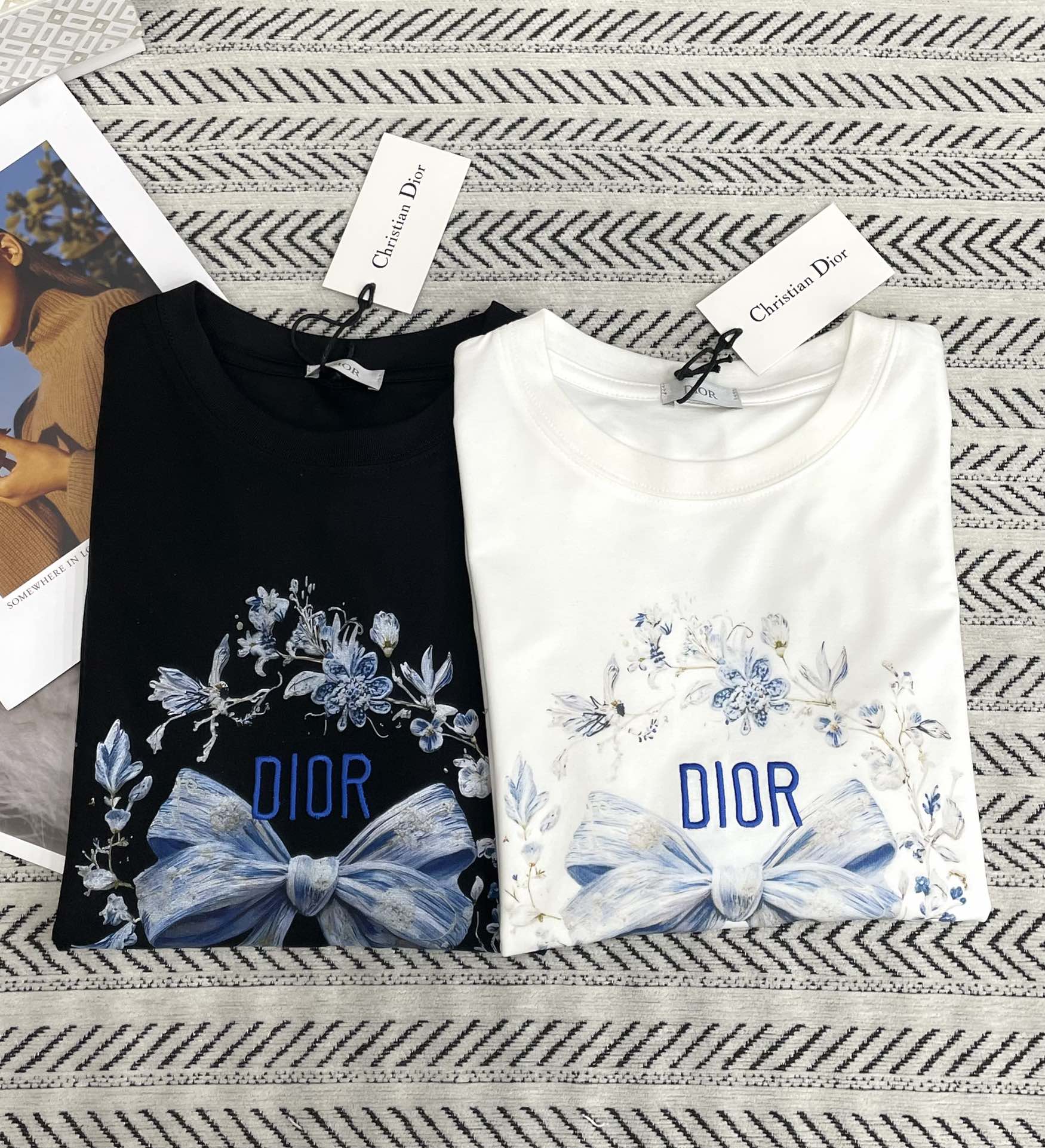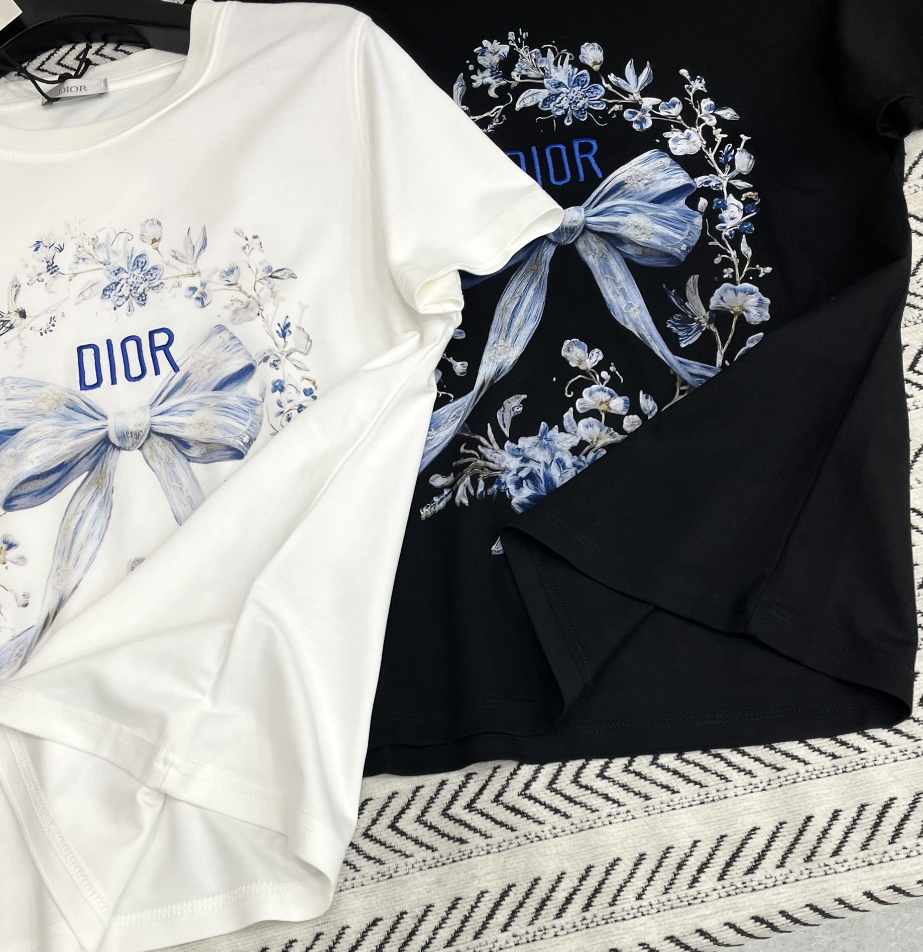 꽃무늬 나비 리본 자수 알파벳 패턴 티셔츠