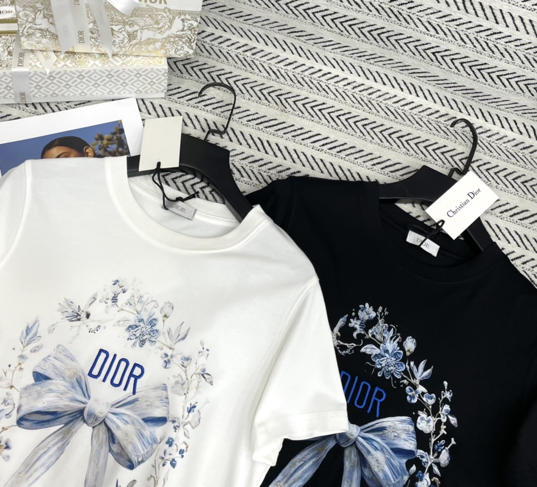 꽃무늬 나비 리본 자수 알파벳 패턴 티셔츠 > 여성의류