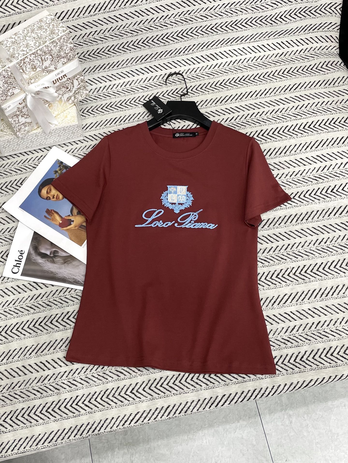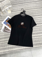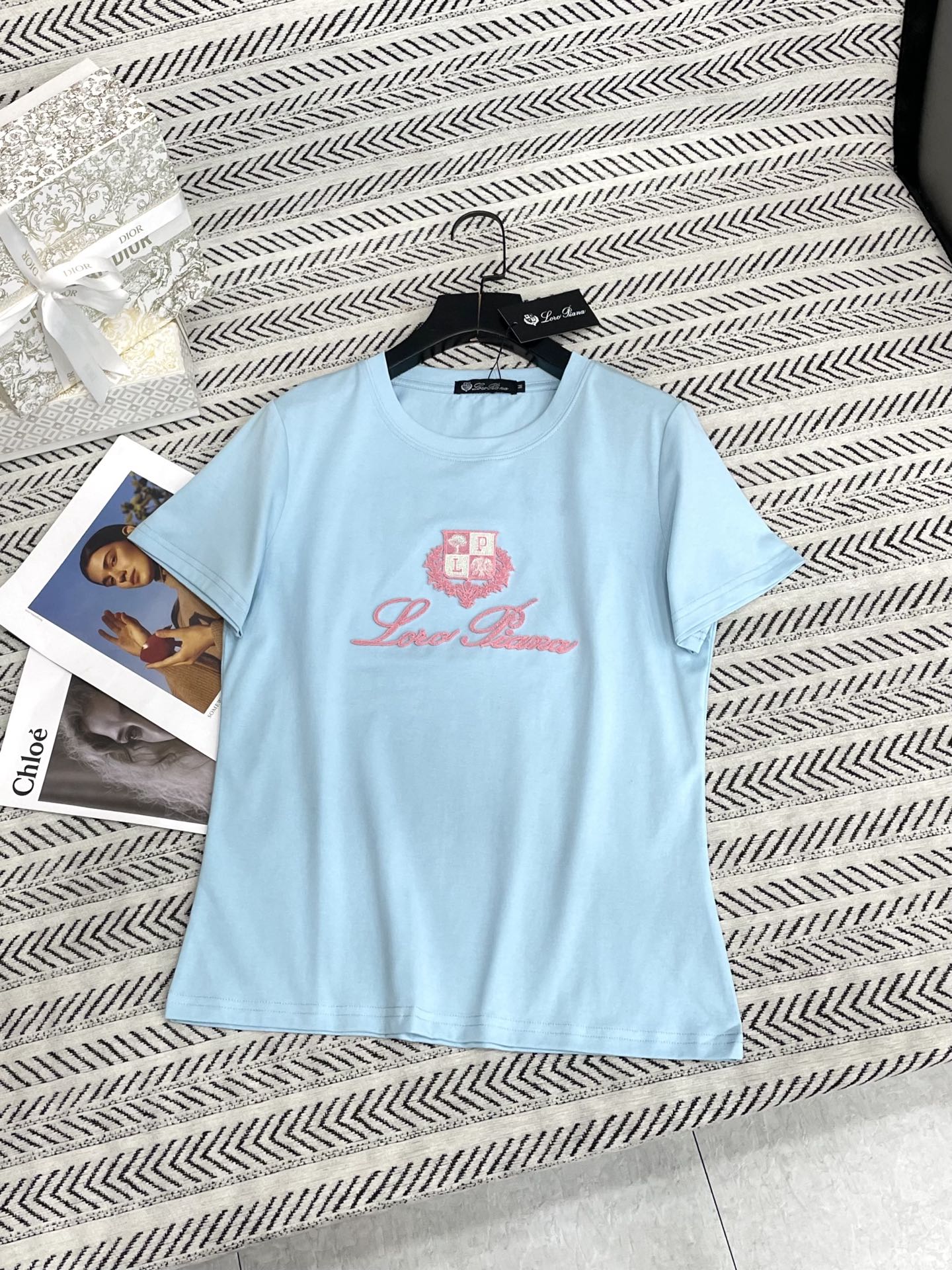 가벼운 텍스처 울 라운드넥 자수 티셔츠