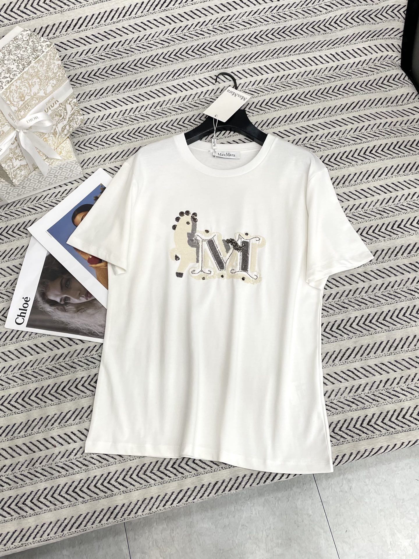 비즈 M 작은 말 패턴 티셔츠 > 여성의류