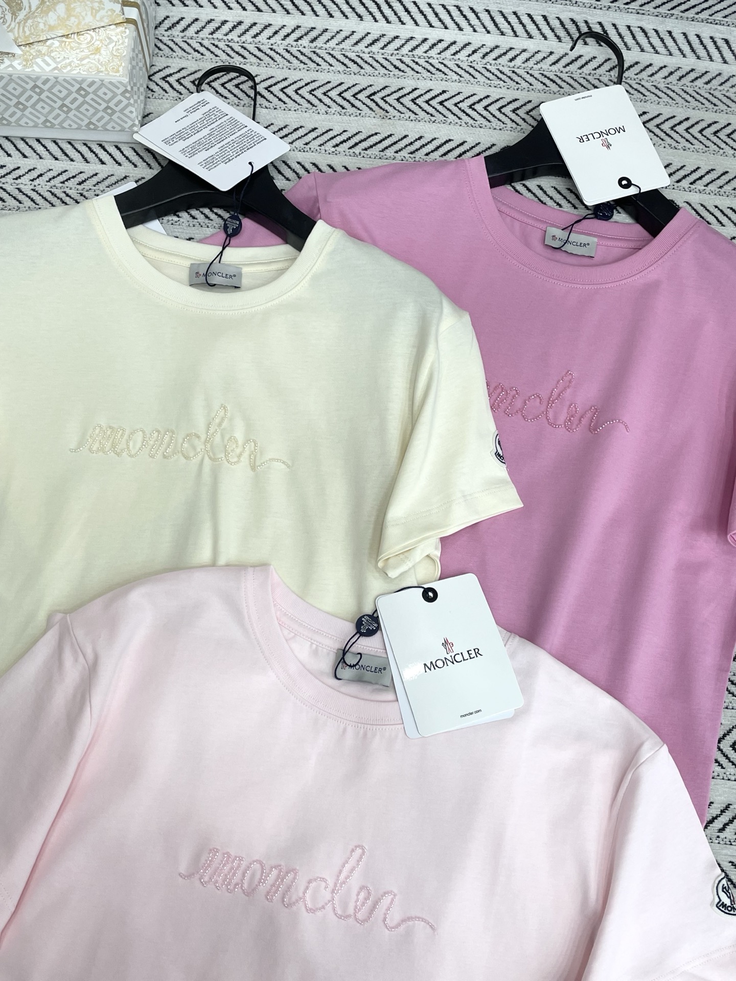 수제 비즈 알파벳 패턴 티셔츠