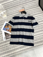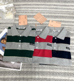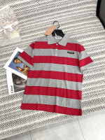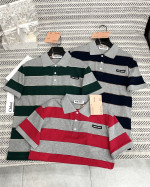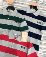줄무늬 플립 칼라 입체 알파벳 패턴 티셔츠