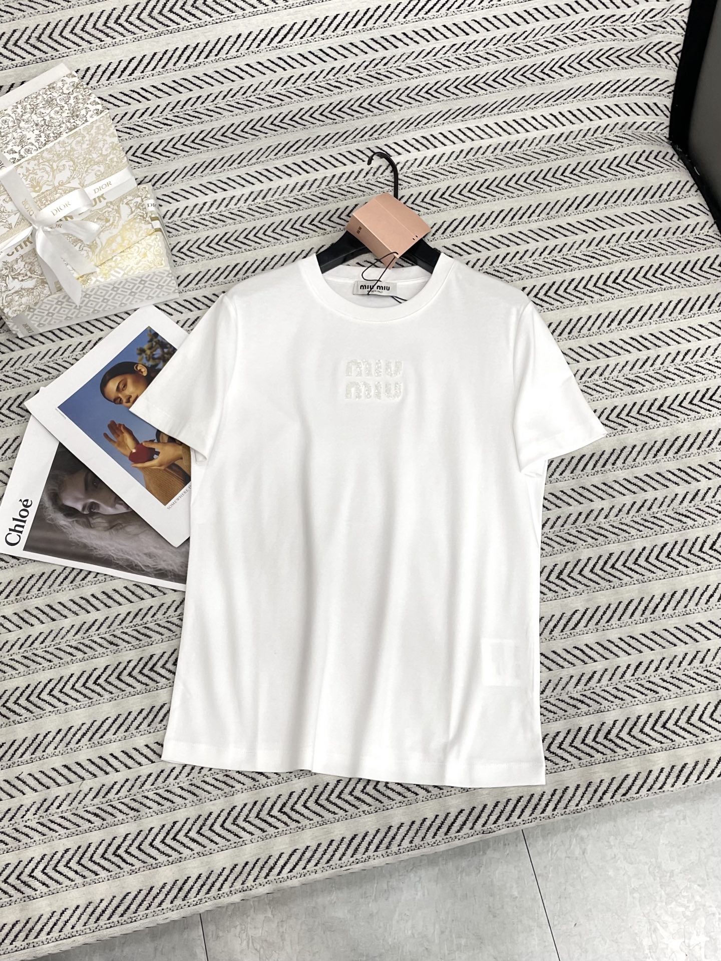 핫픽스 드라이 핸드메이드 비즈 알파벳 패턴 티셔츠