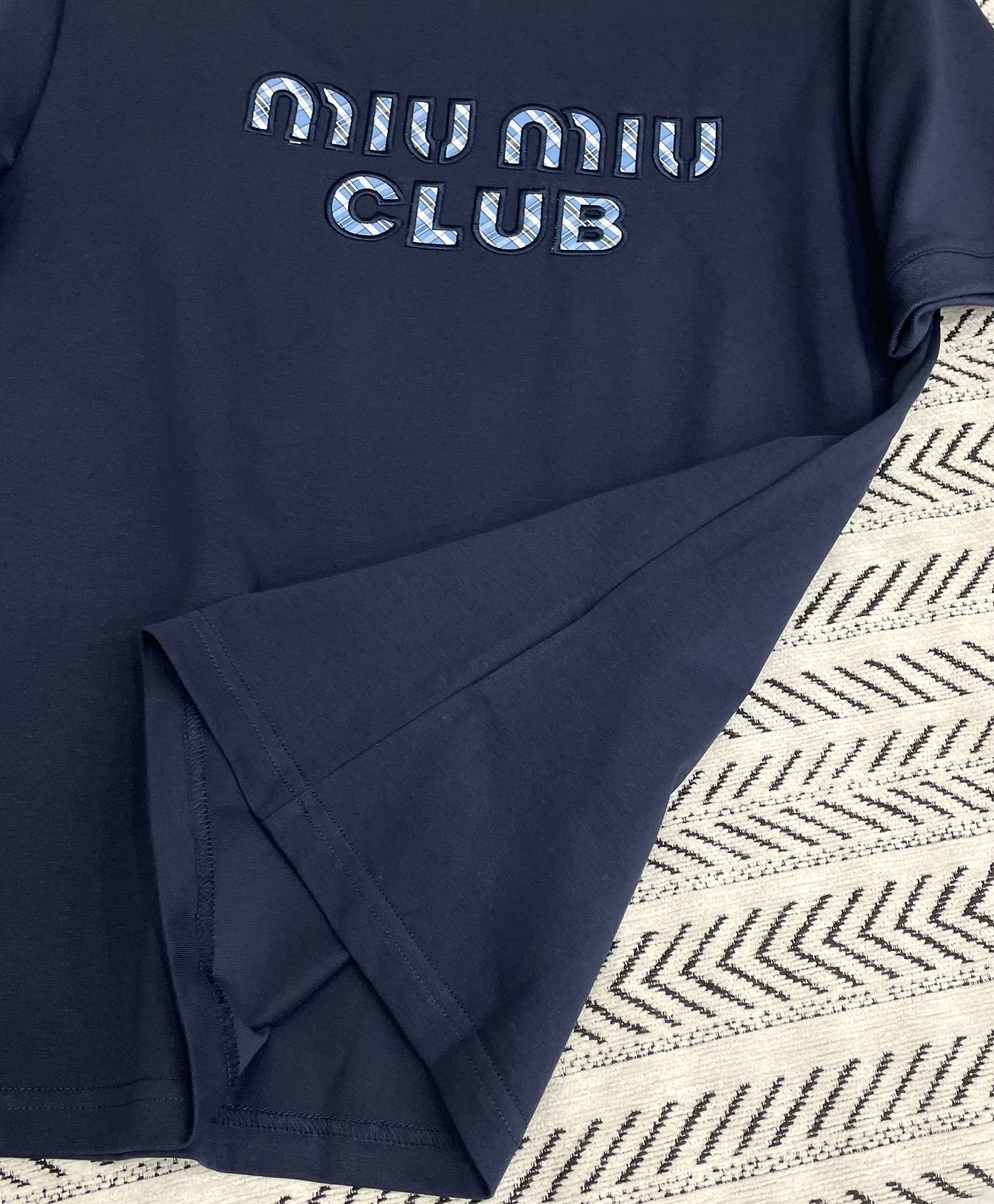 자수 격자 알파벳 패턴 티셔츠