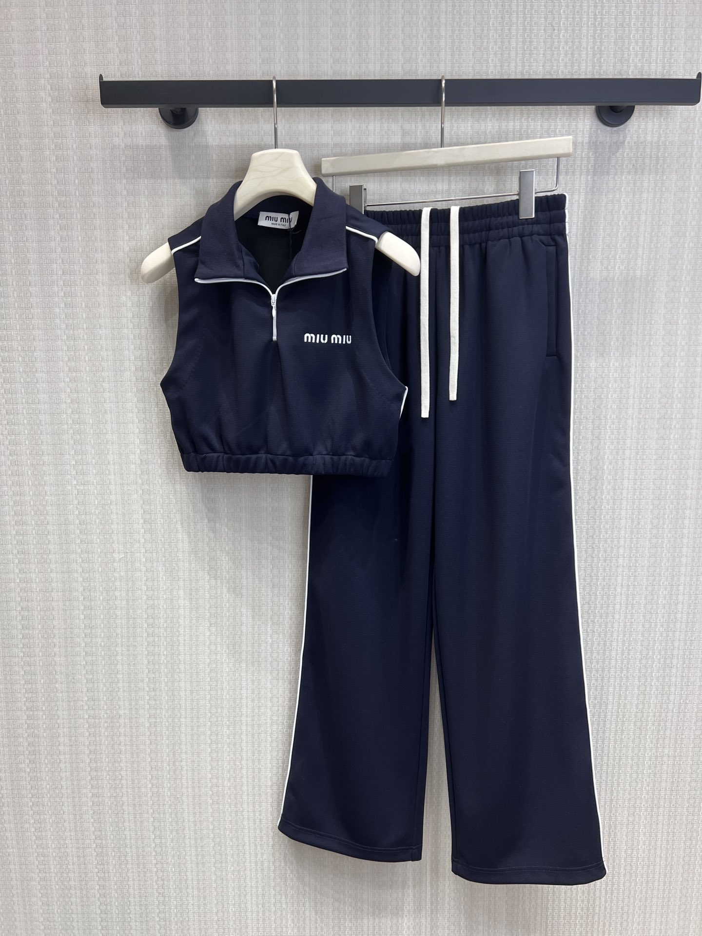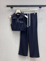 반지퍼 고네크 무袖 운동 상의 & 松紧腰 레저 팬츠 세트