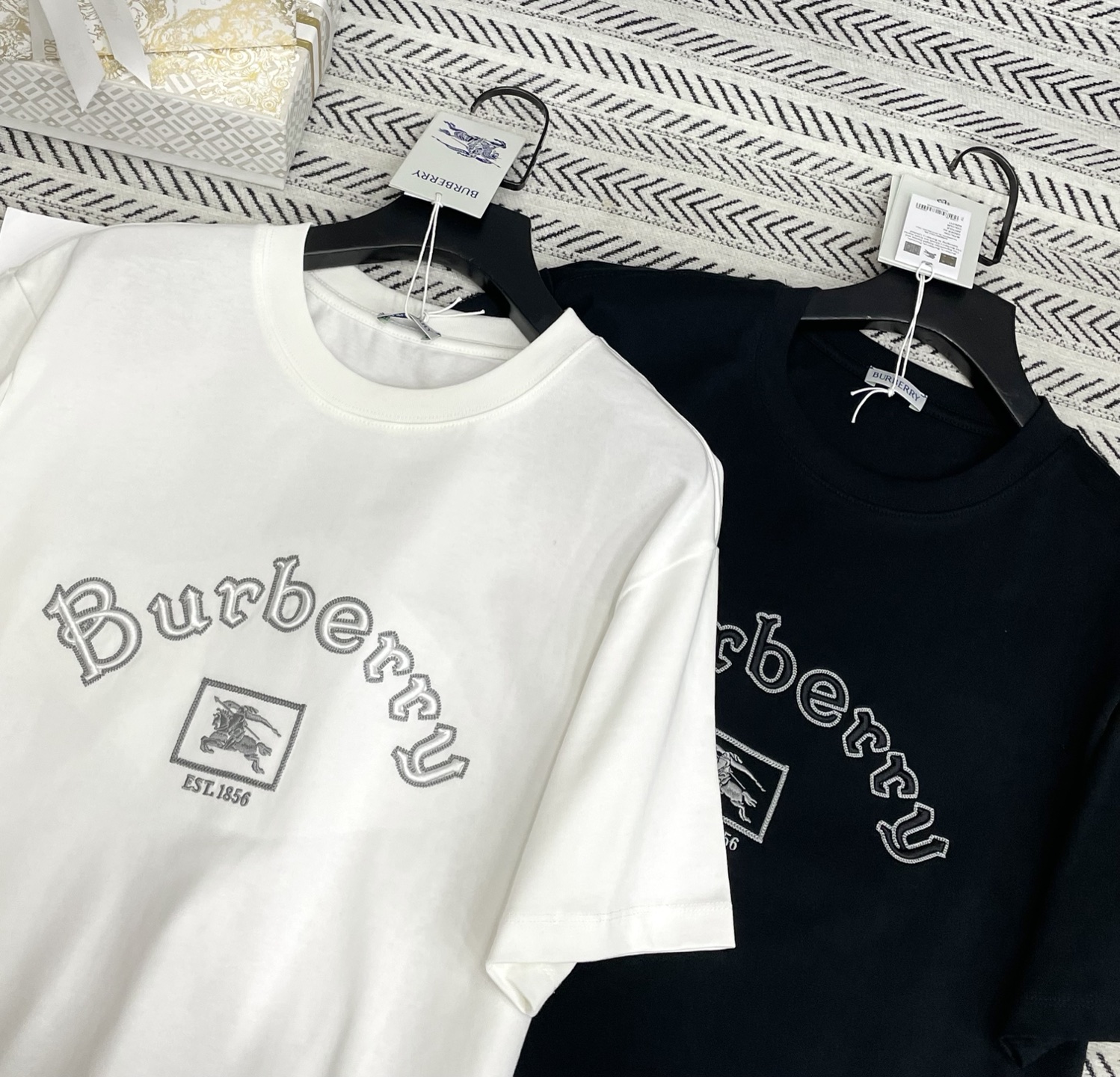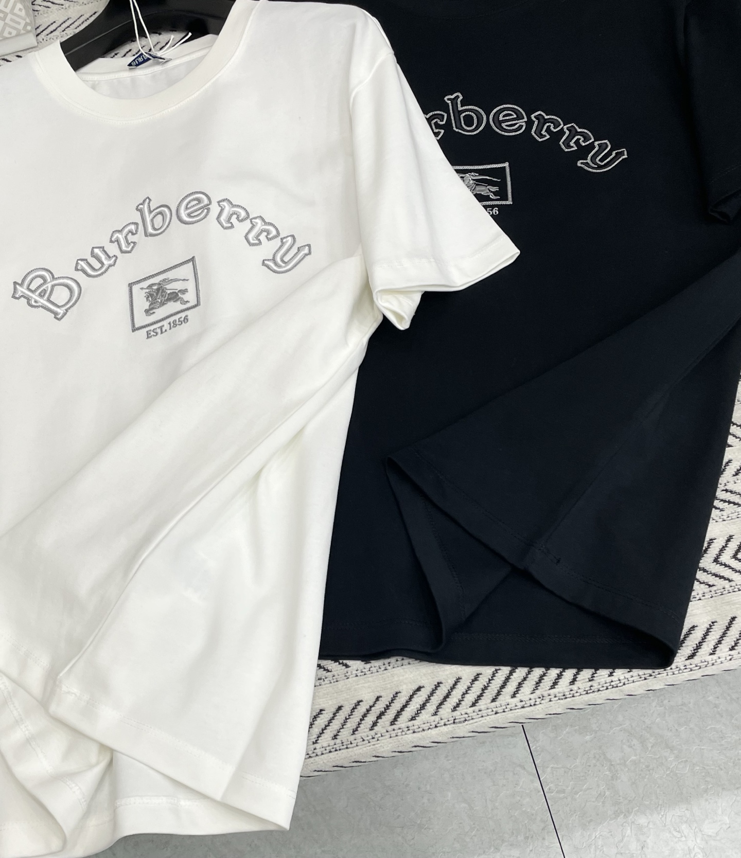 입체 자수 알파벳 전마 패턴 티셔츠