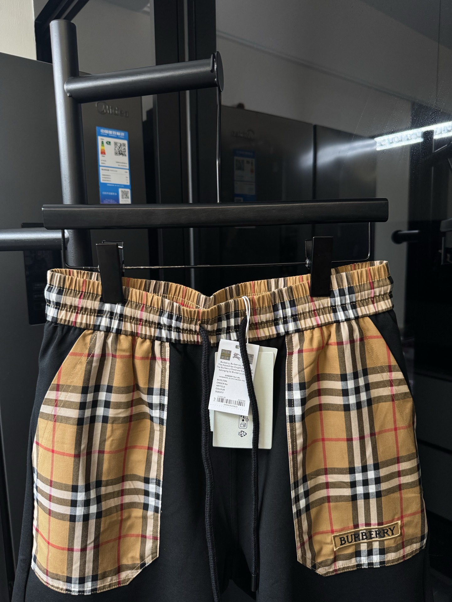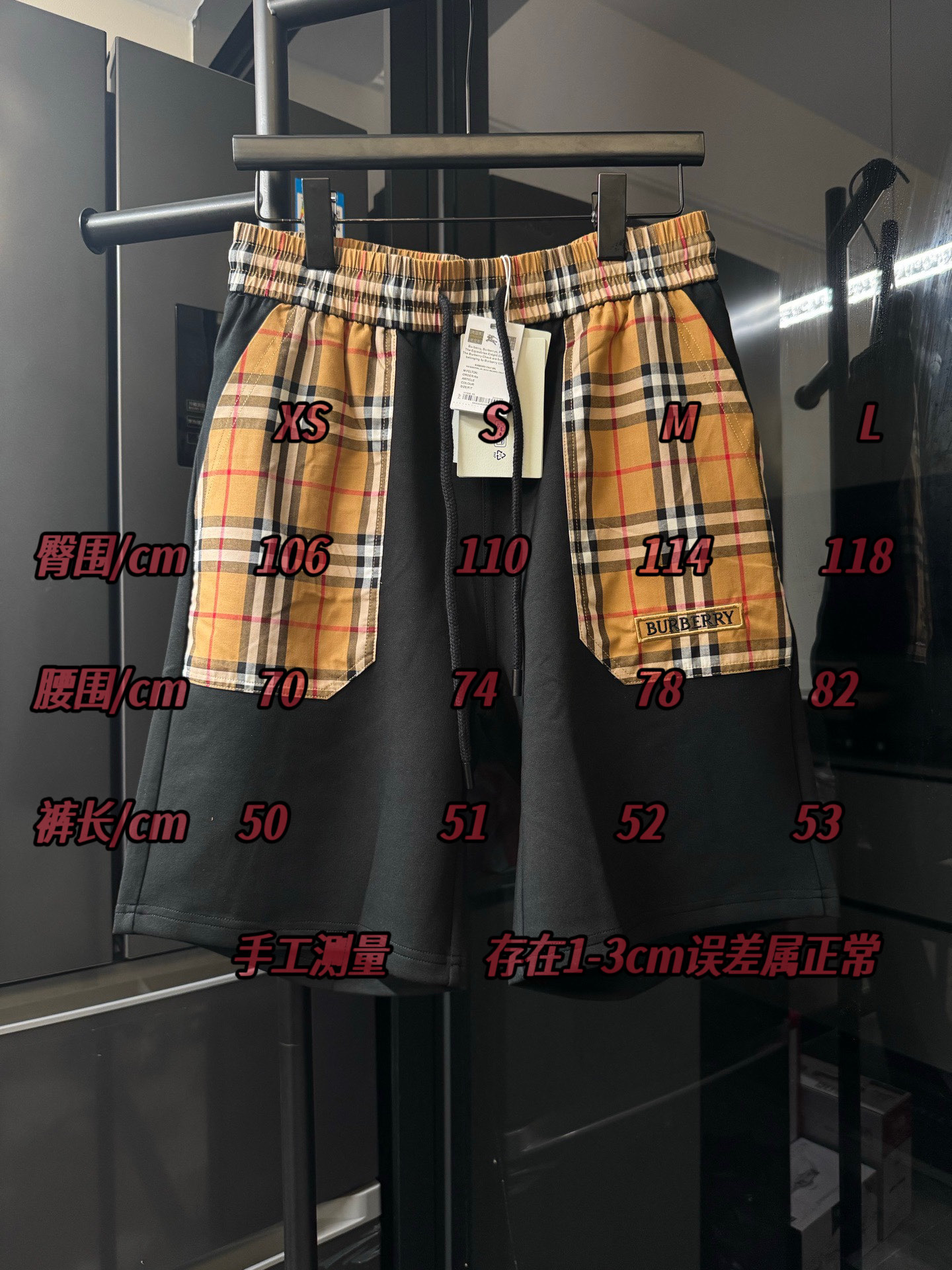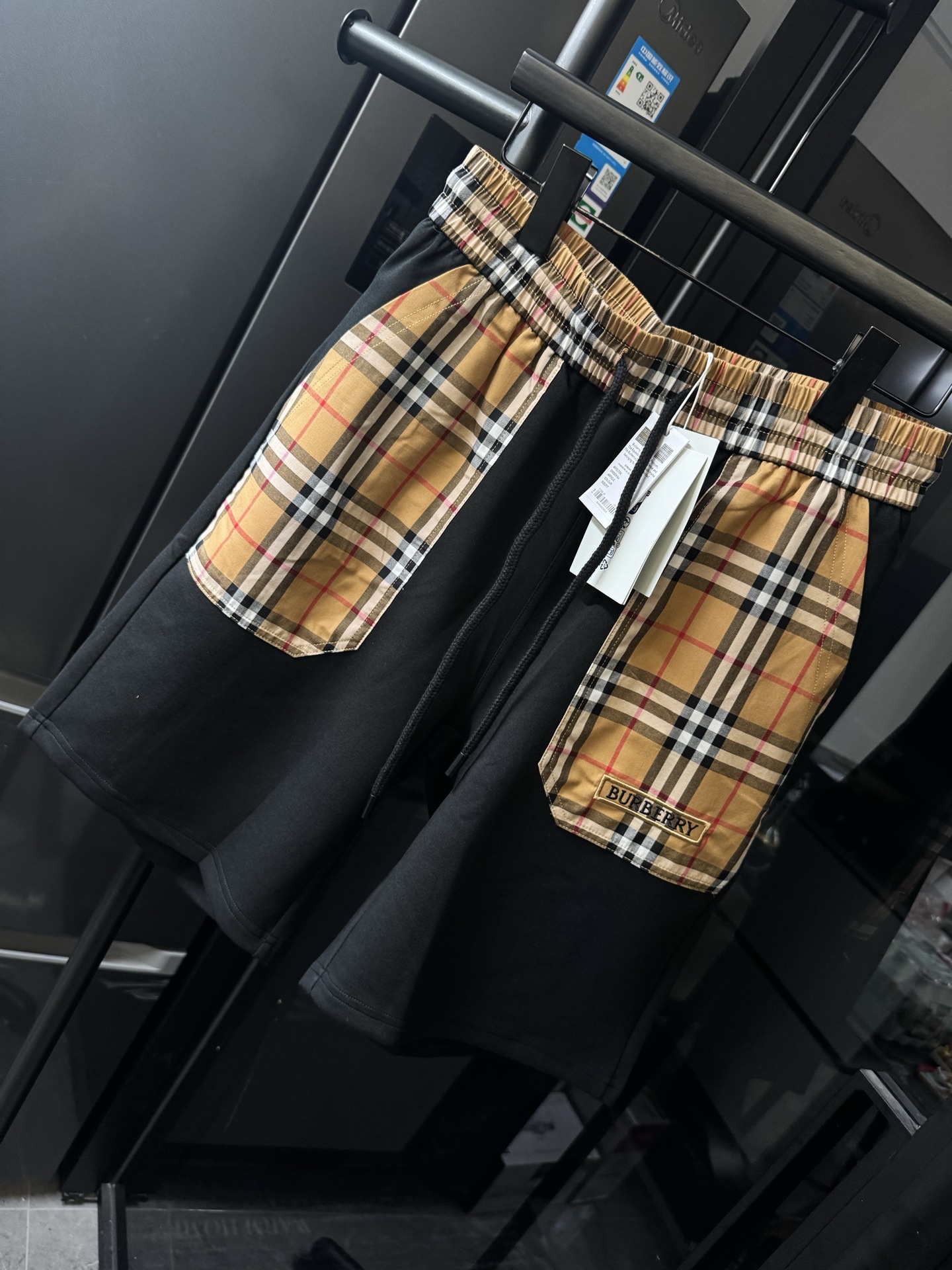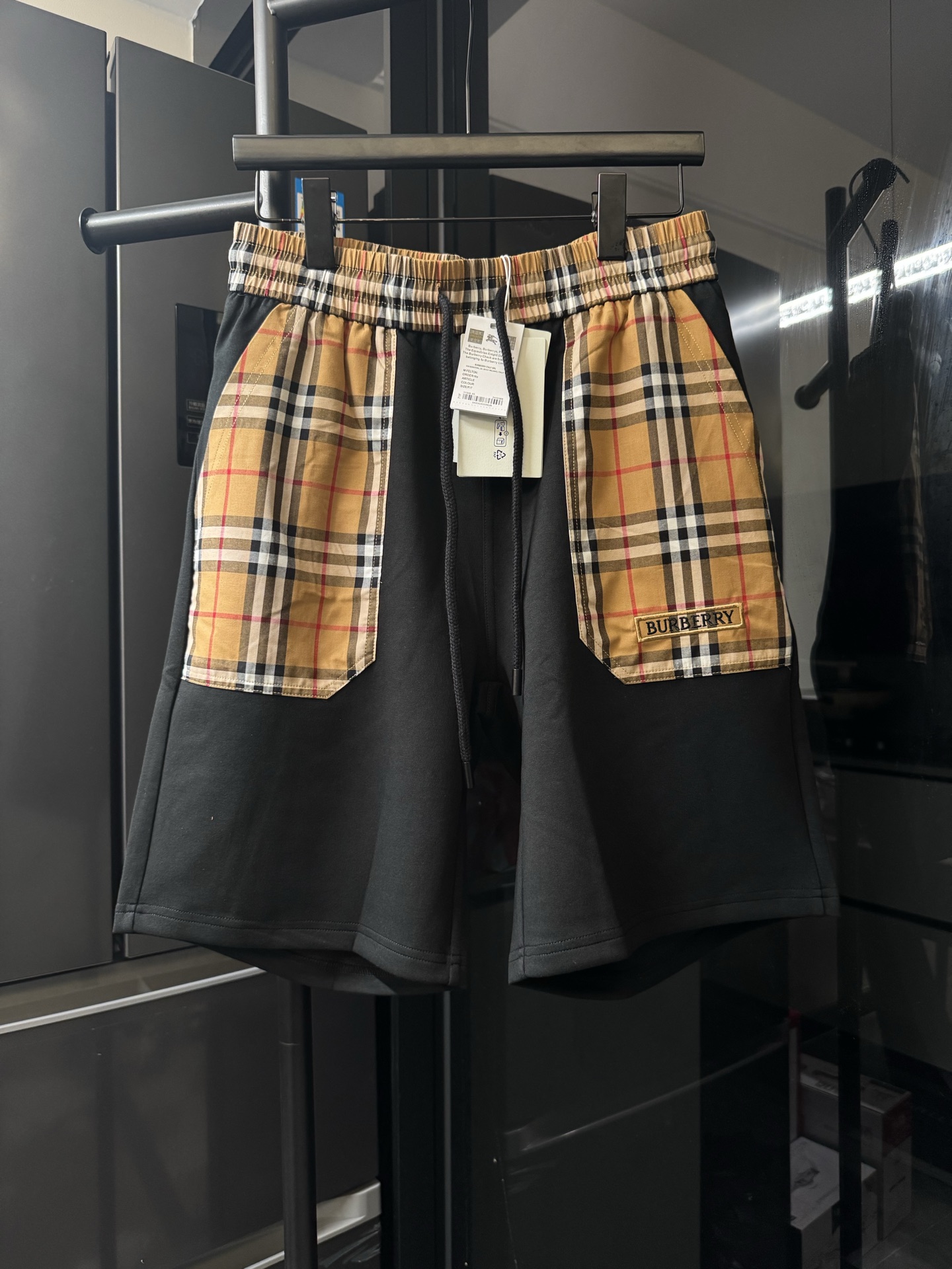 격자 무늬 자수 알파벳 반바지