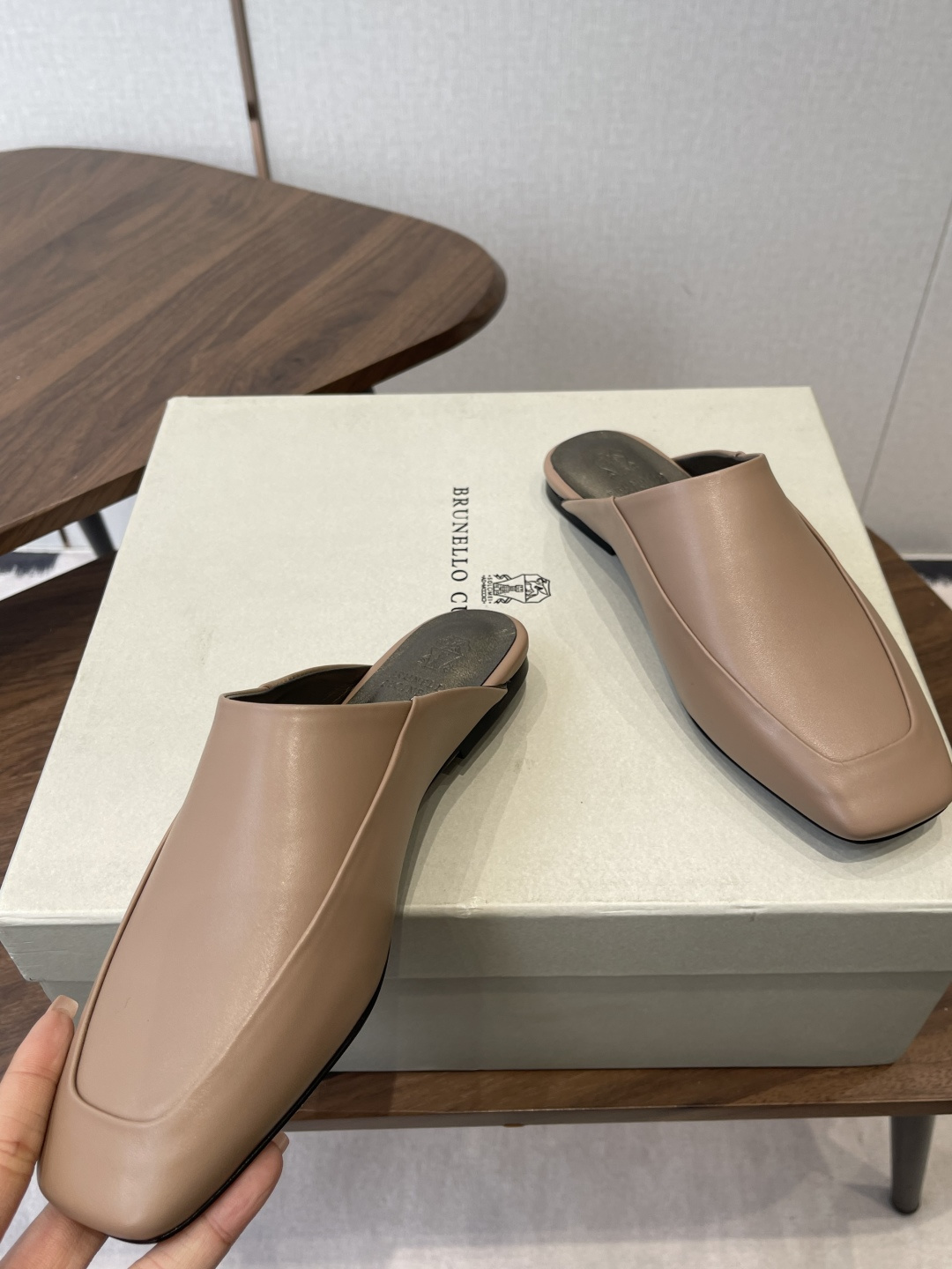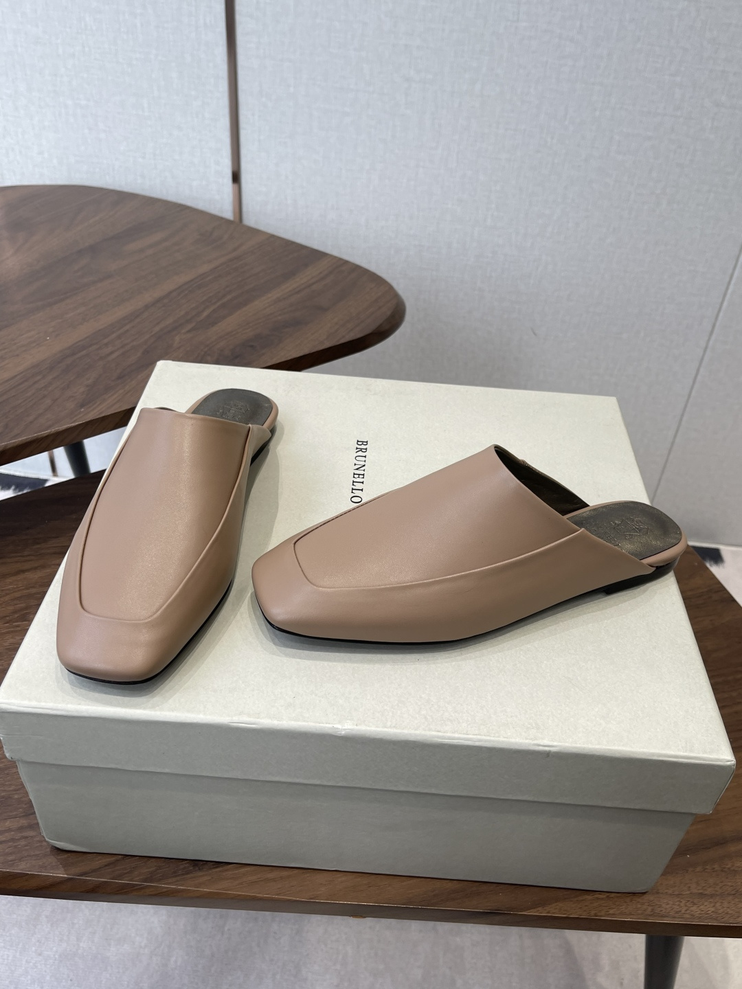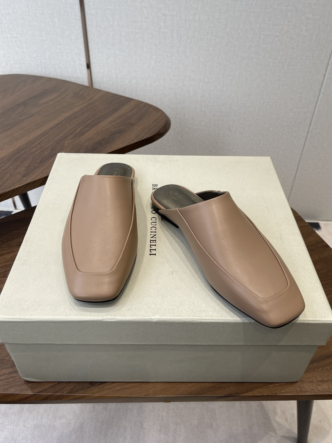 플랫 사각토 뮬 슈즈