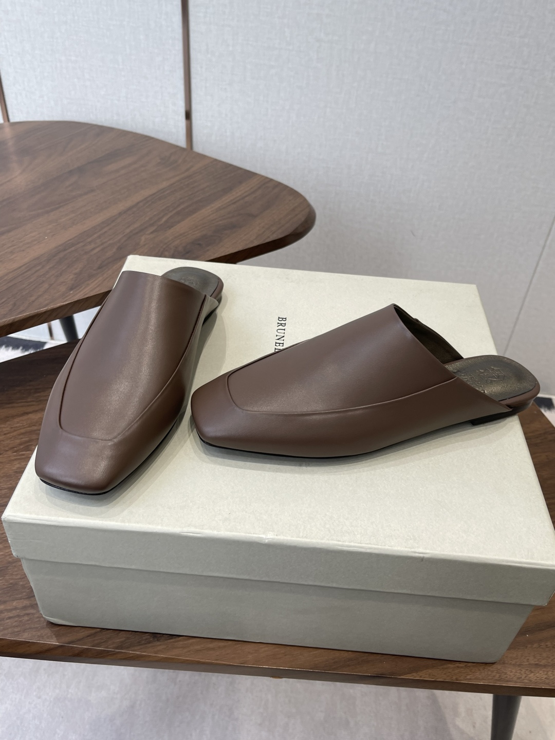 플랫 사각토 뮬 슈즈