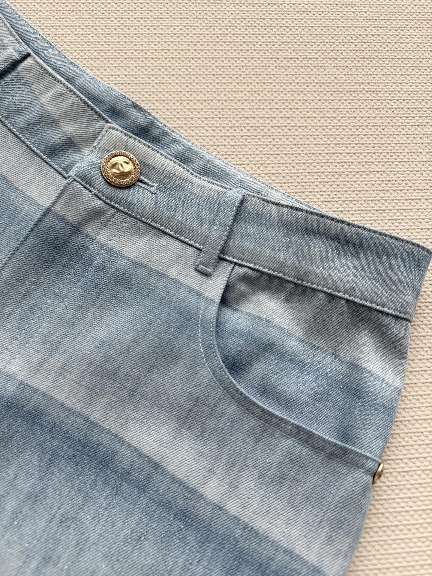 블루 스트라이프 데님 팬츠