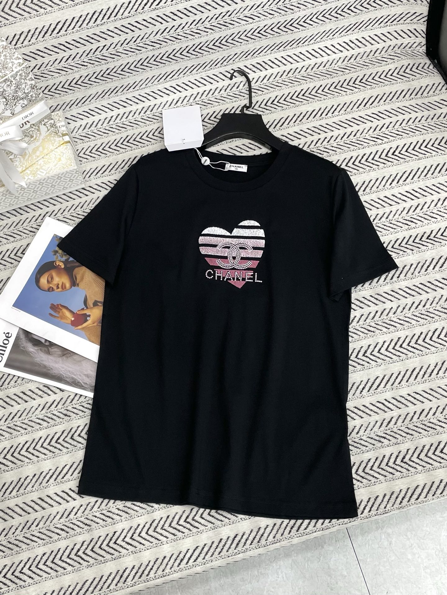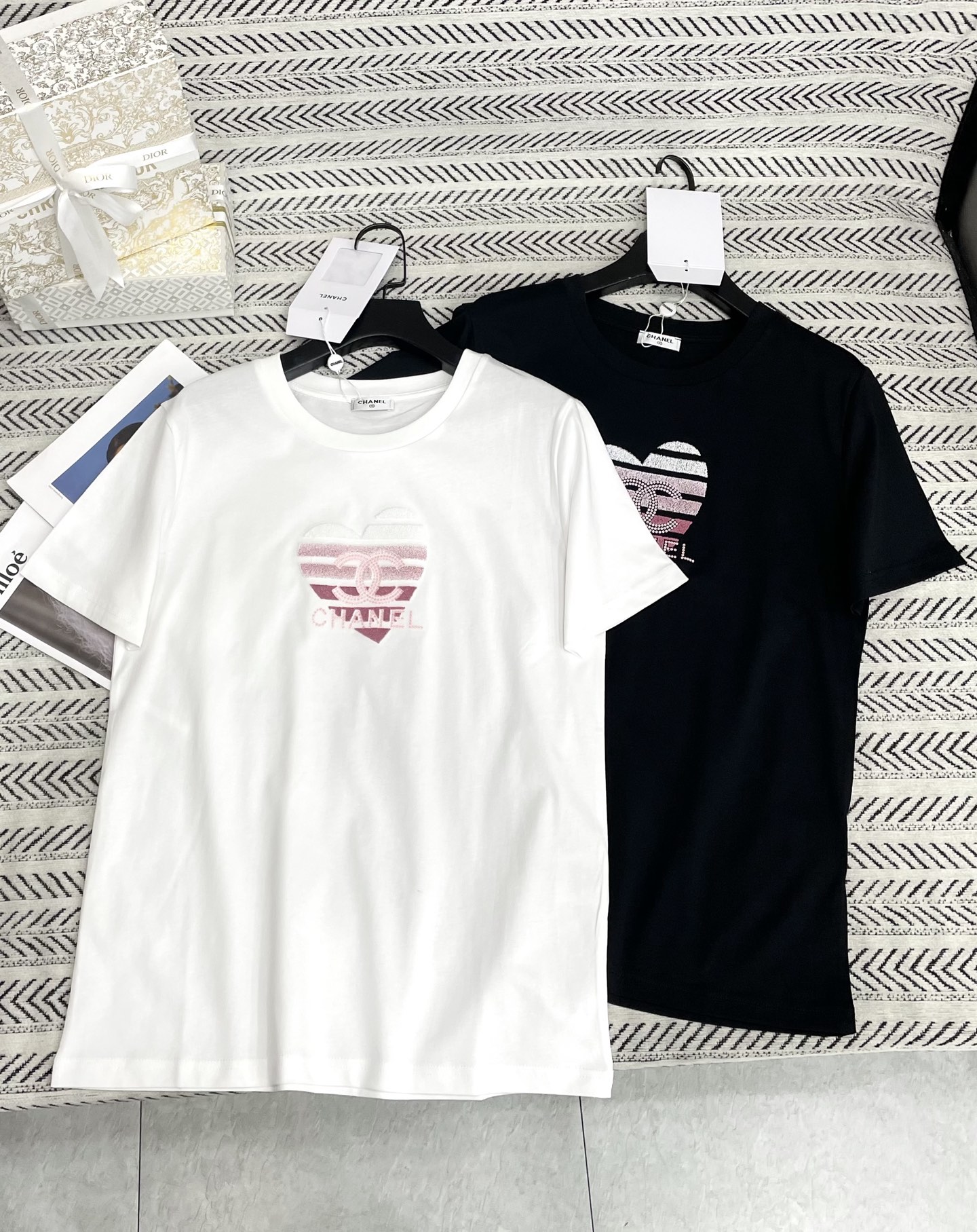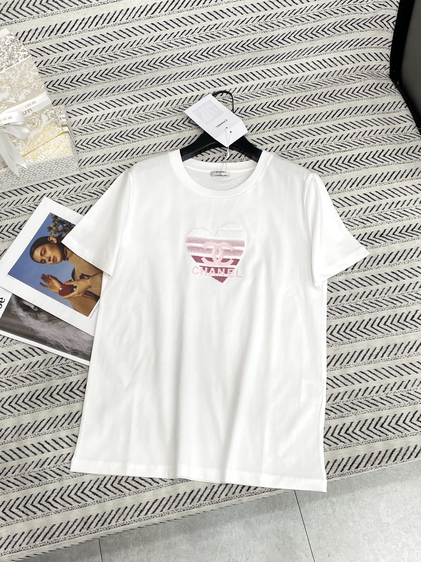 그라데이션 톱니 자수 하트 알파벳 패턴 티셔츠