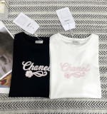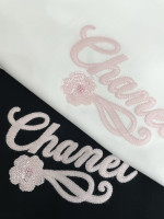 알파벳 자수 비즈 꽃 무늬 티셔츠