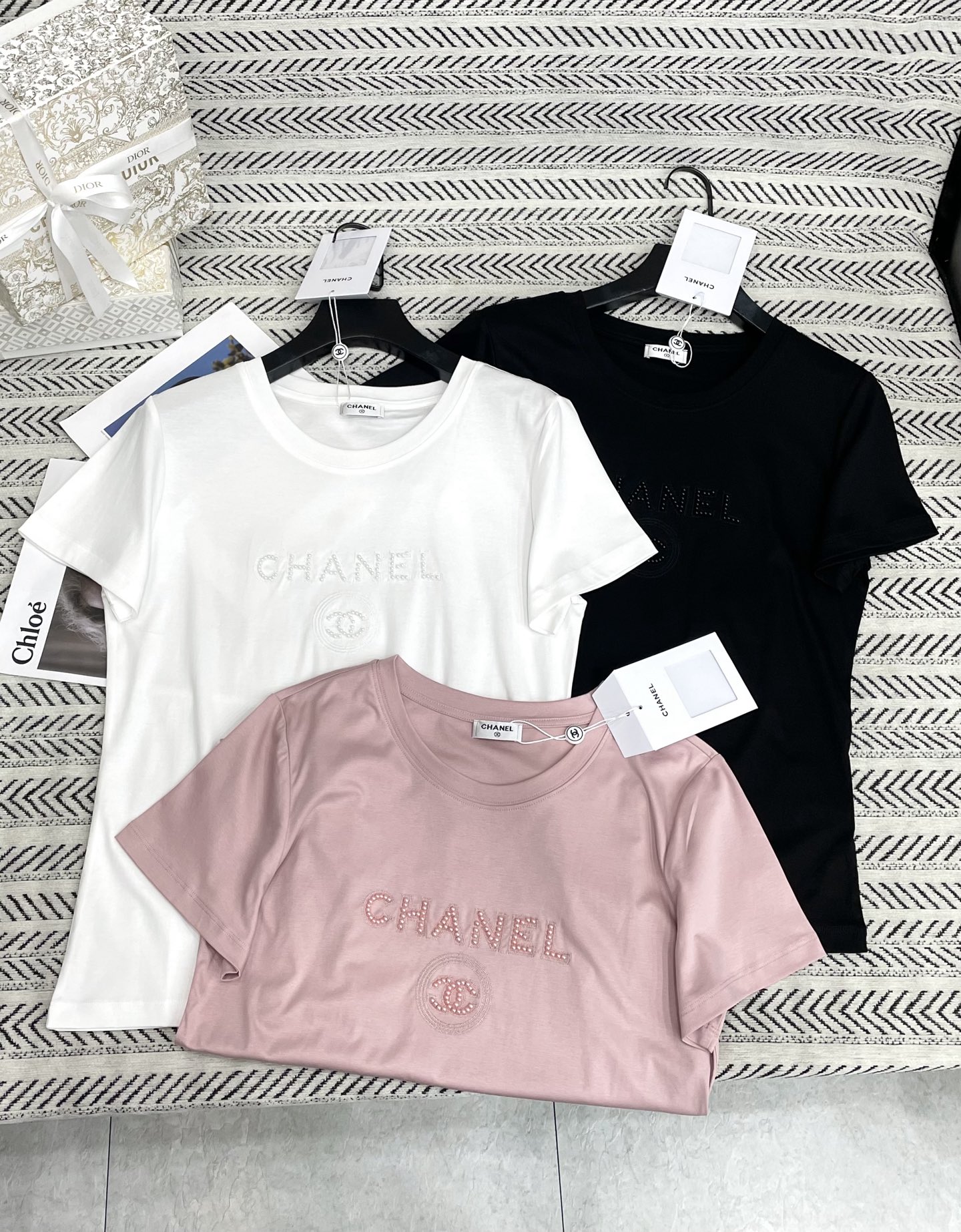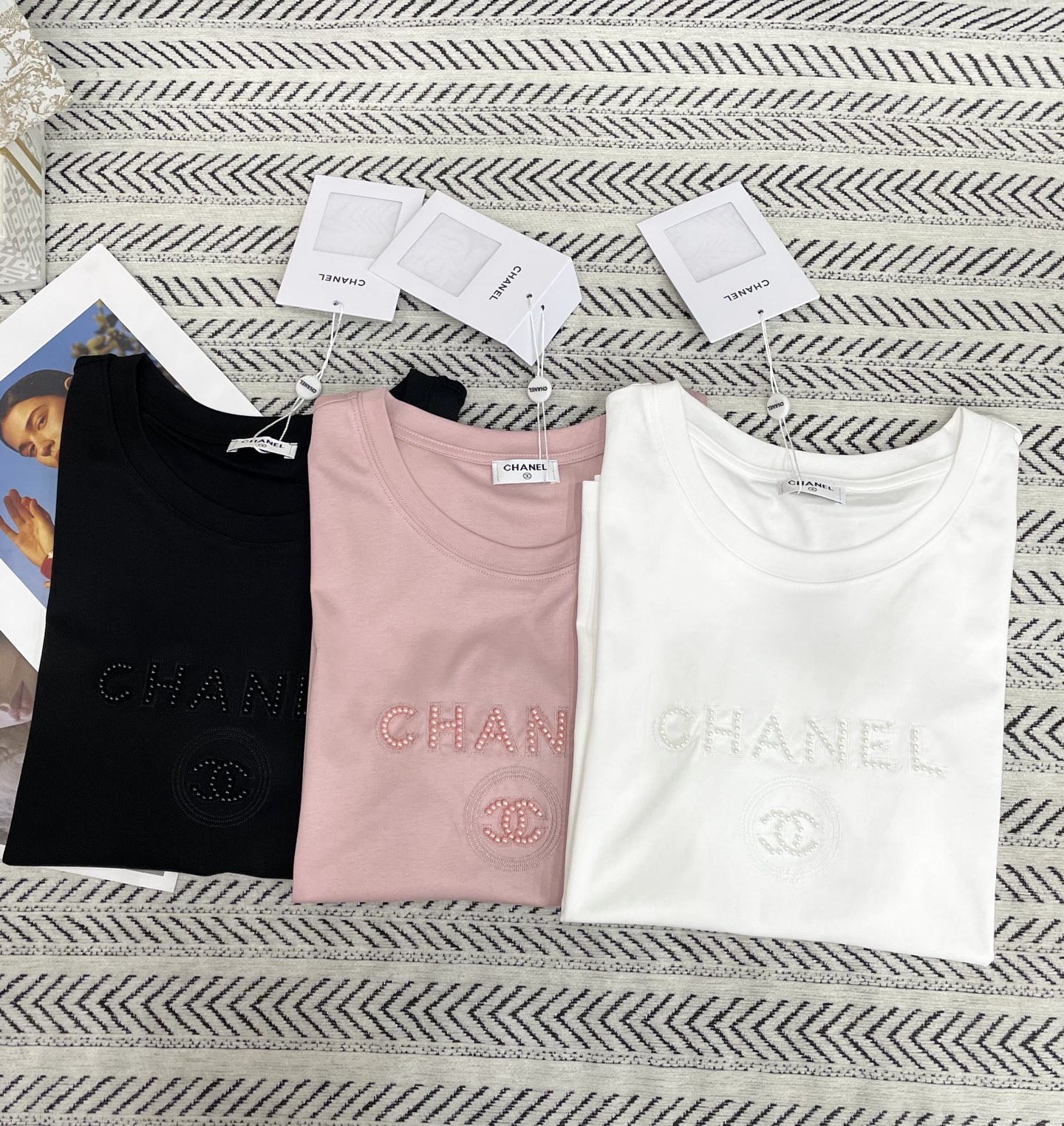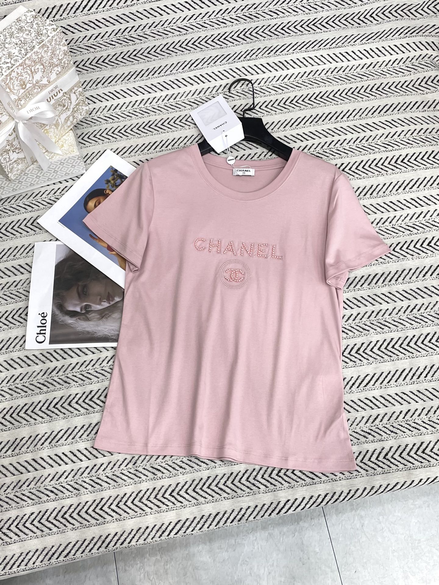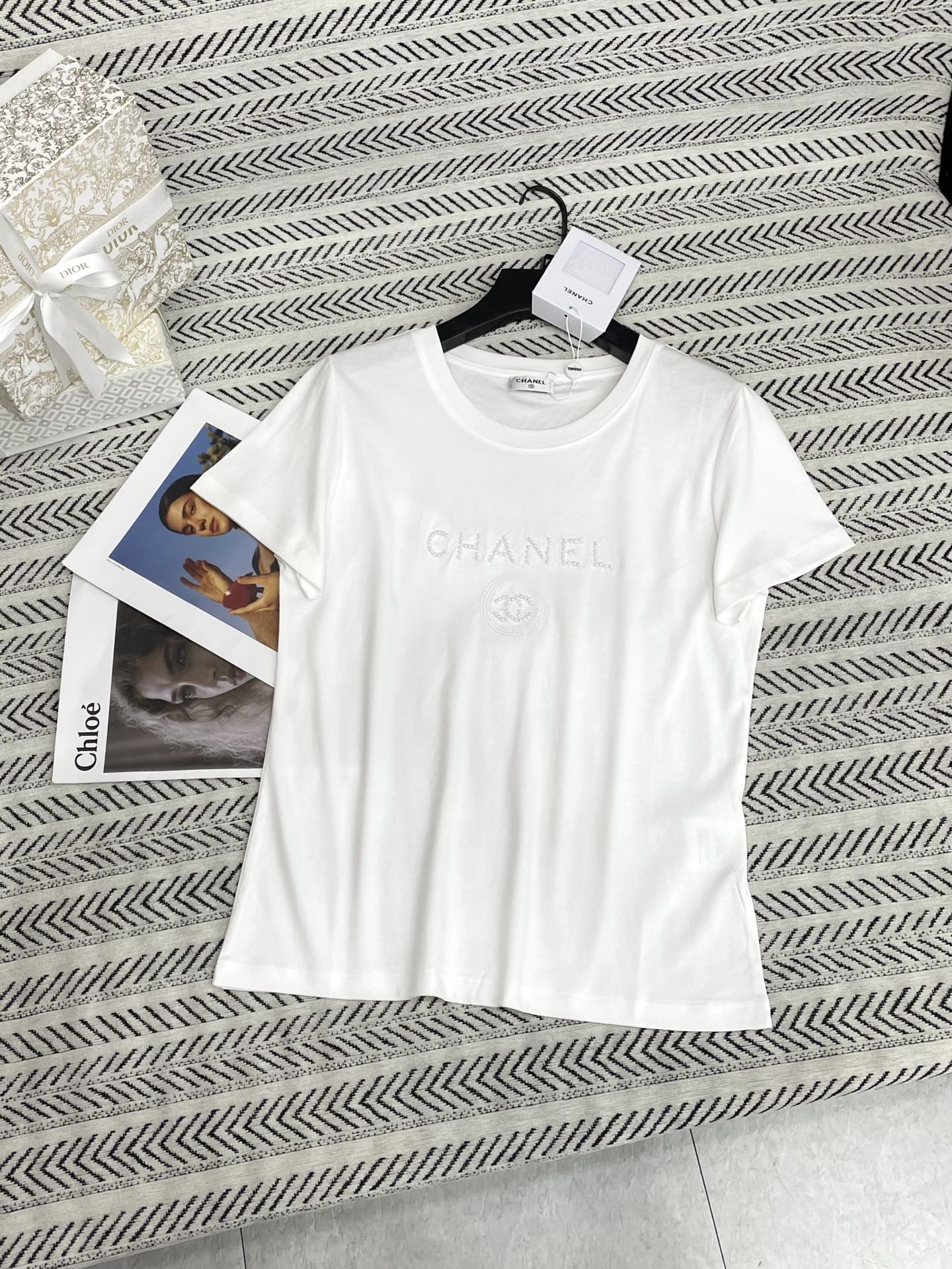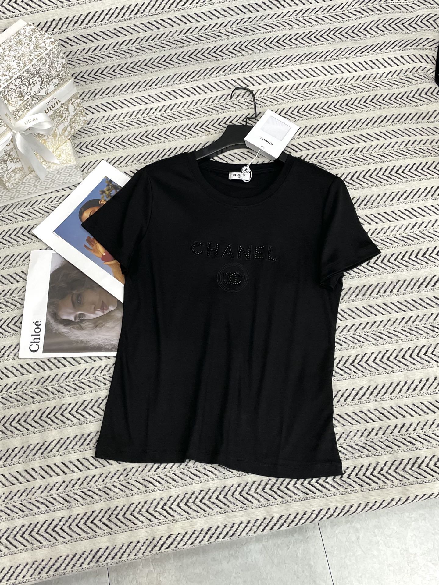 입체 향수병 5호 스터드 비즈 알파벳 티셔츠