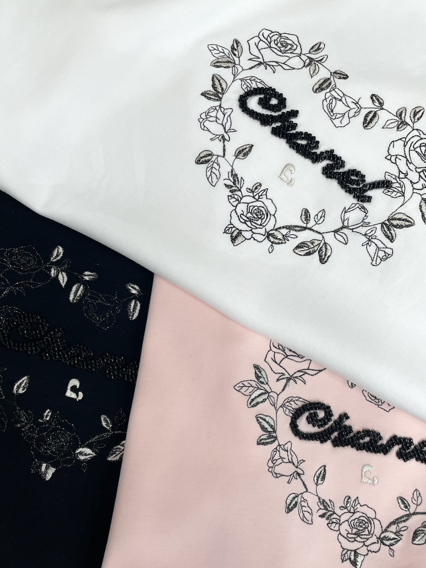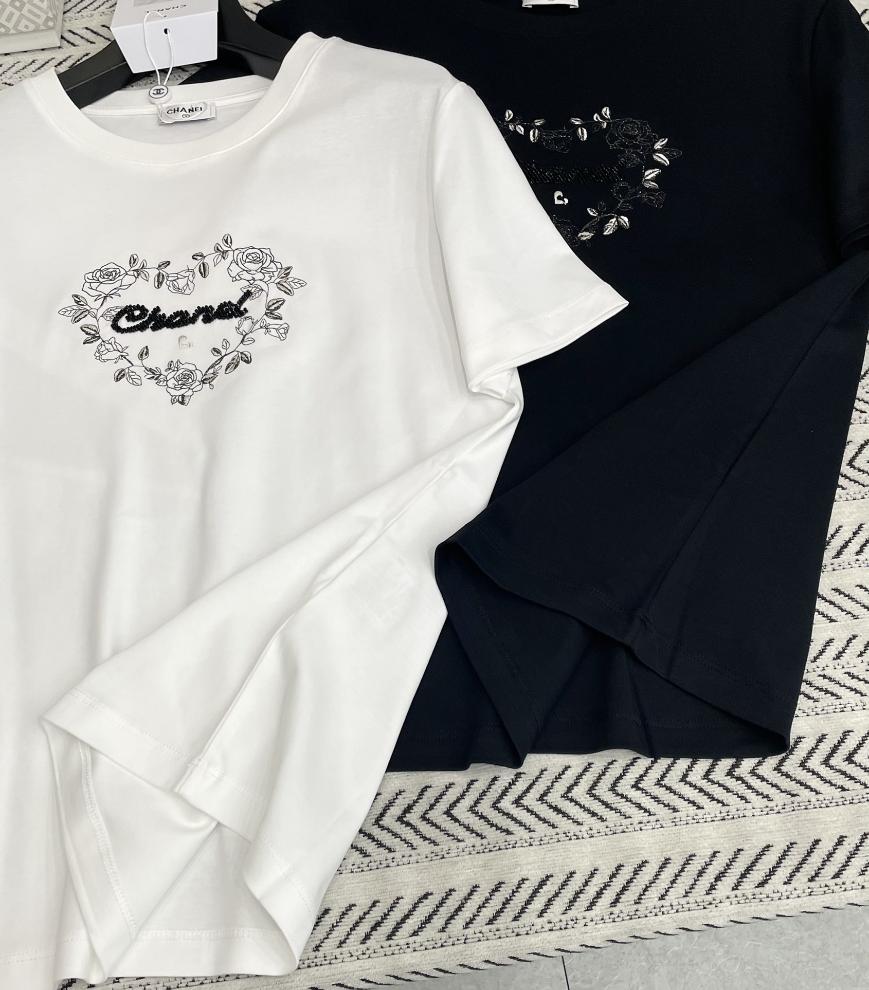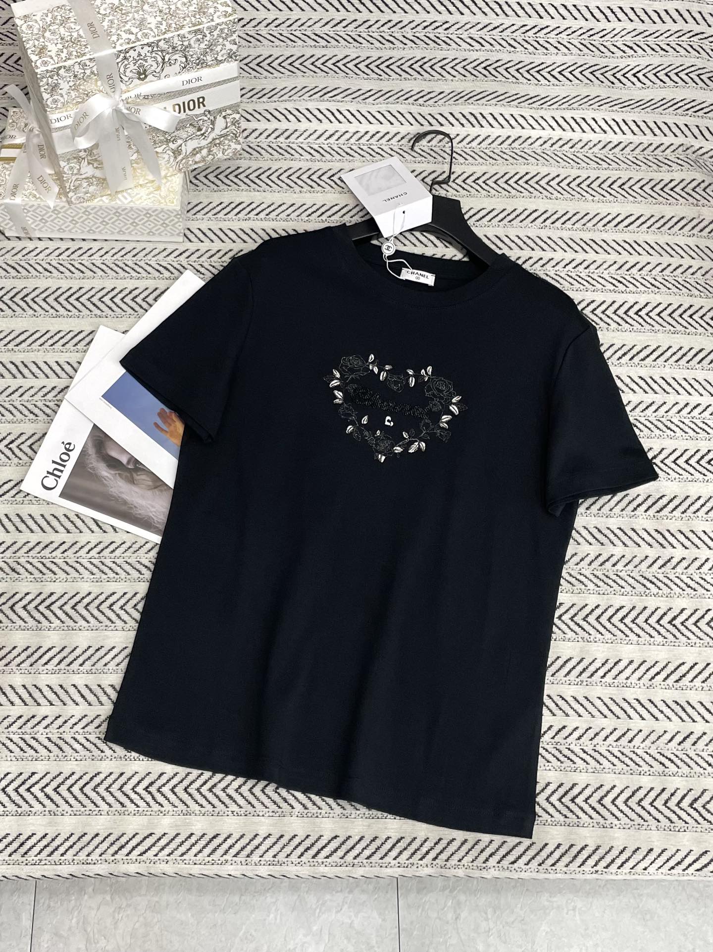비즈 자수 로고 패턴 티셔츠