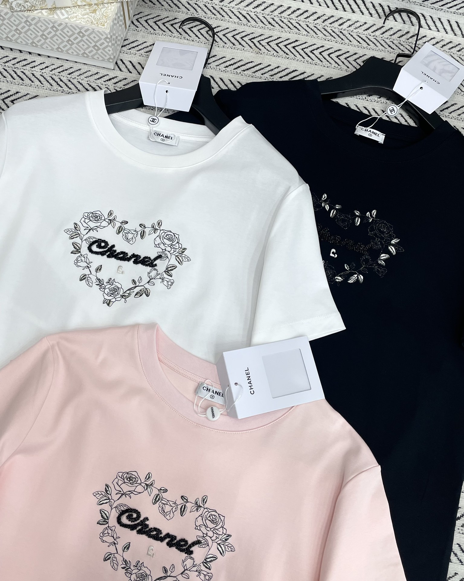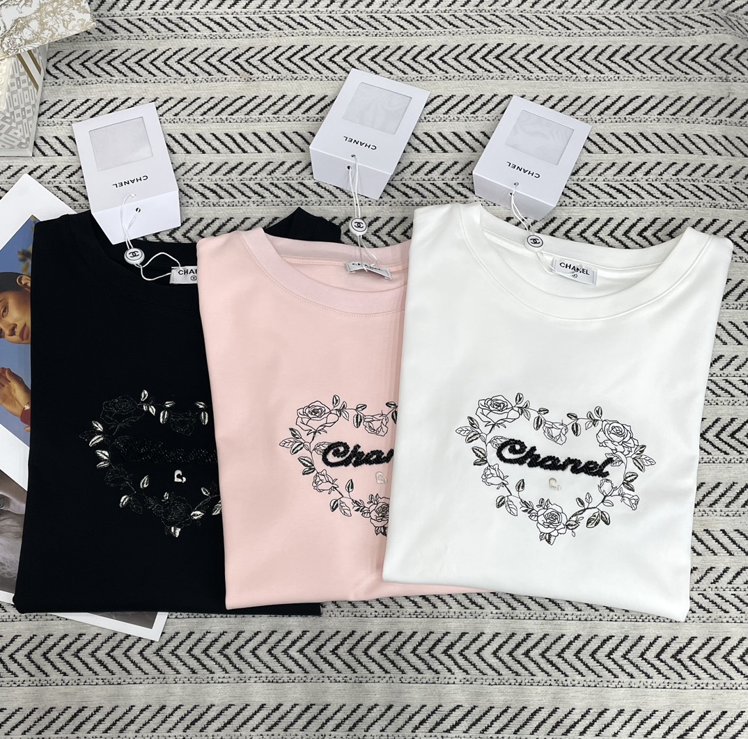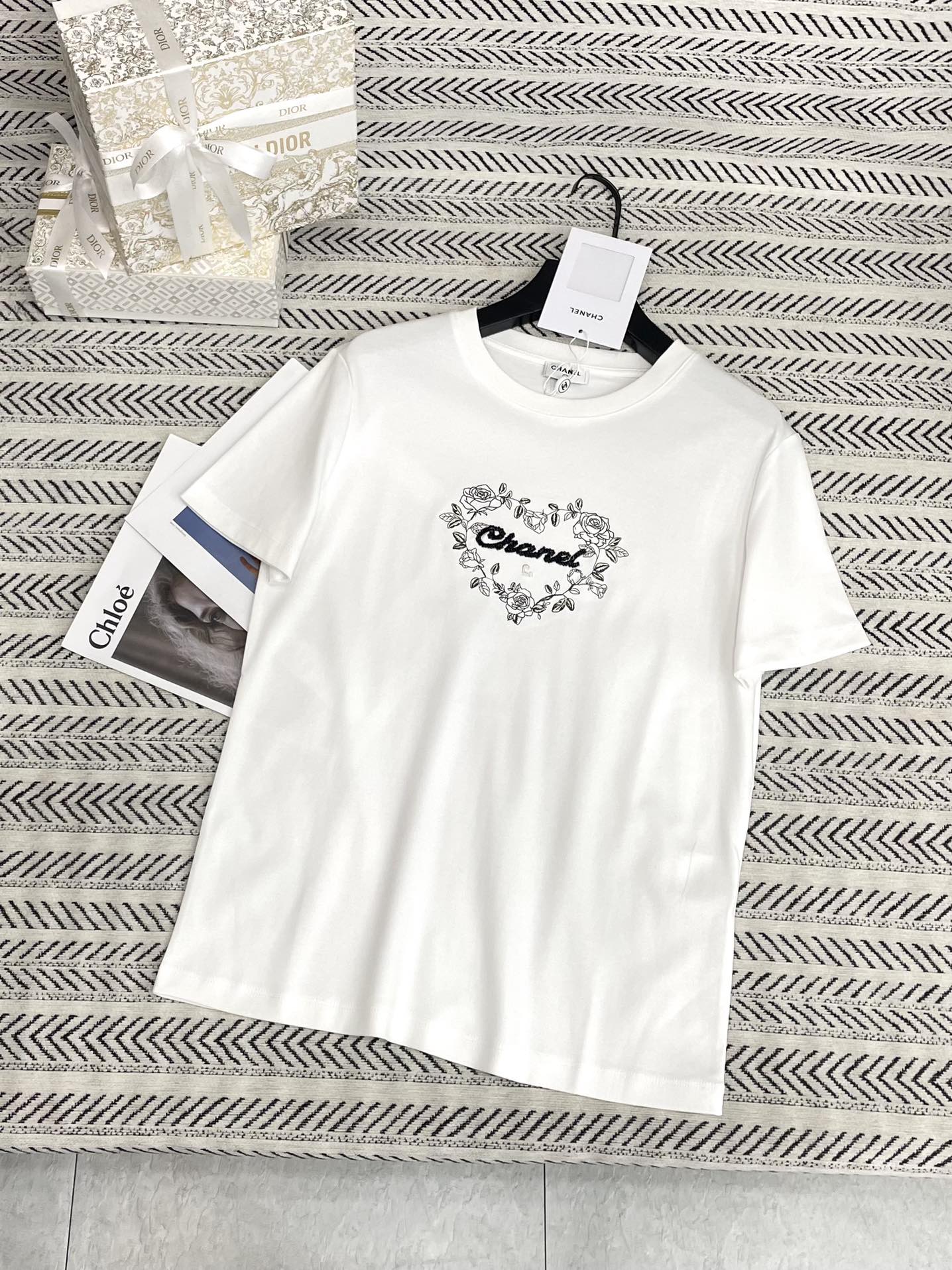비즈 자수 로고 패턴 티셔츠