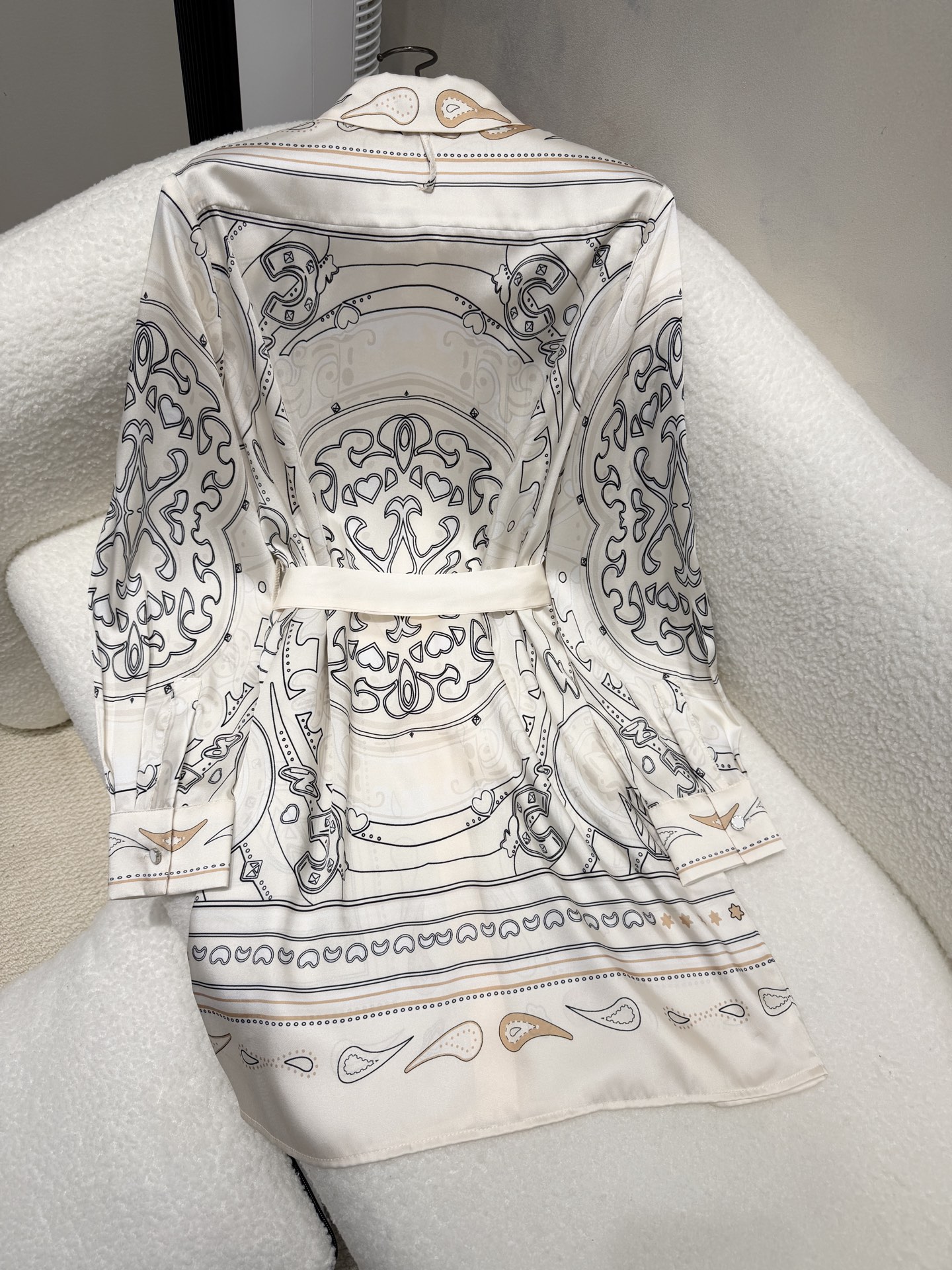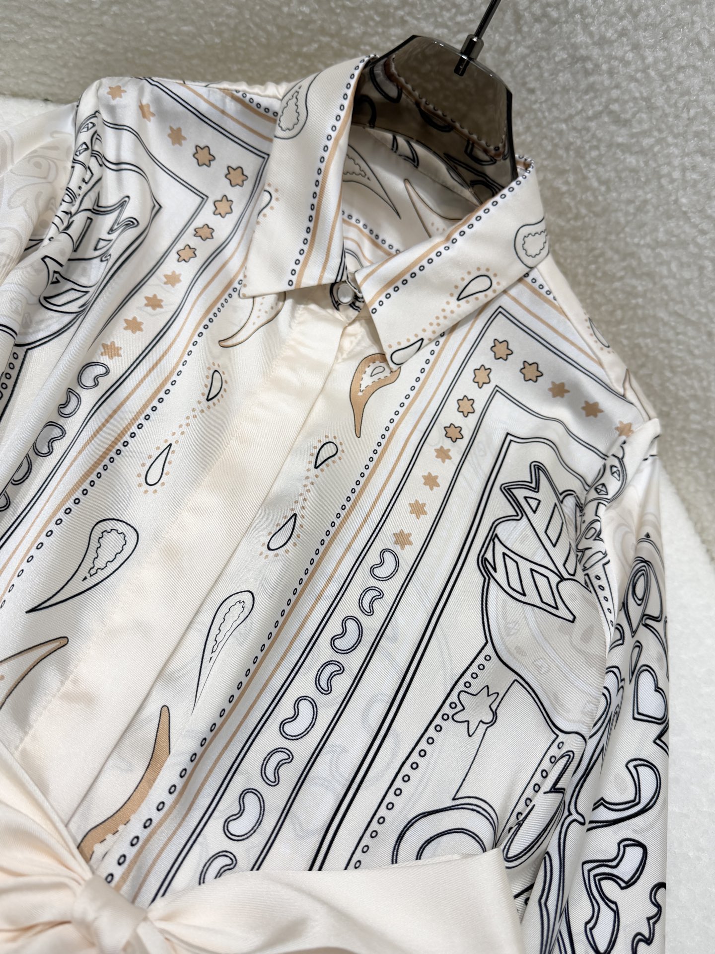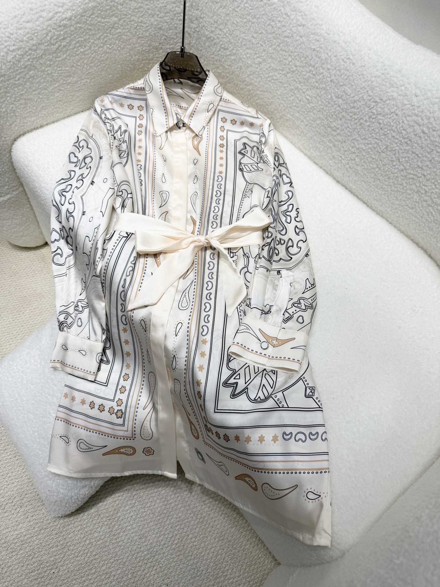 실크 인화 벨트 셔츠 원피스