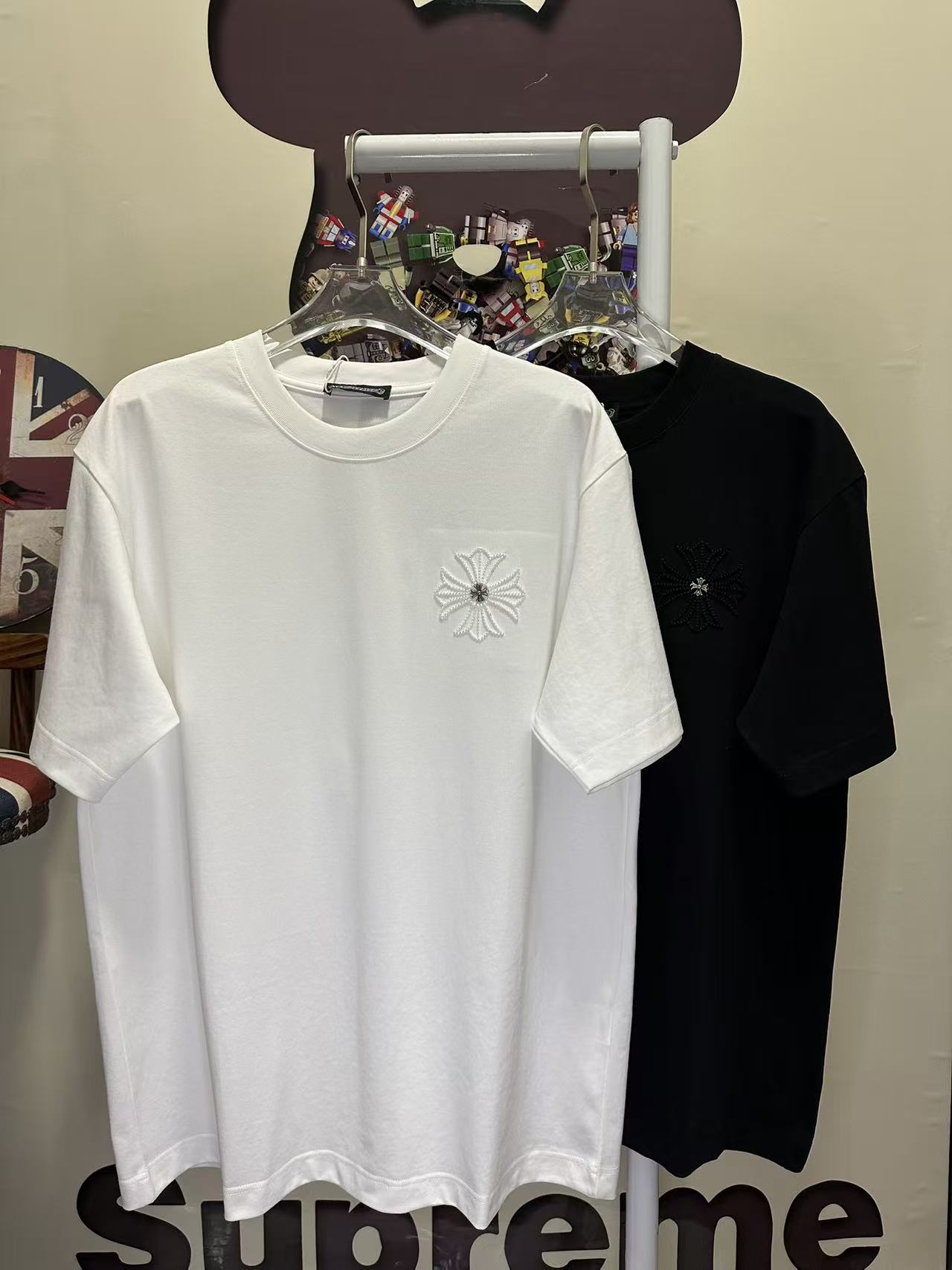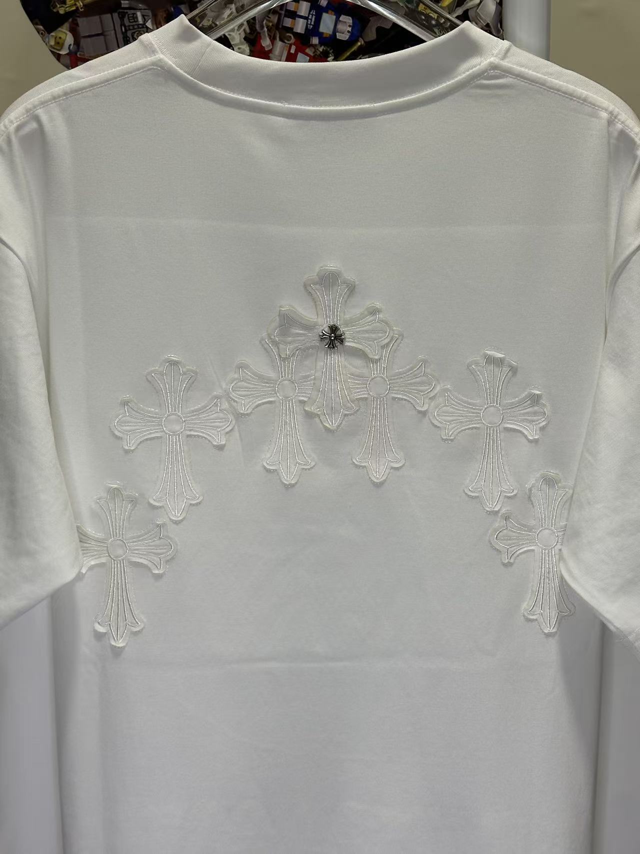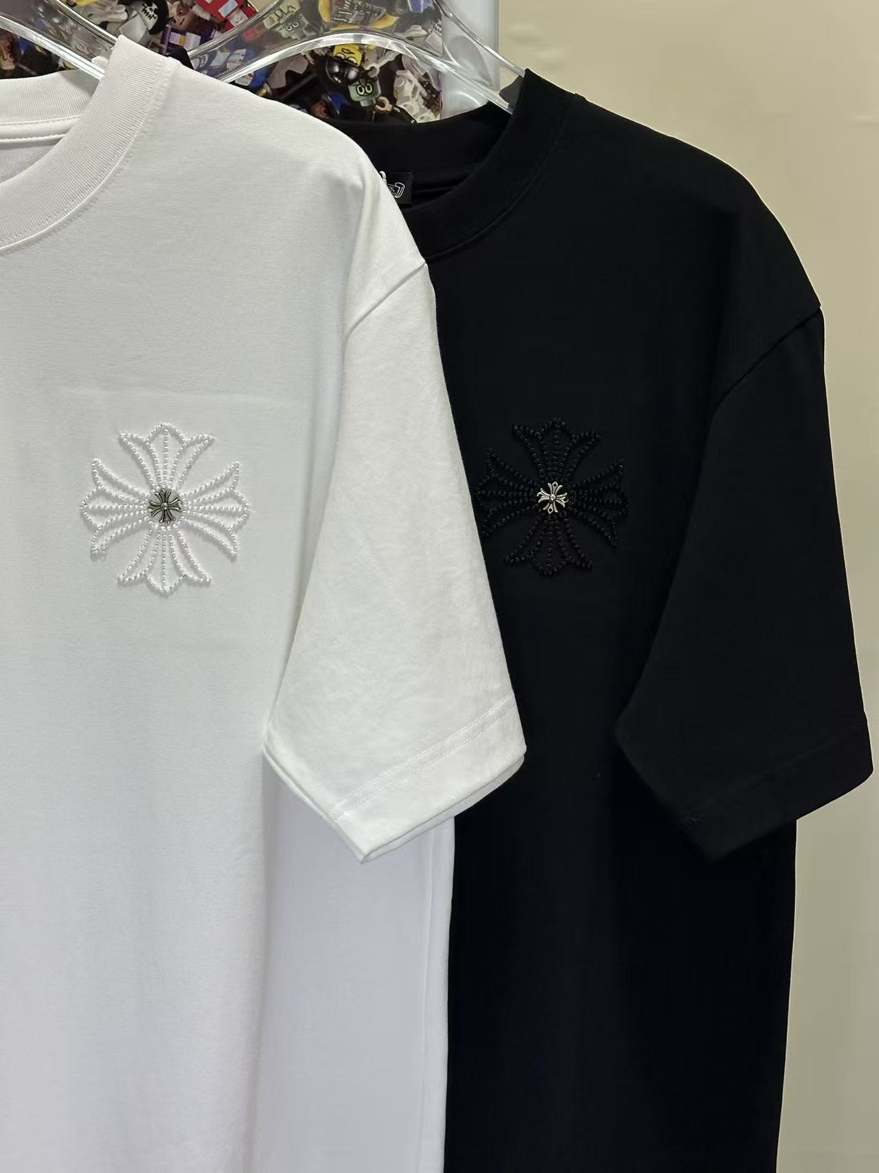 레이저 번아웃 패브릭 자수 커플 숏슬리브