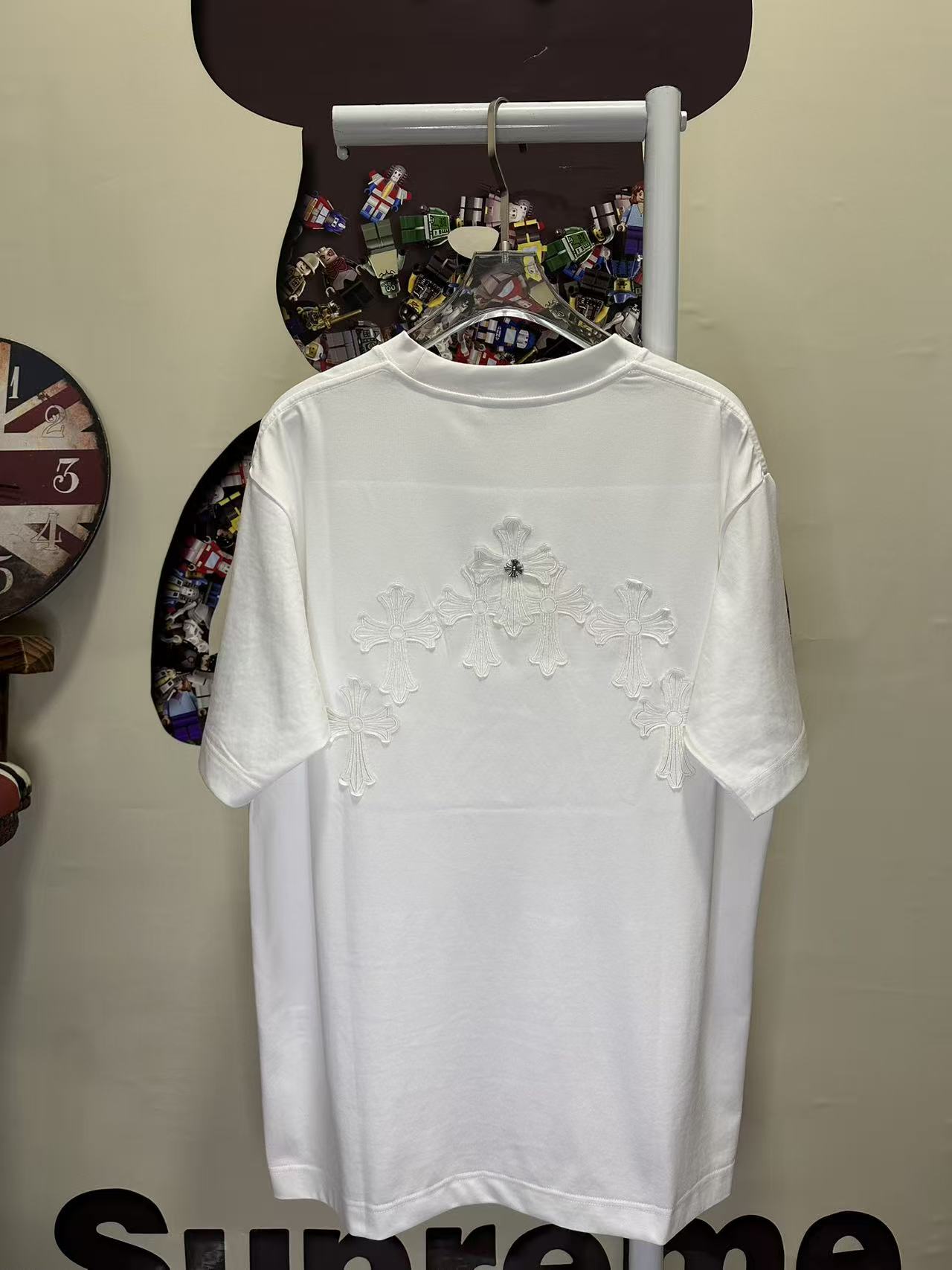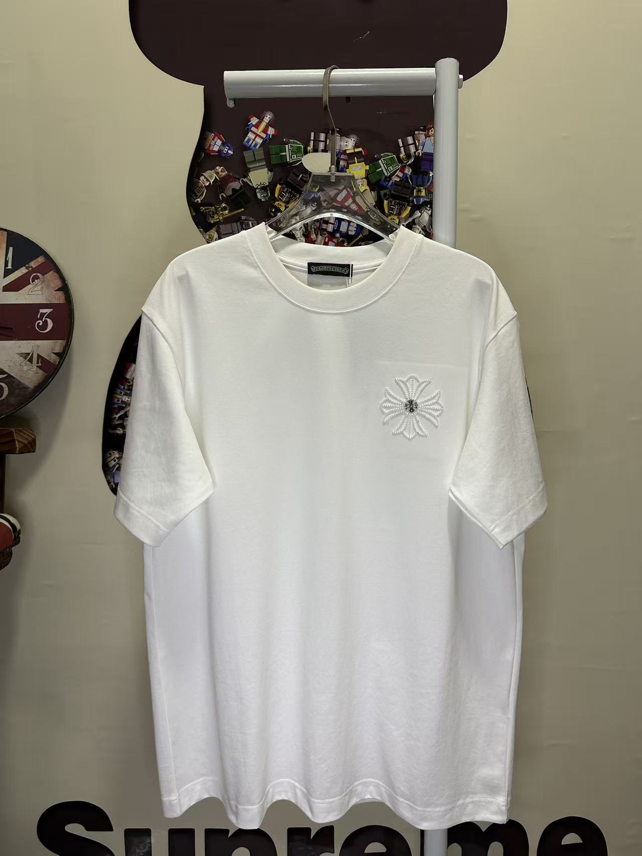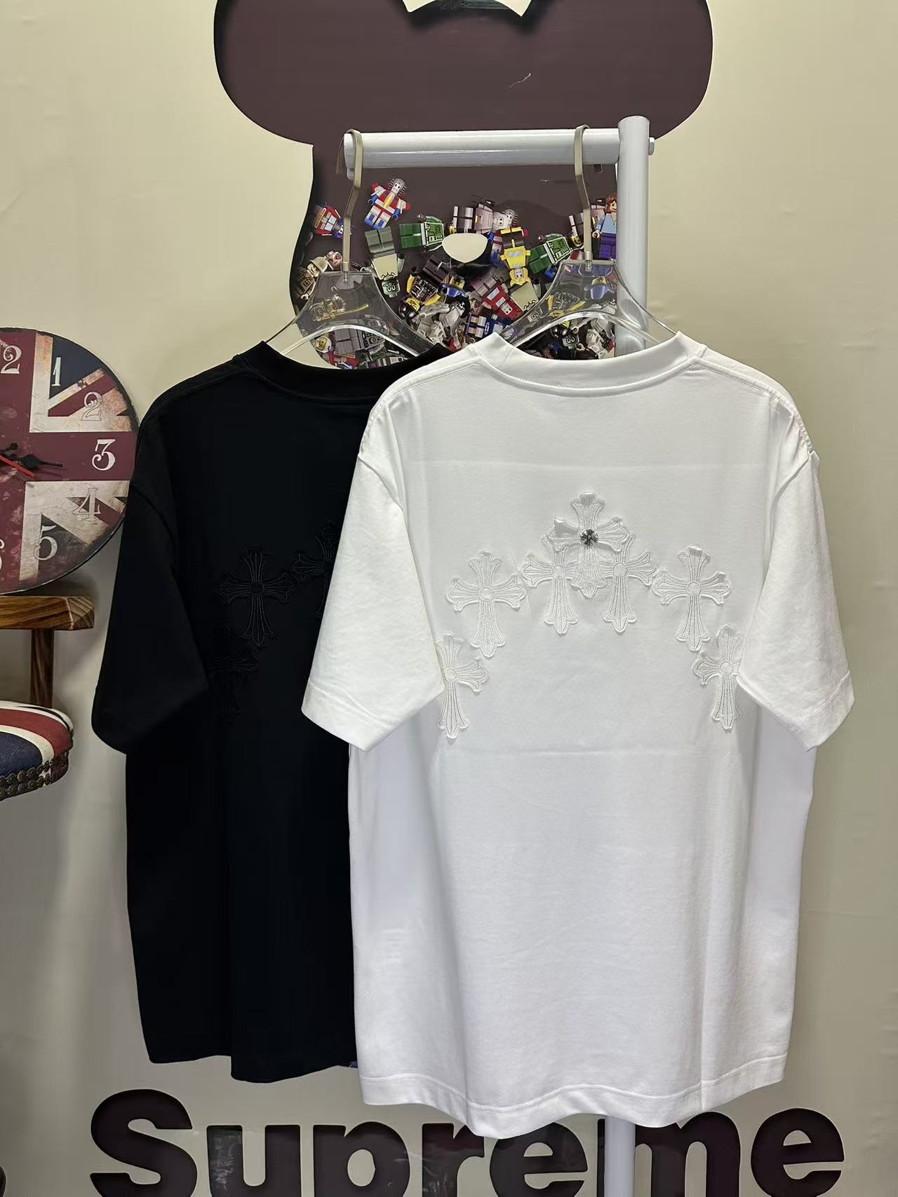 레이저 번아웃 패브릭 자수 커플 숏슬리브