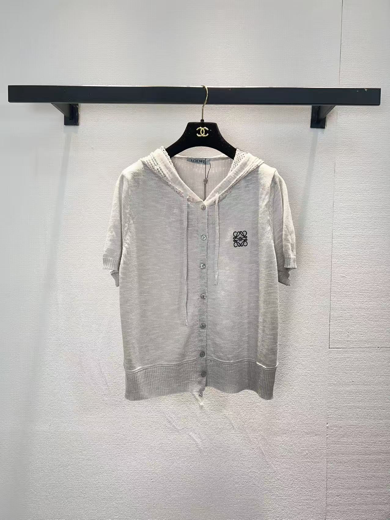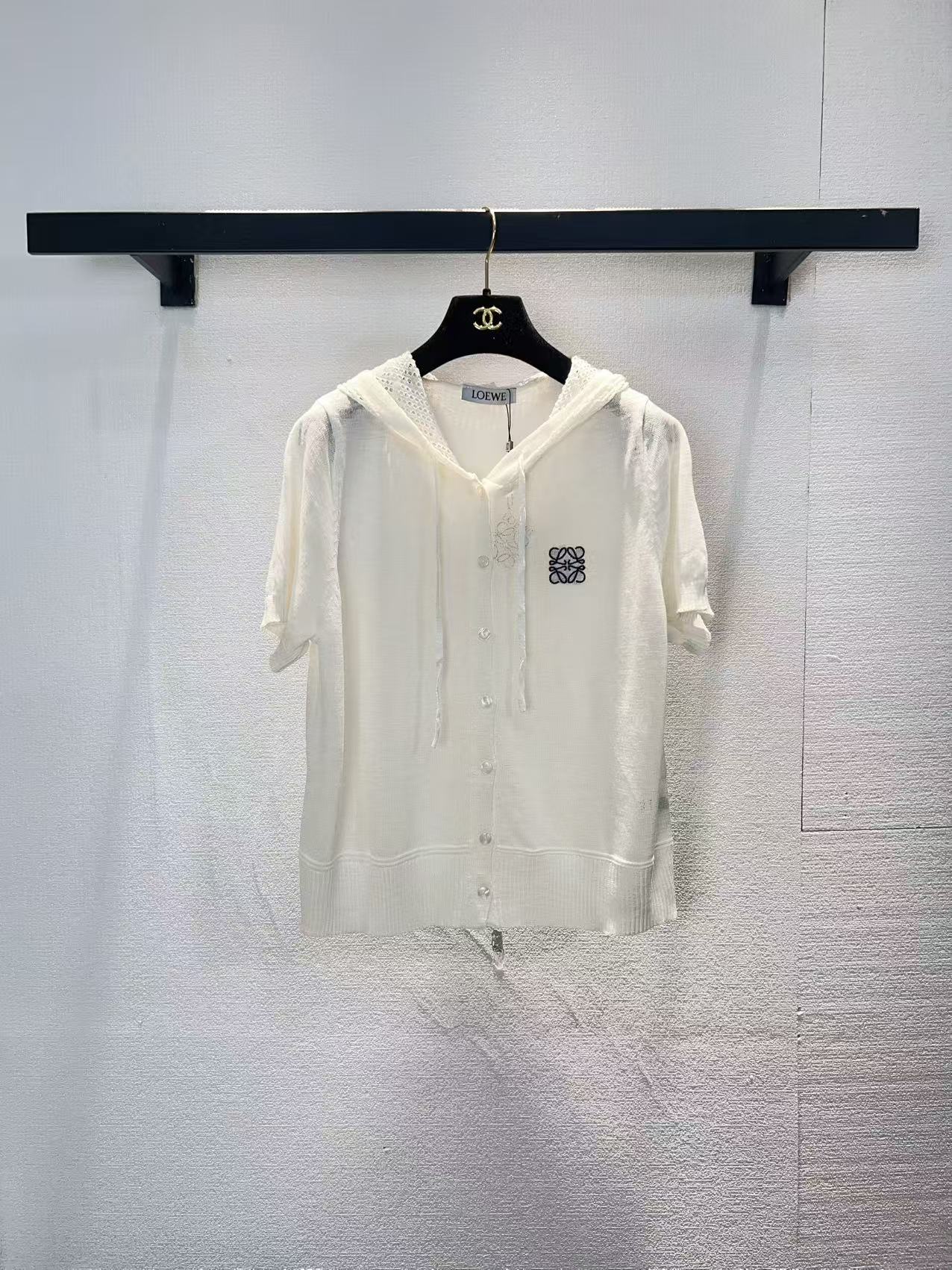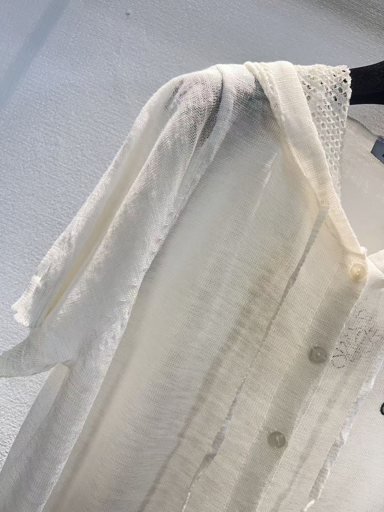 라운드넥 알파벳 로고 중공 자수 자카드 오버사이즈 순면 반팔 티셔츠