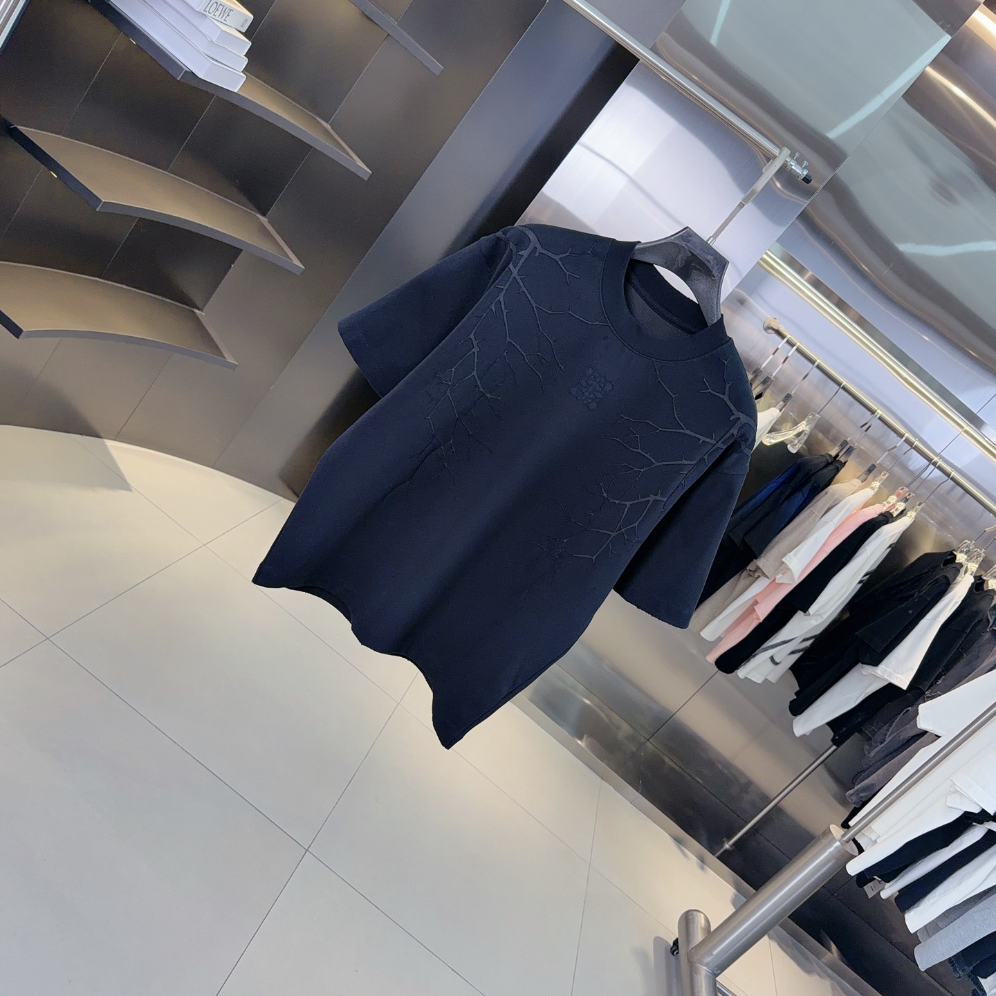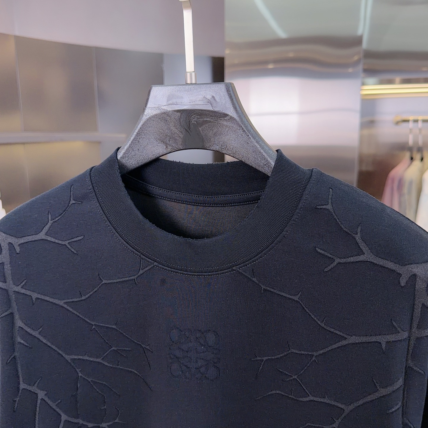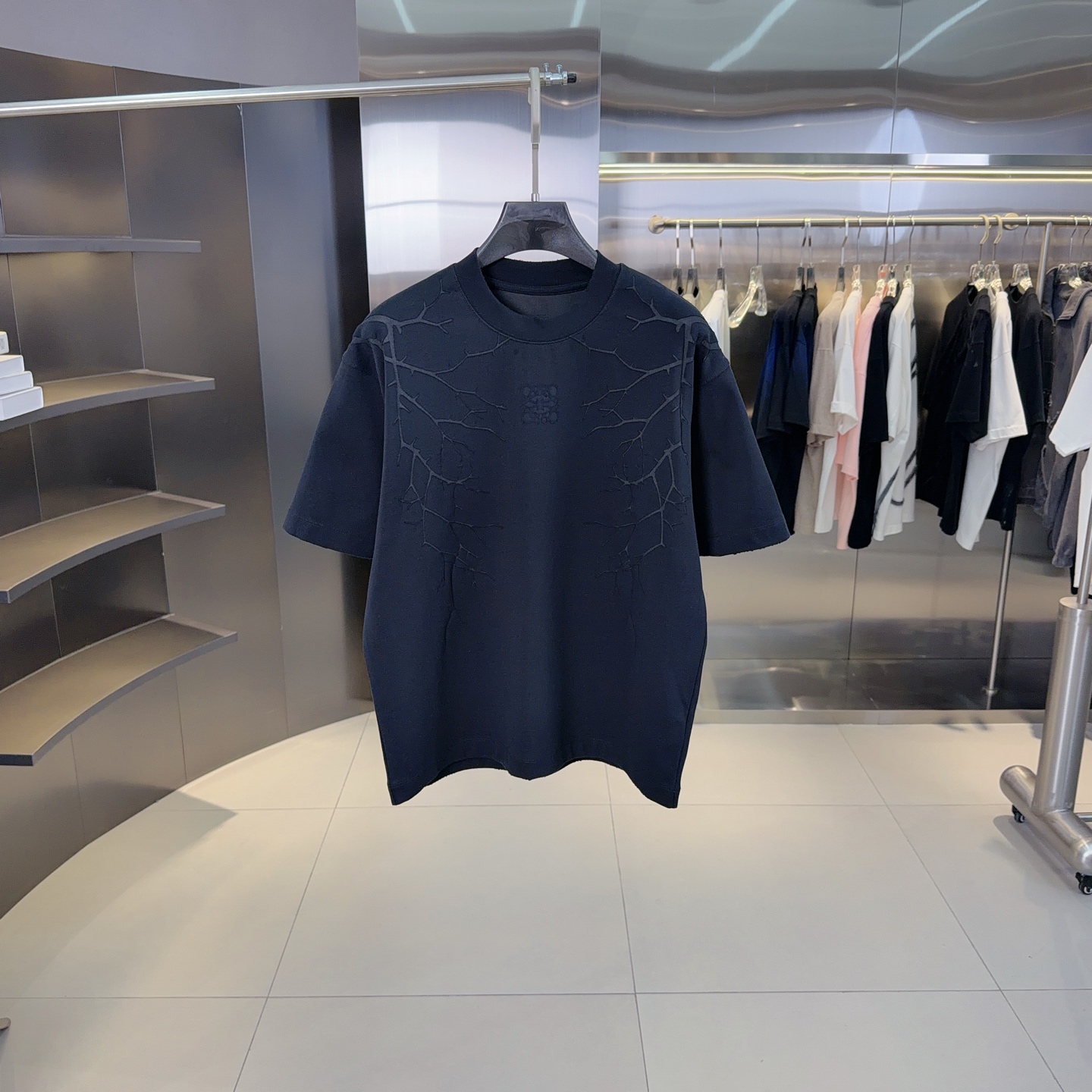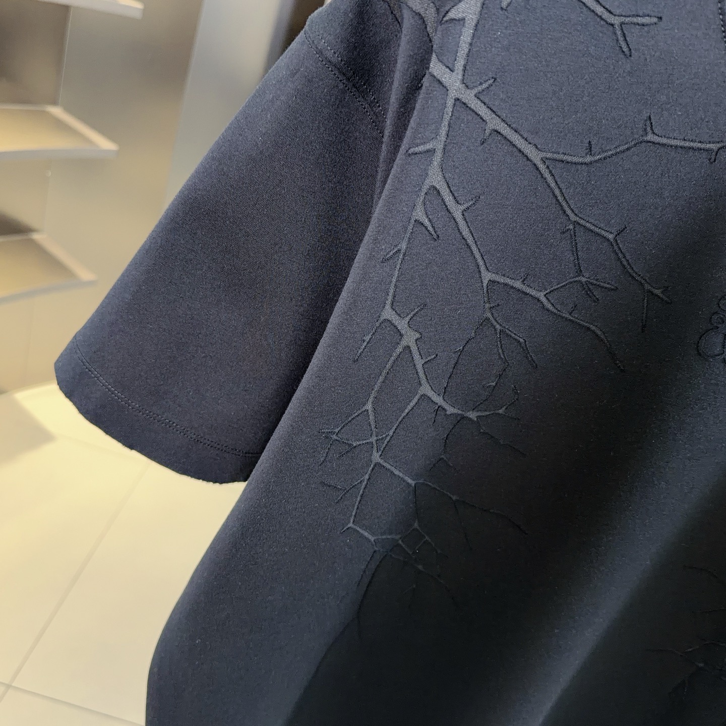 라운드넥 알파벳 로고 중공 자수 자카드 오버사이즈 순면 반팔 티셔츠