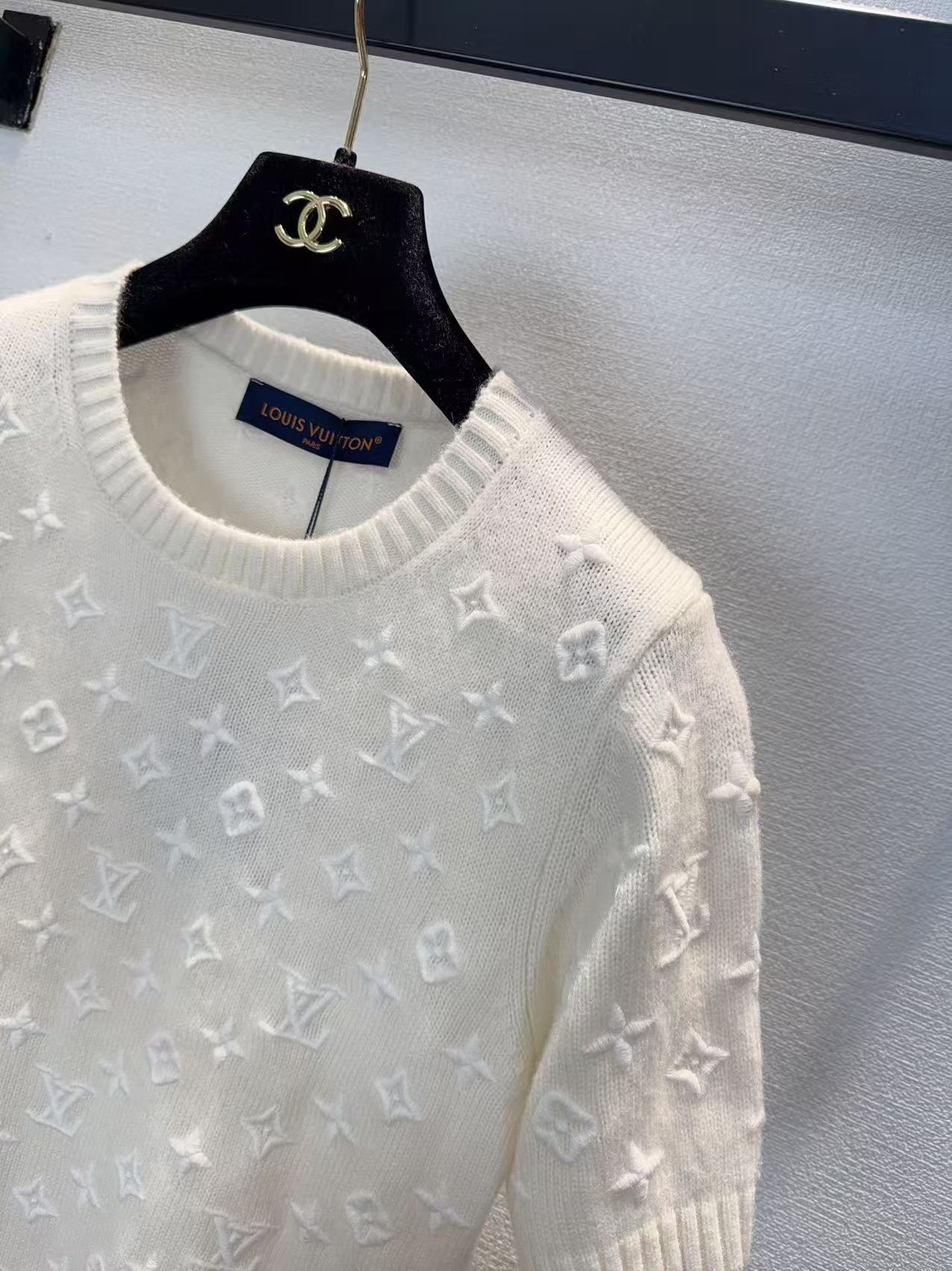 클래식 모노그램 풀 프린트 숏슬리브 입체 자수 니트 셔츠