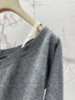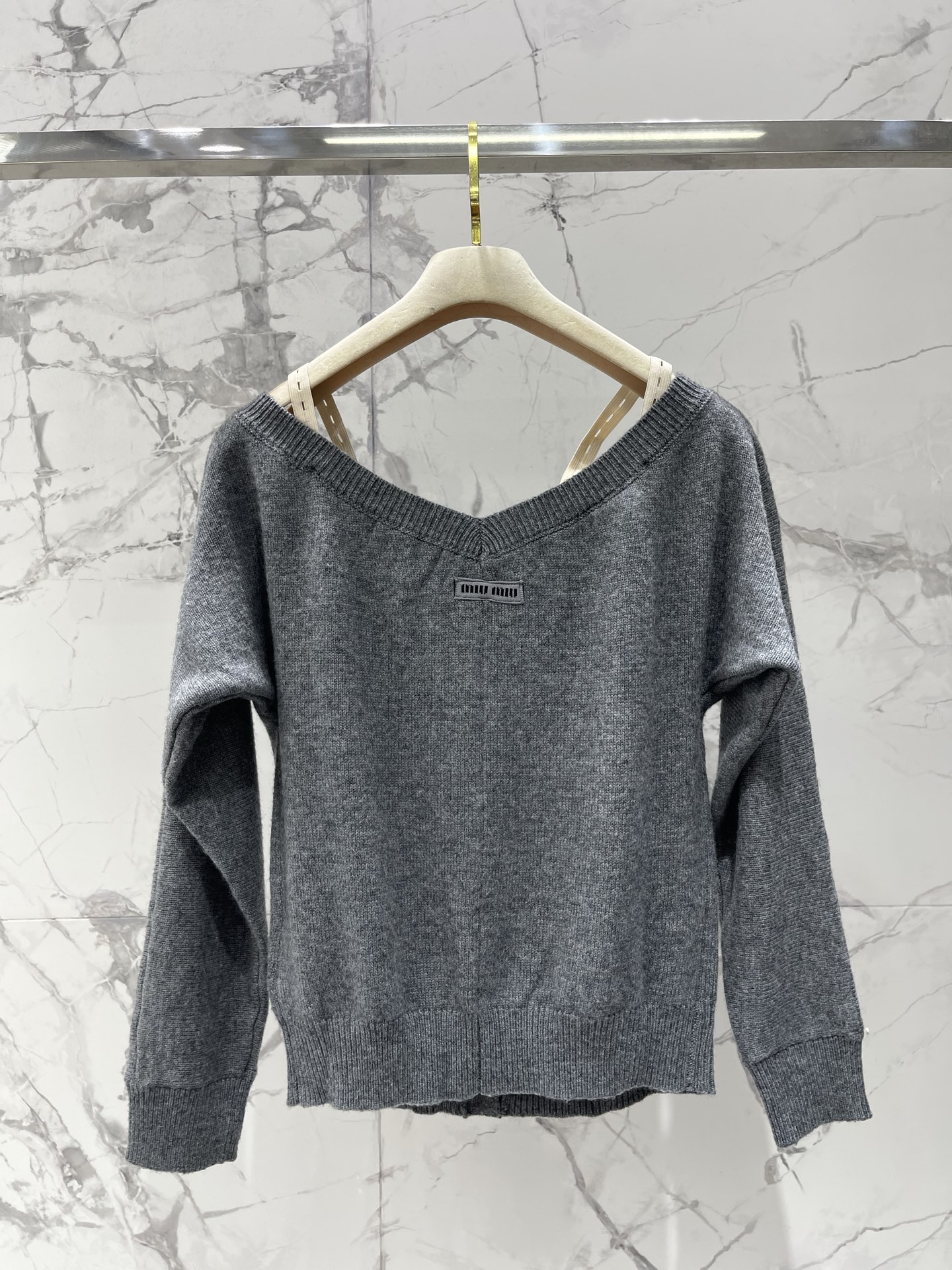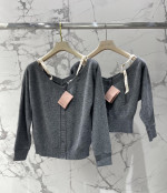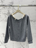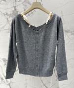 알파벳 로고 패치 탈부착 어깨끈 오프숄더 울 니트 오픈 카디건