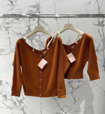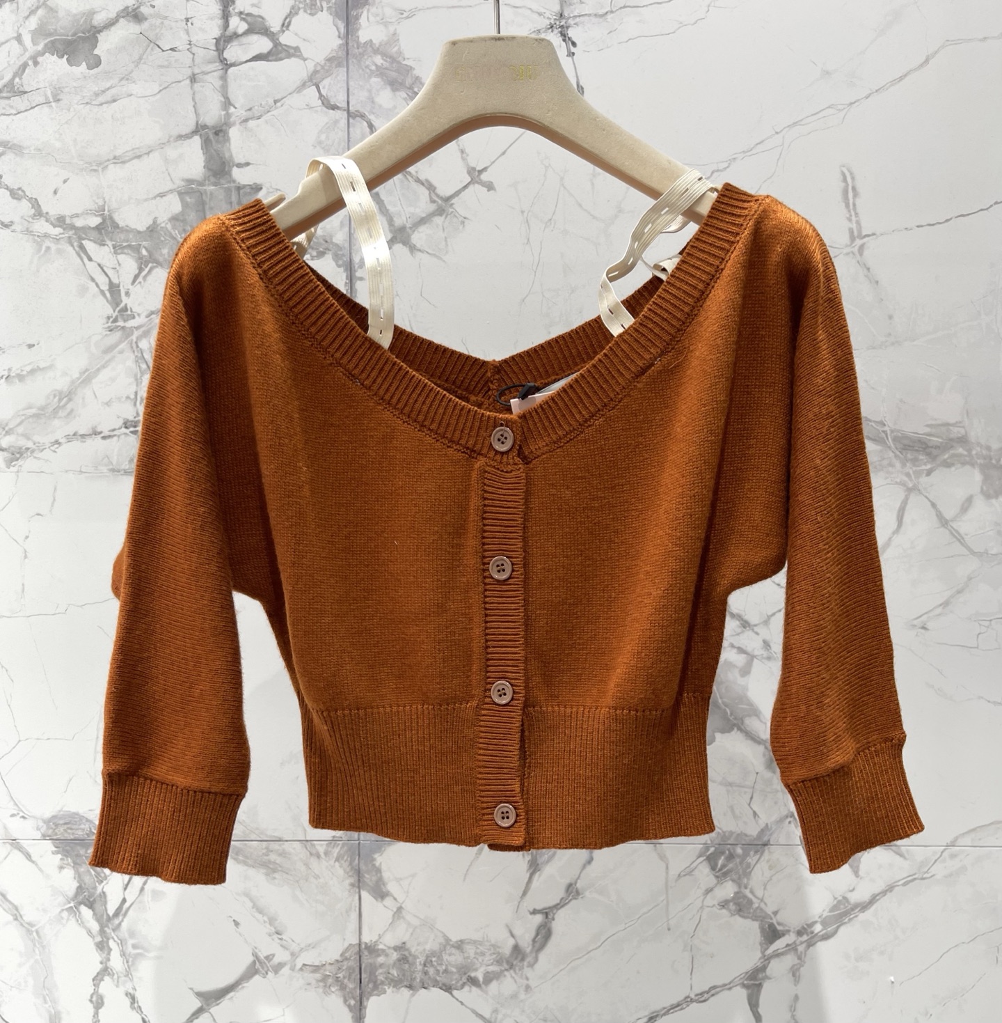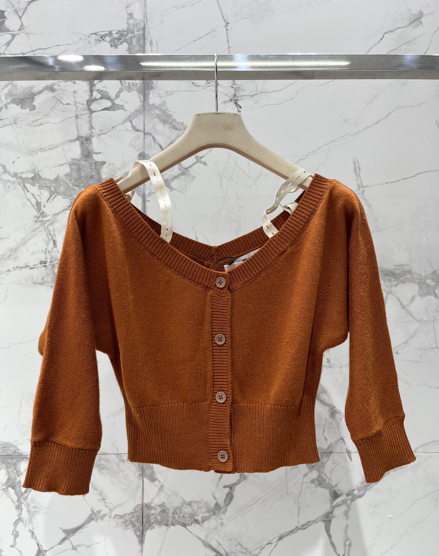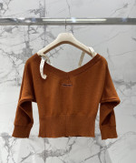 알파벳 로고 패치 탈부착 어깨끈 오프숄더 울 니트 오픈 카디건