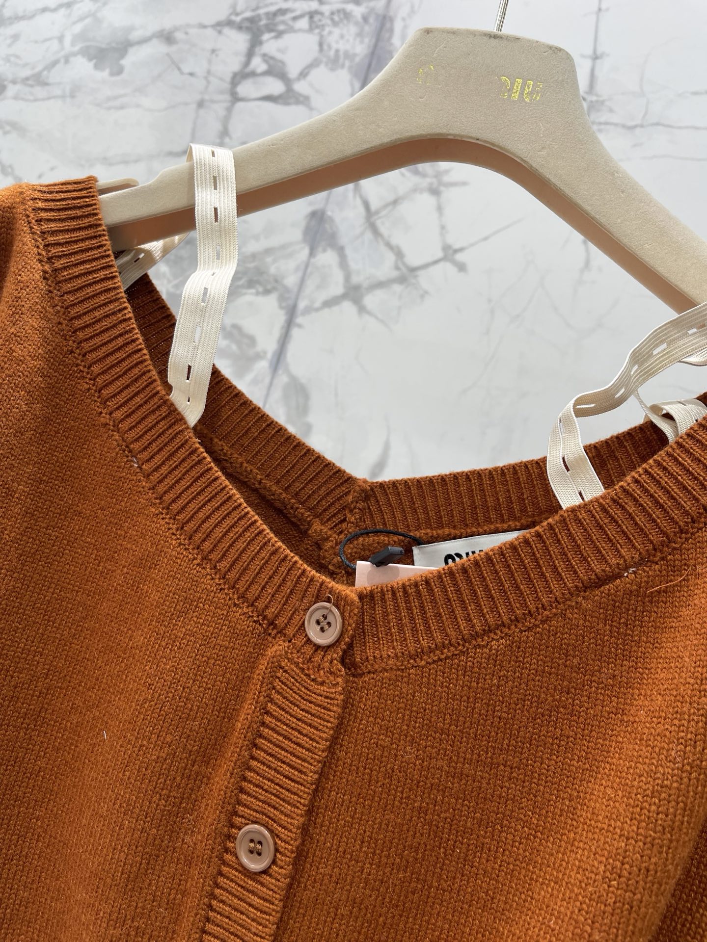 알파벳 로고 패치 탈부착 어깨끈 오프숄더 울 니트 오픈 카디건 > 여성의류