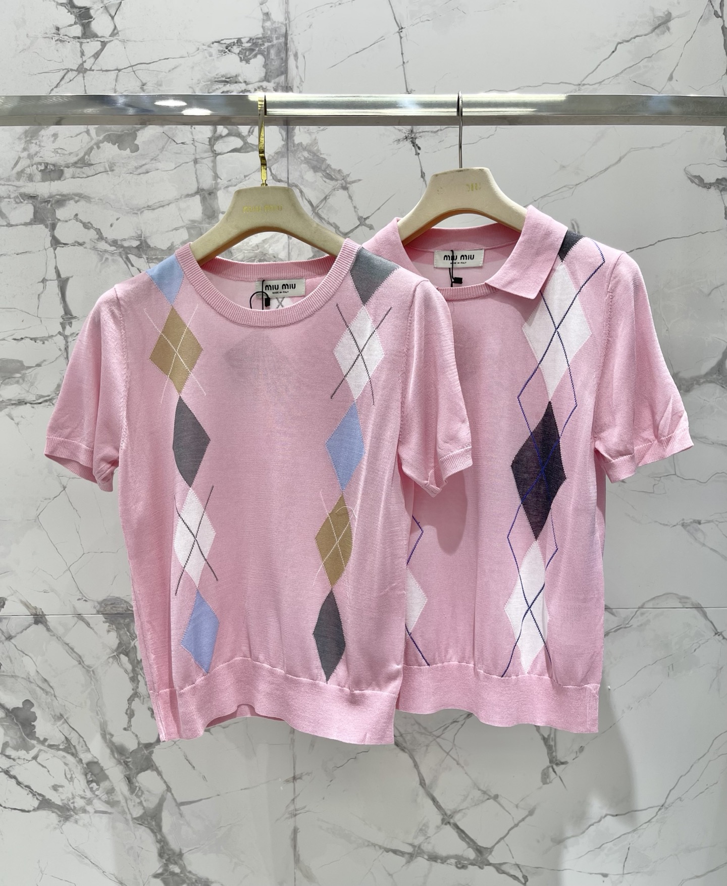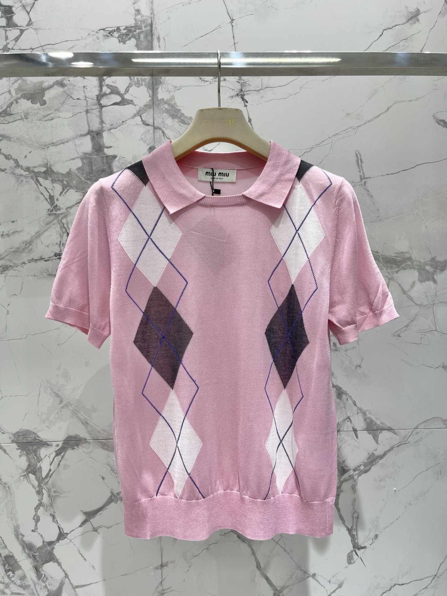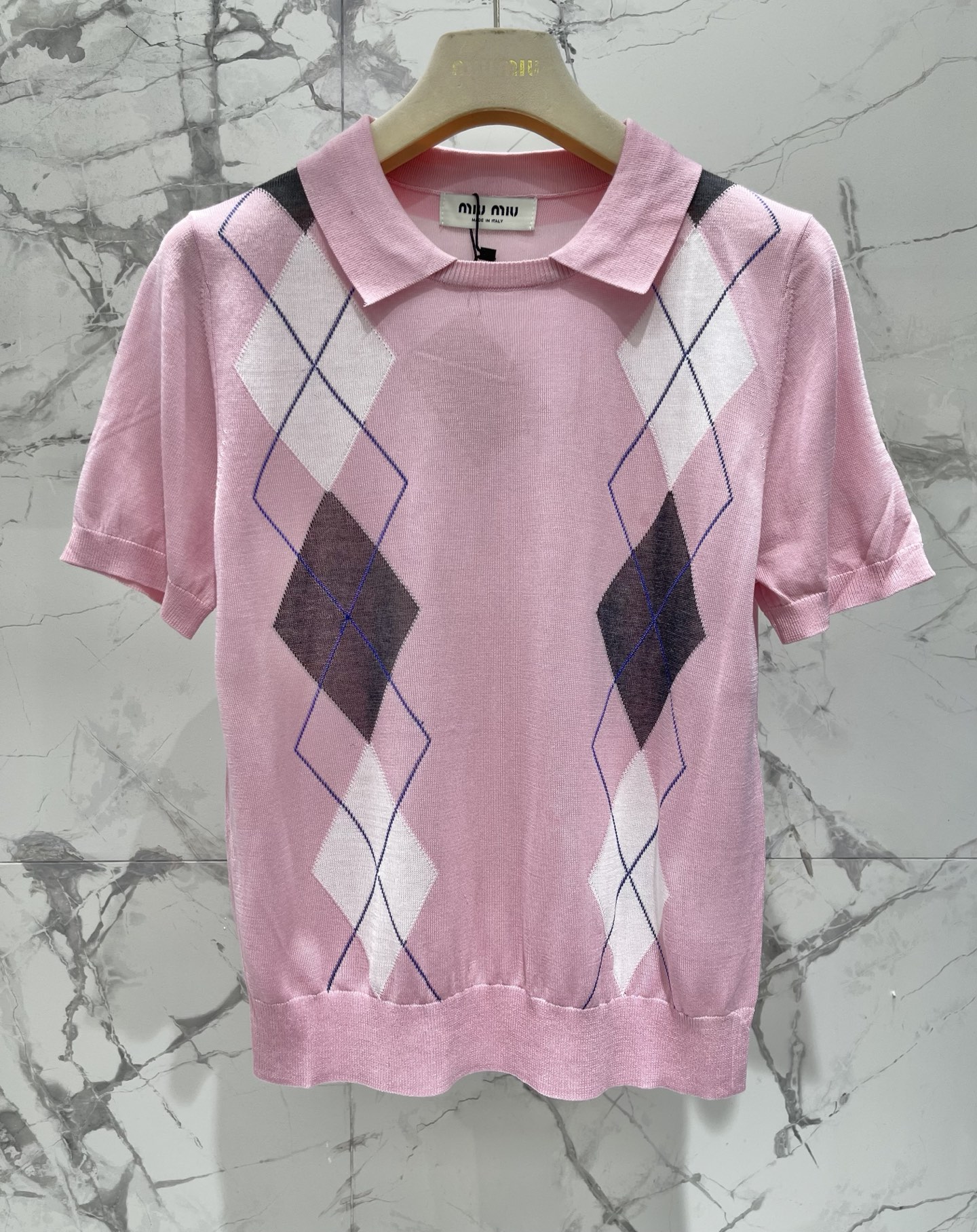 다이아몬드 격자 플랩 칼라 니트 셔츠