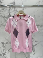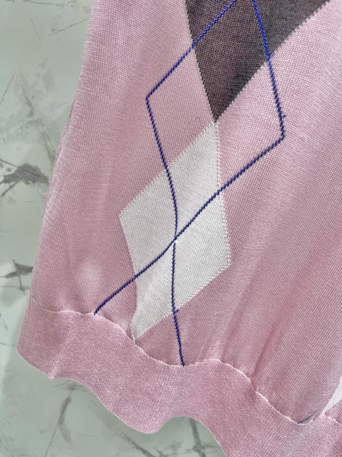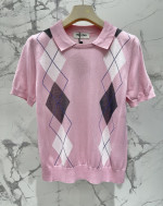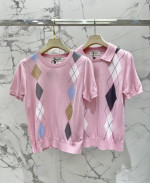 복고 다이아몬드 격자 니트 라운드넥 반팔