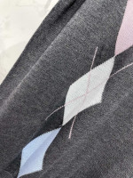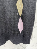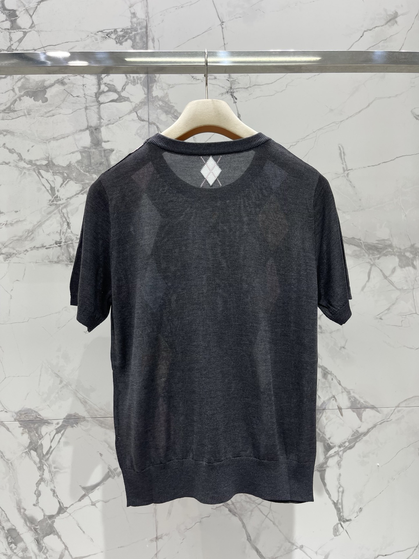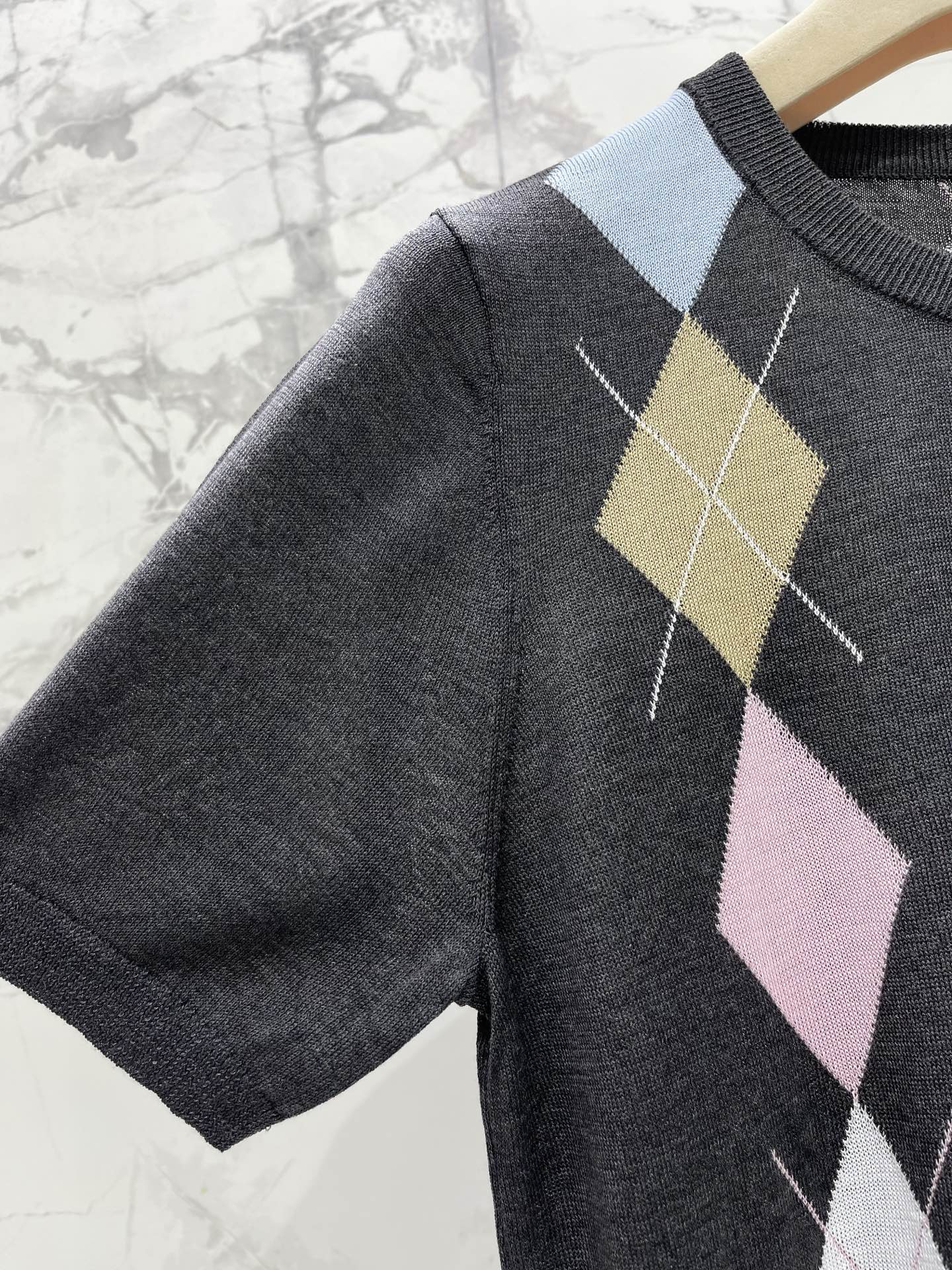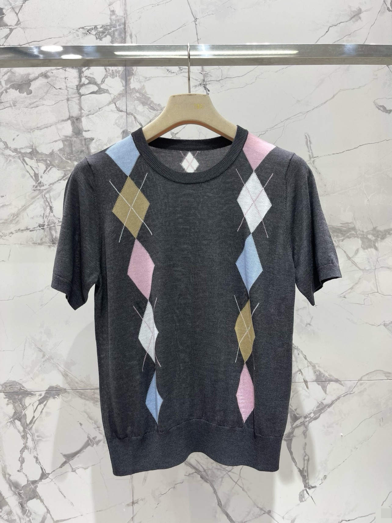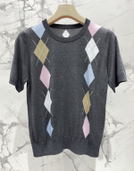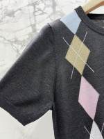 복고 다이아몬드 격자 니트 라운드넥 반팔
