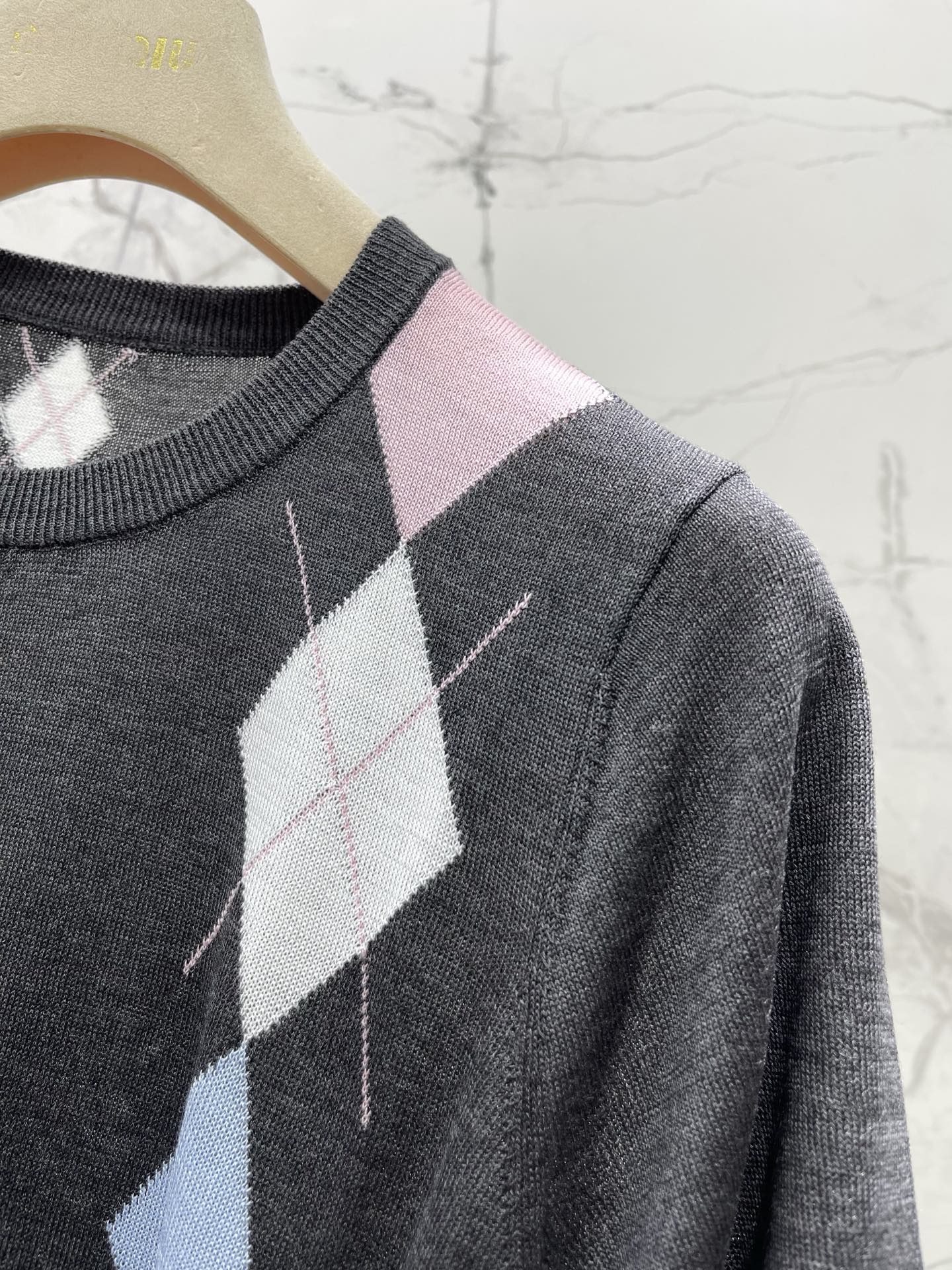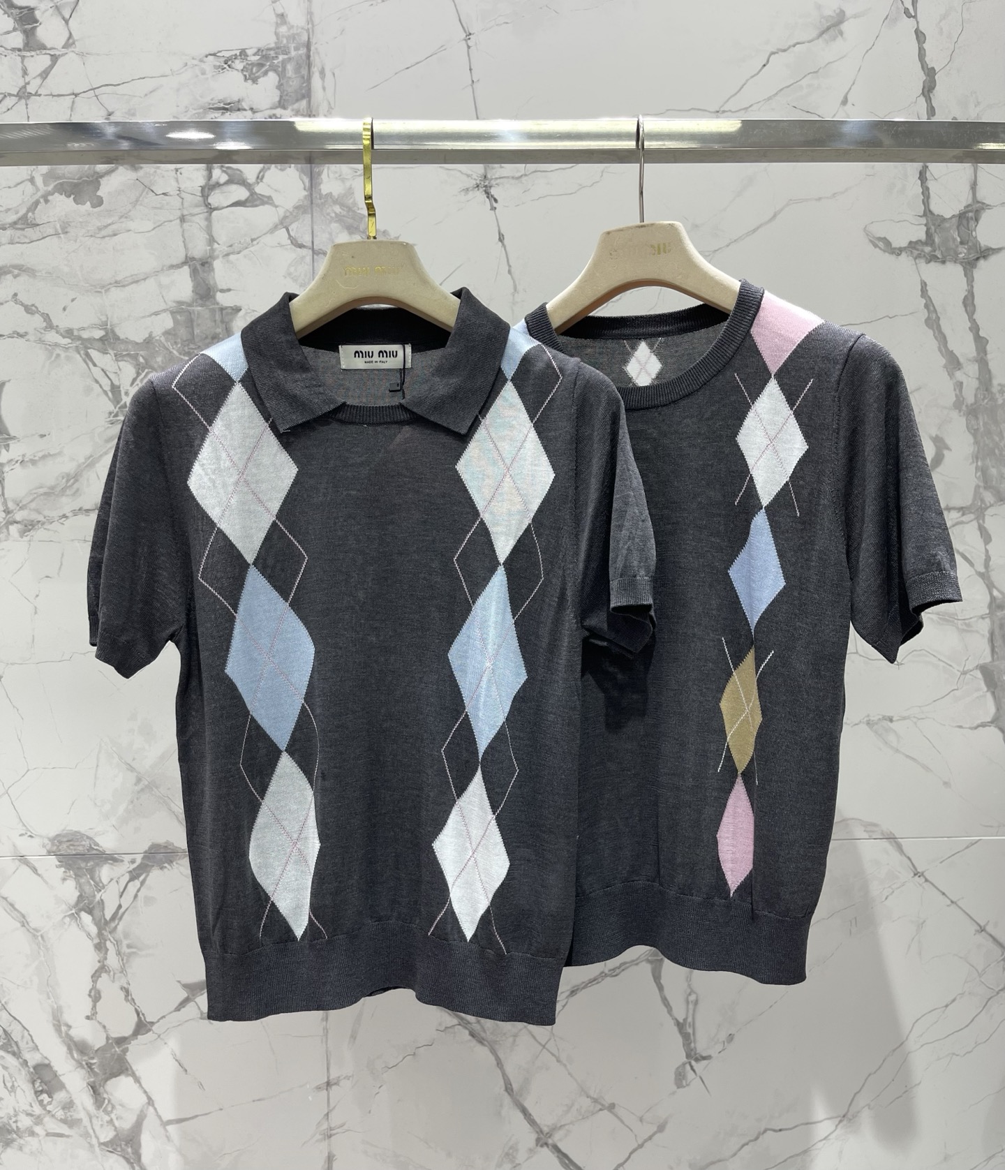 다이아몬드 격자 플랩 칼라 니트 셔츠