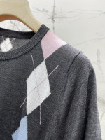 복고 다이아몬드 격자 니트 라운드넥 반팔 > 여성의류