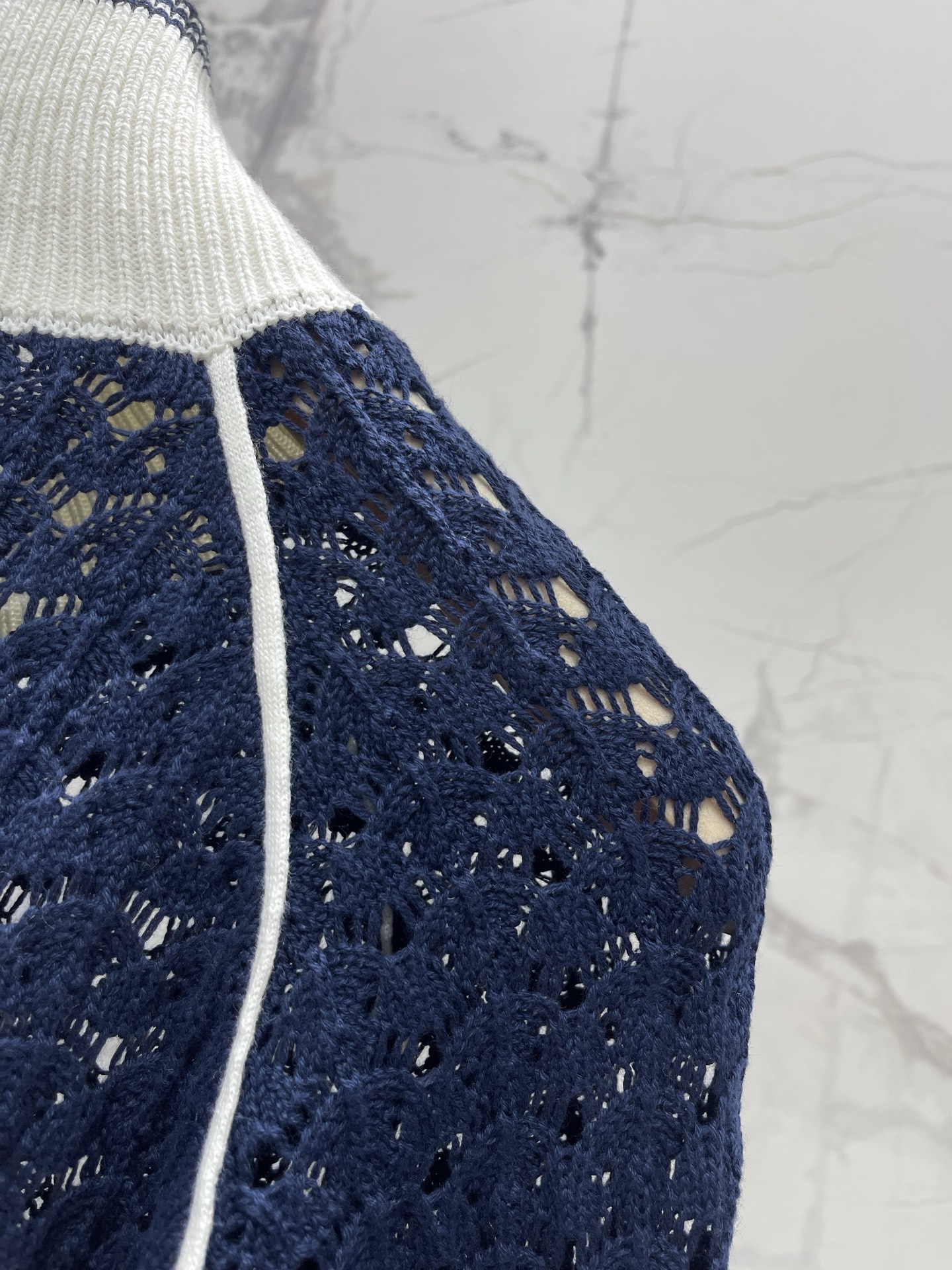 하단 레이스 스티칭 니트 숏슬리브