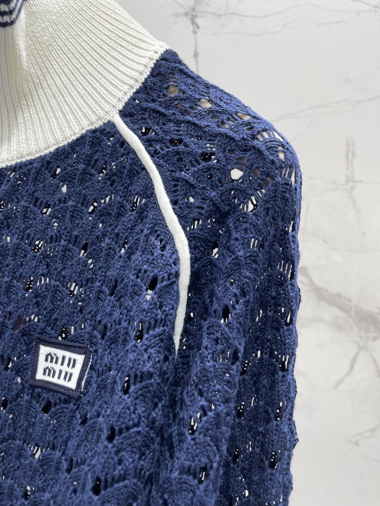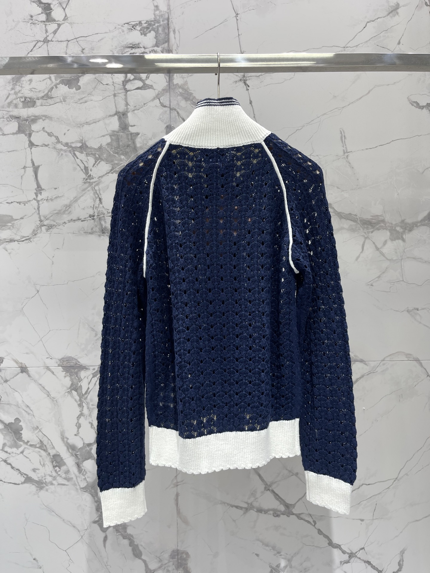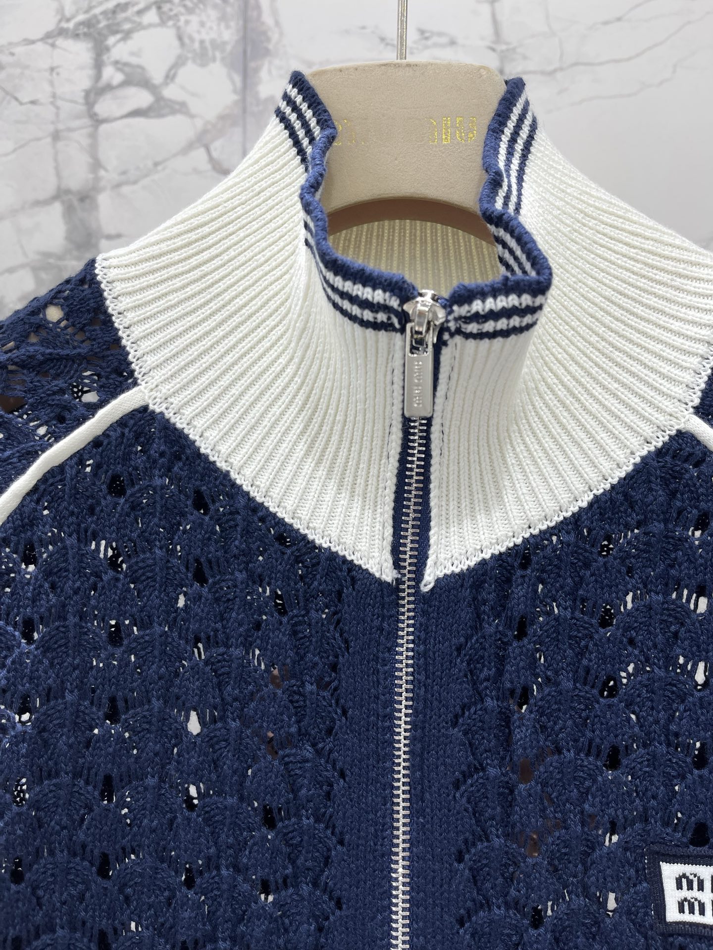 플립카라 투톤 홀로우 아웃 알파벳 로고 지퍼 니트